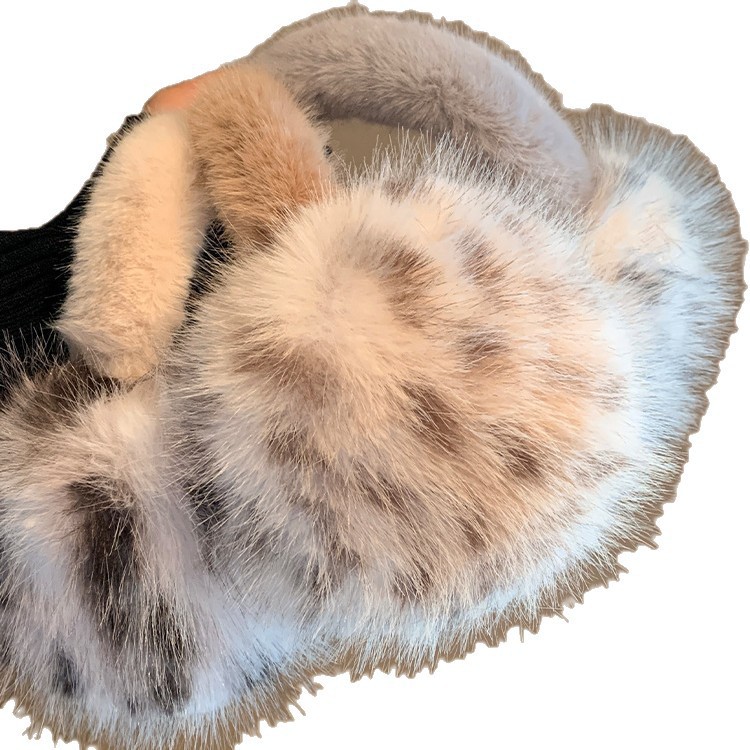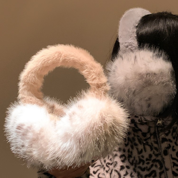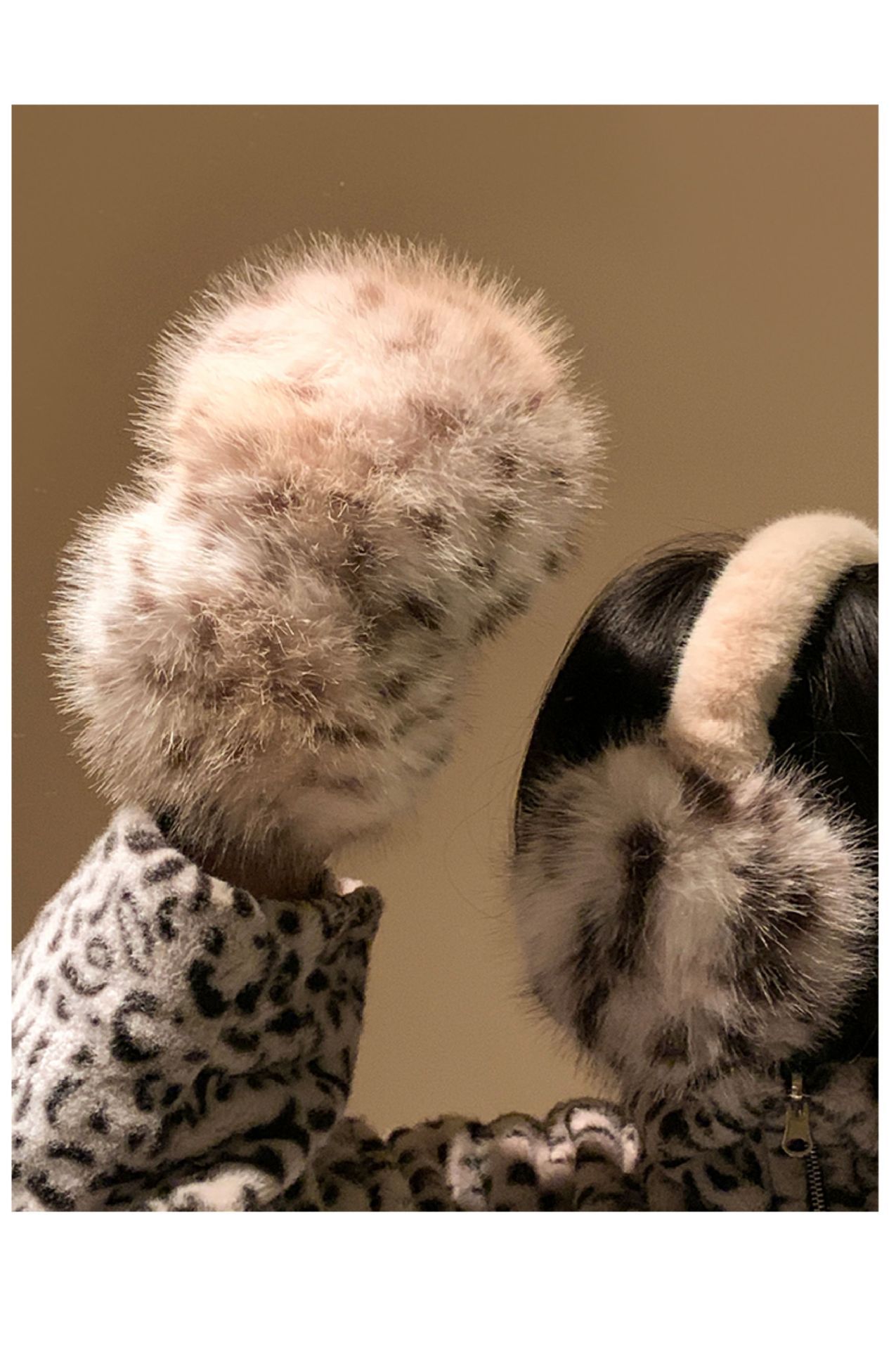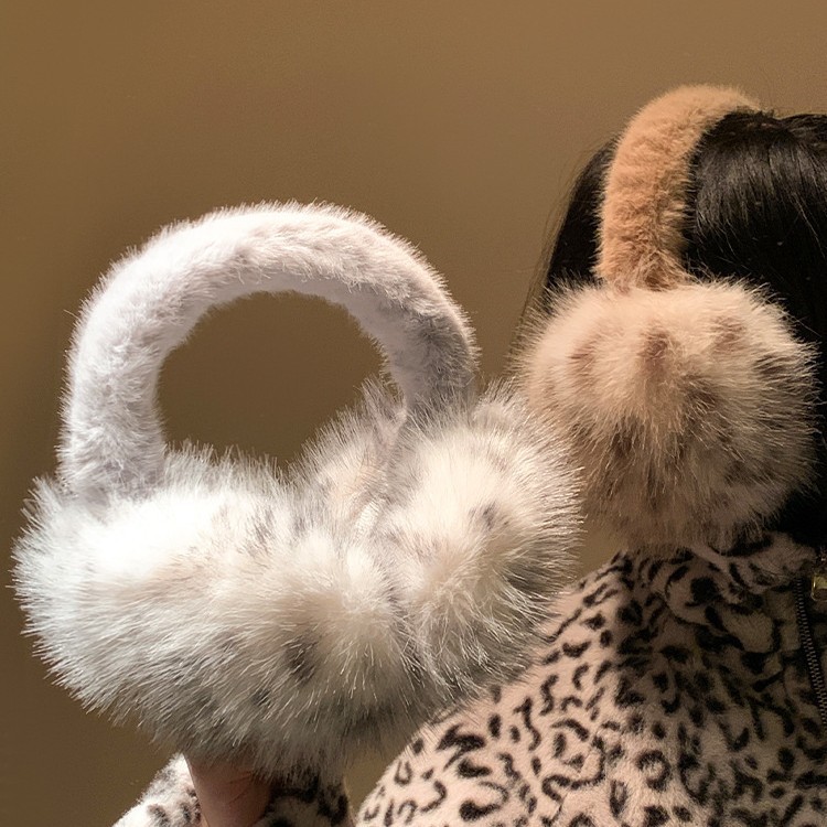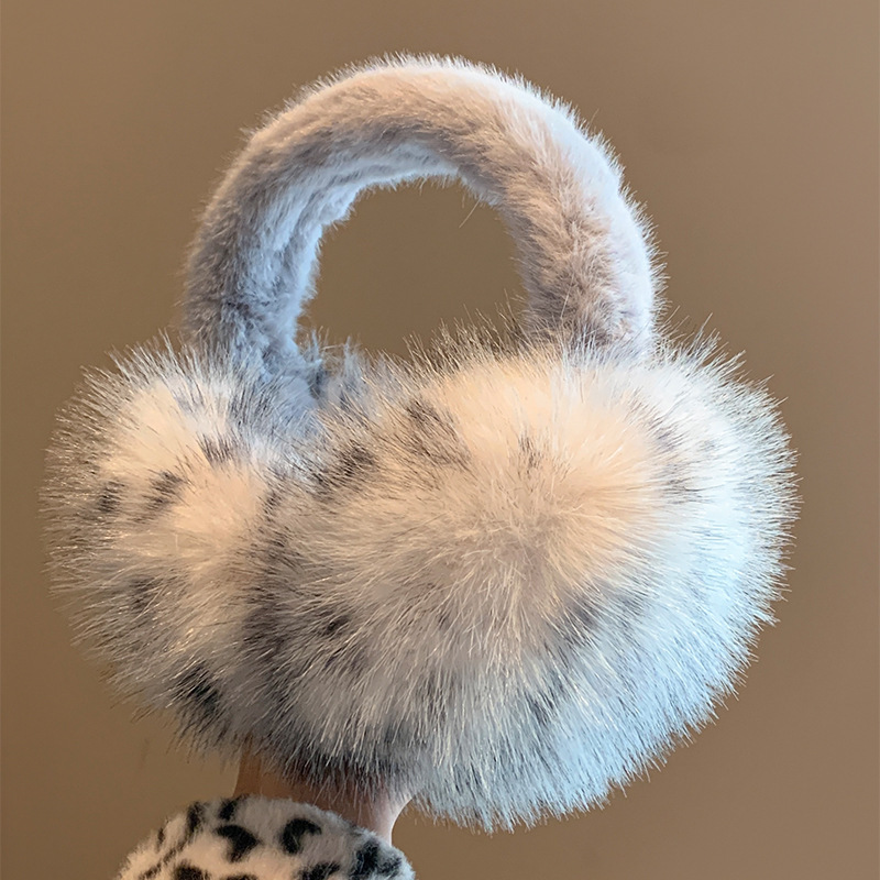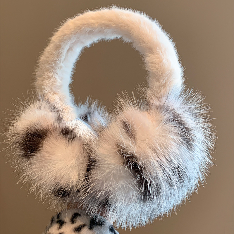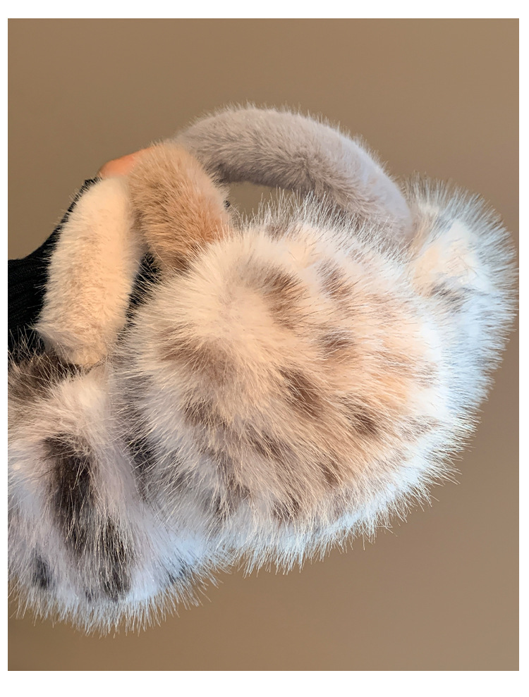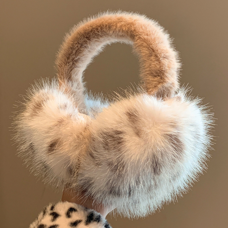 豹纹毛绒耳罩女冬季毛茸茸耳包耳套骑车防冻防寒保暖耳暖耳捂子