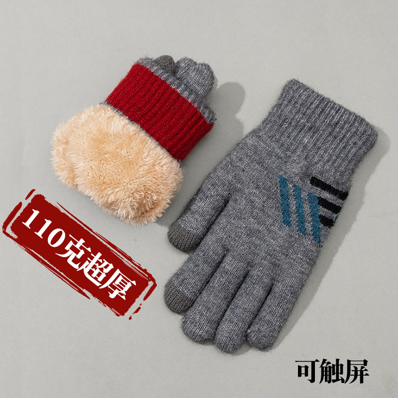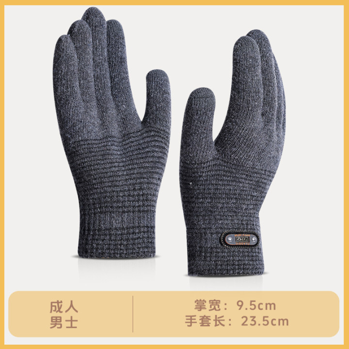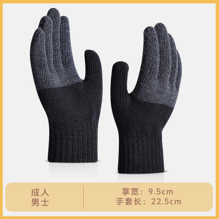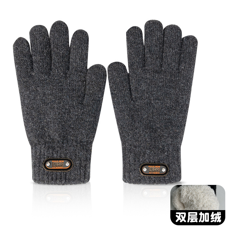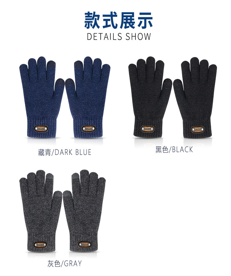 触屏手套男士冬季骑车防寒毛线双层加厚加绒冬天学生保暖骑行简约
