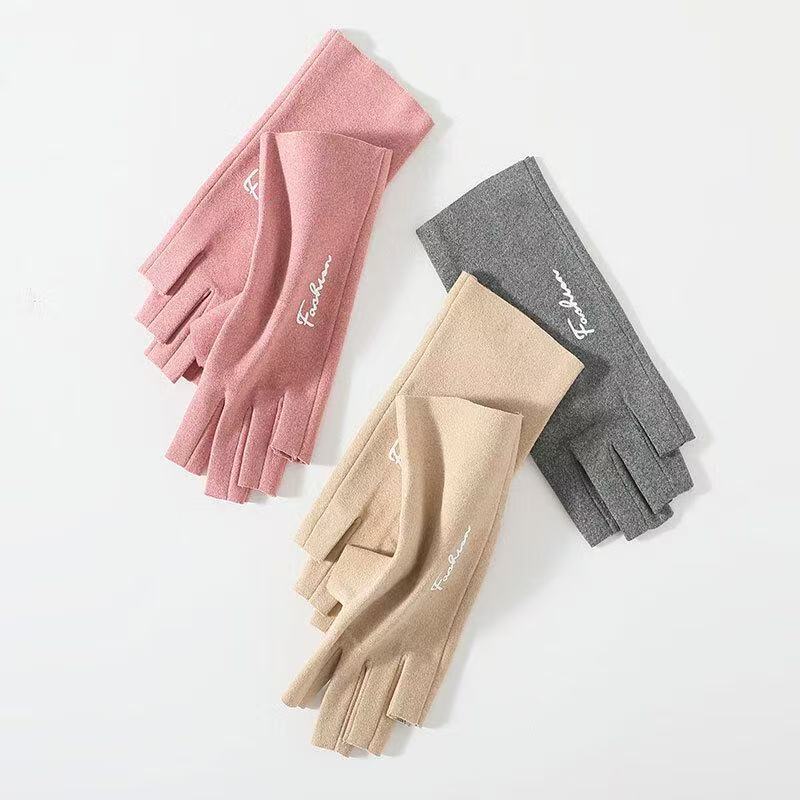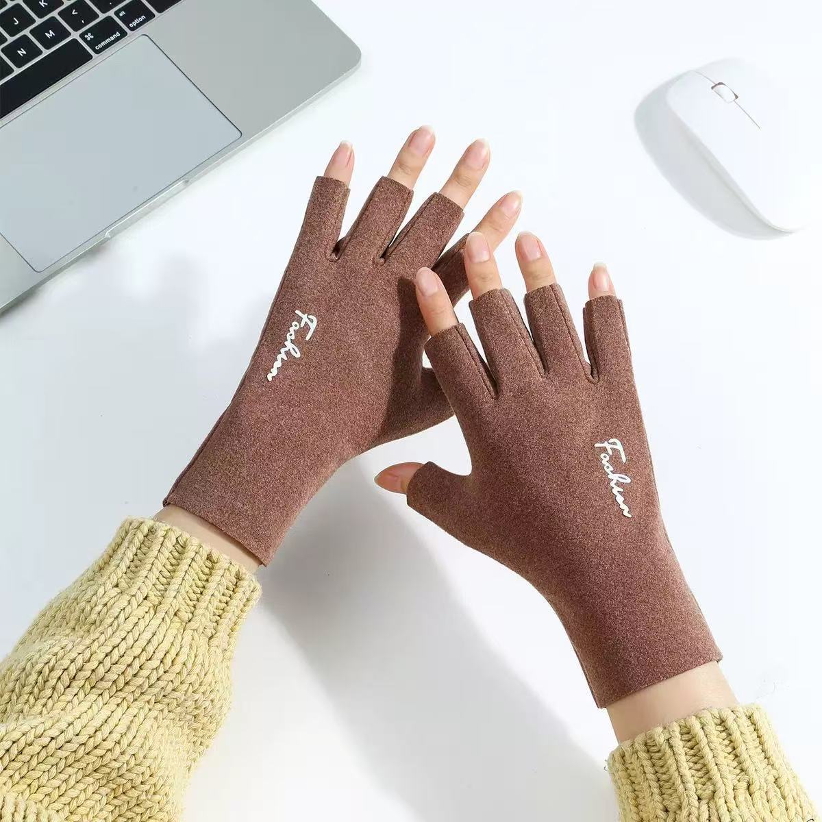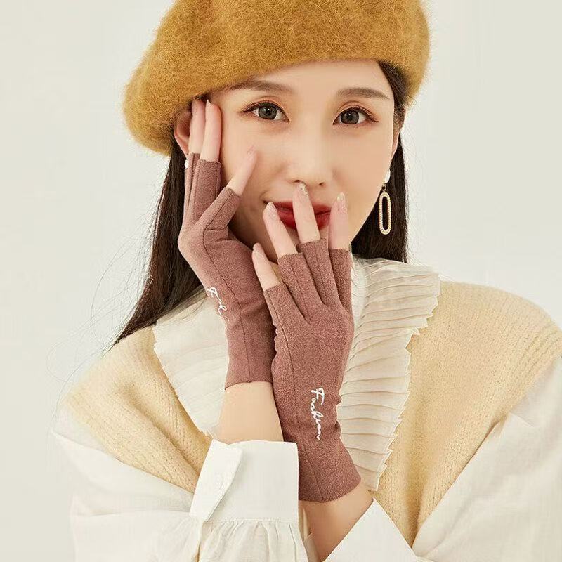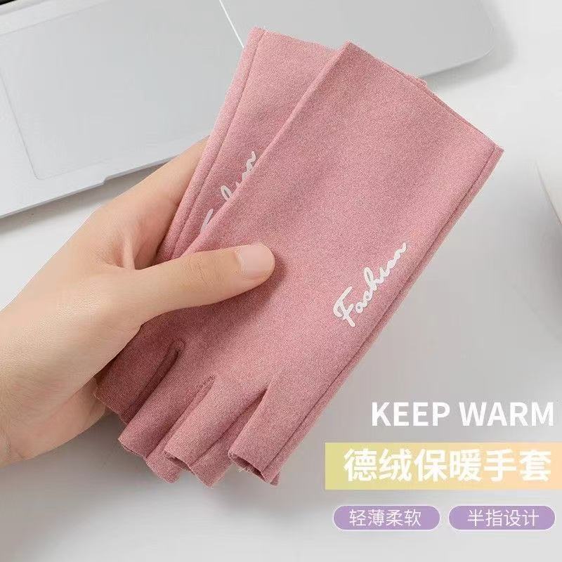 冬季德绒分指手套骑行开车时尚百搭可触屏防寒保暖露指防冻手套女
