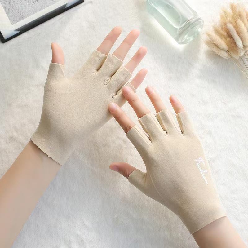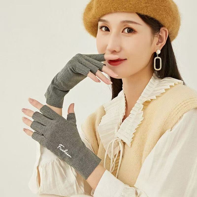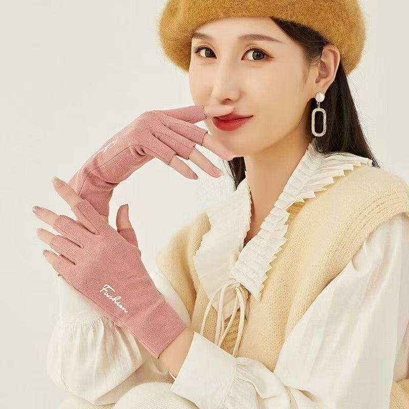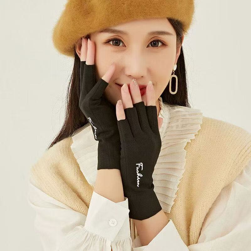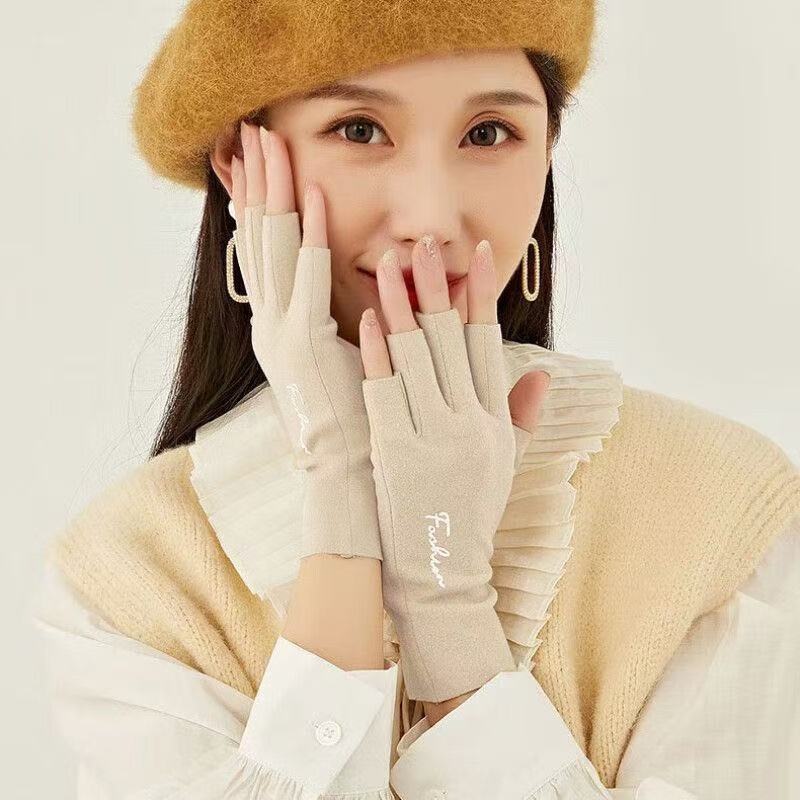 冬季德绒分指手套骑行开车时尚百搭可触屏防寒保暖露指防冻手套女