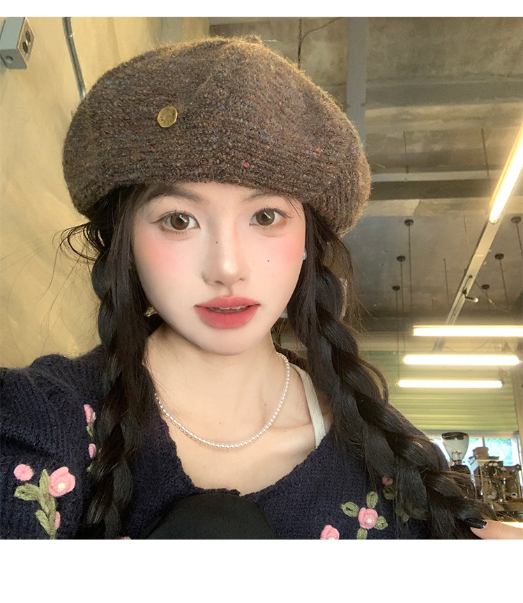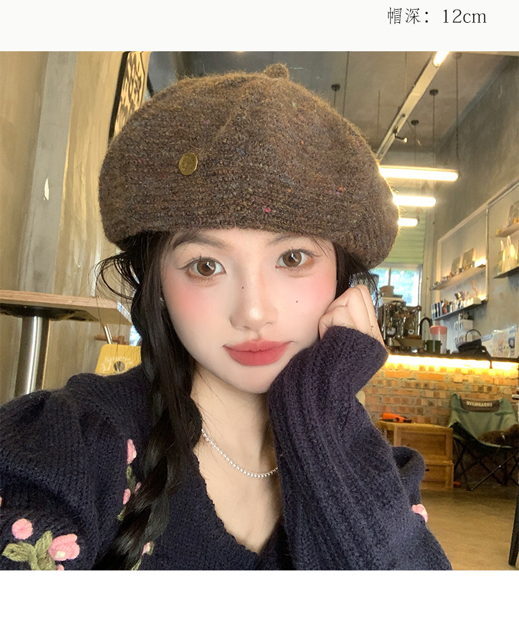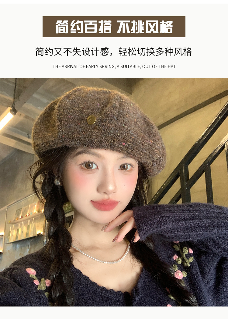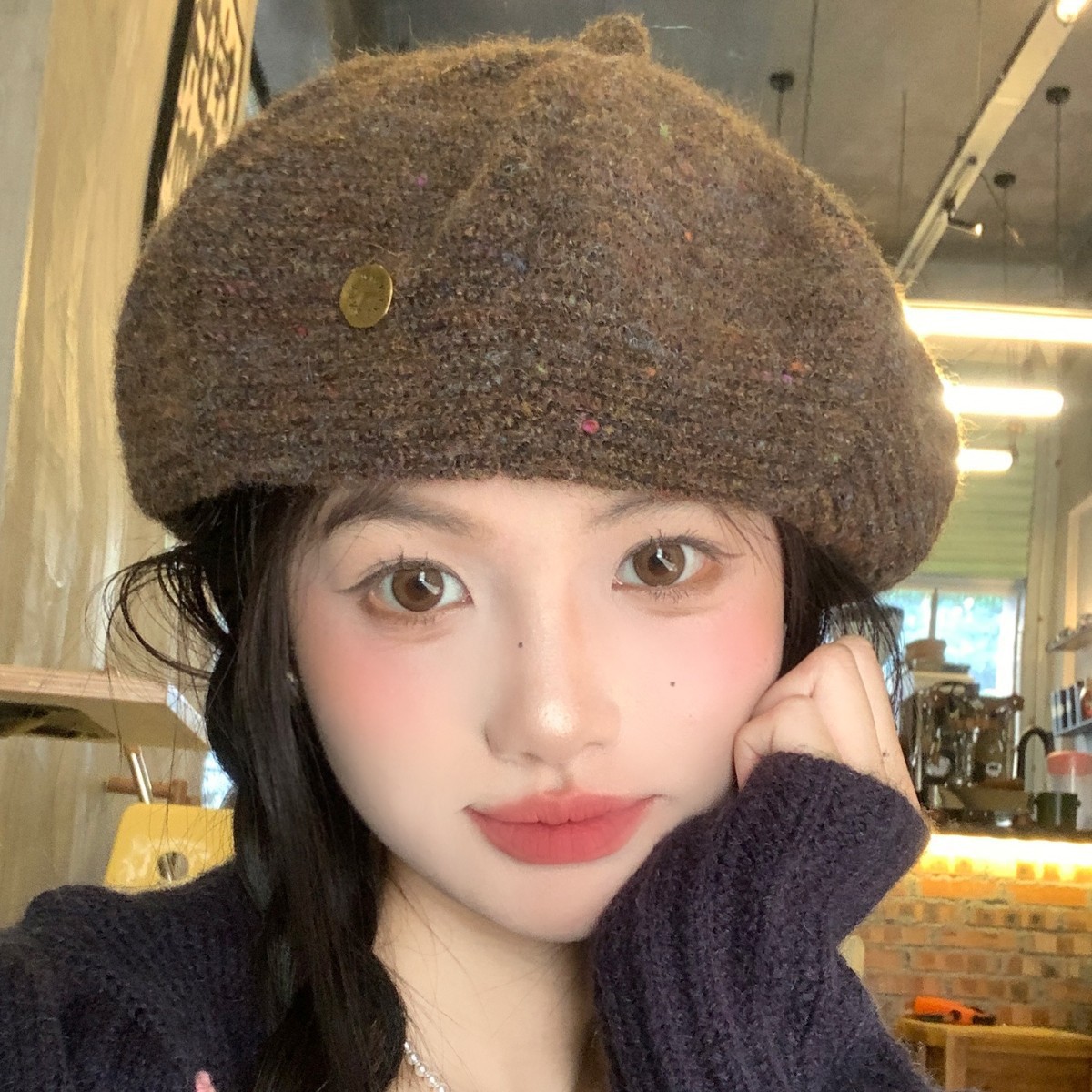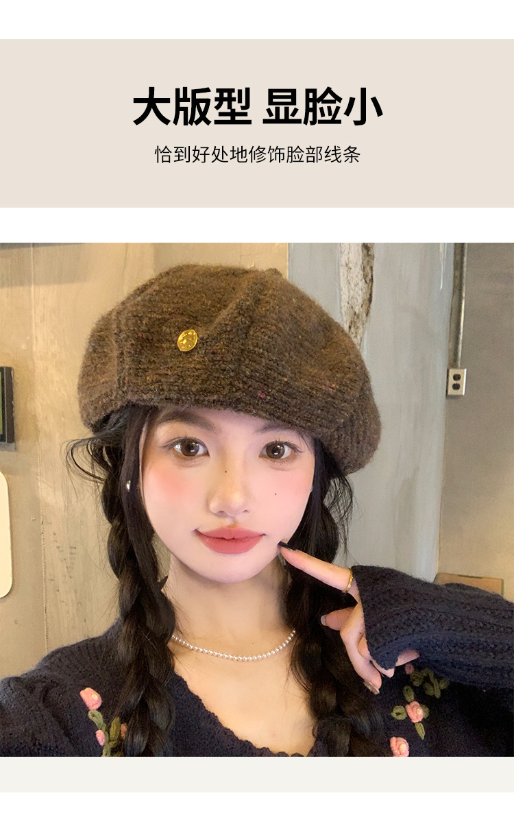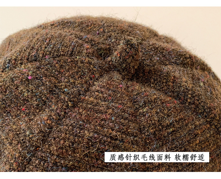 针织贝雷帽女秋冬季美拉德咖色显脸小大头围保暖百搭云朵画家帽子
