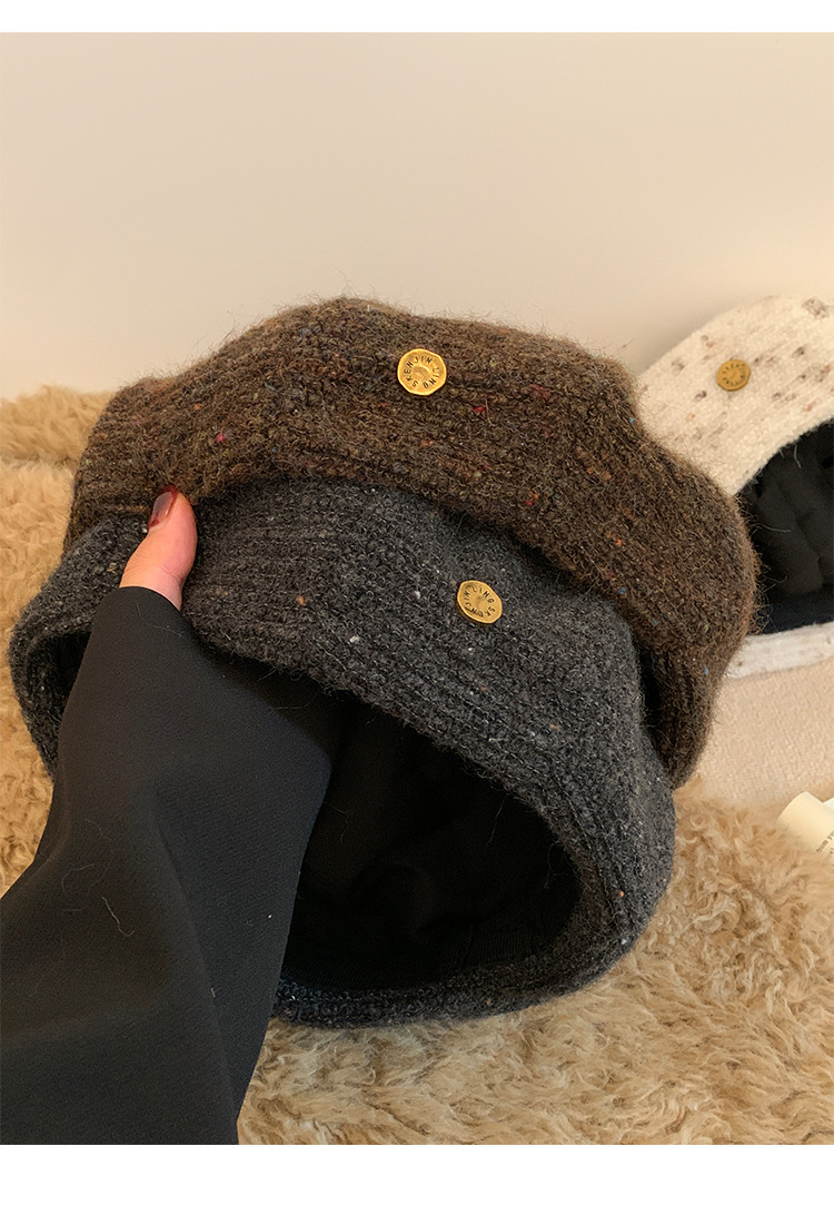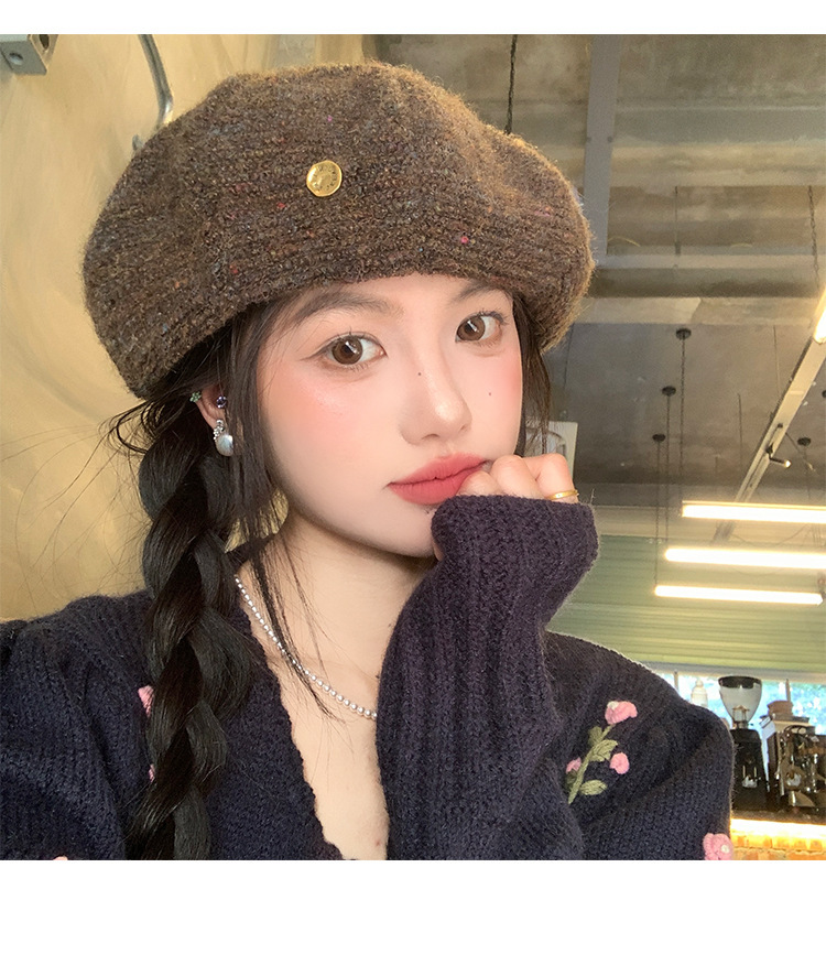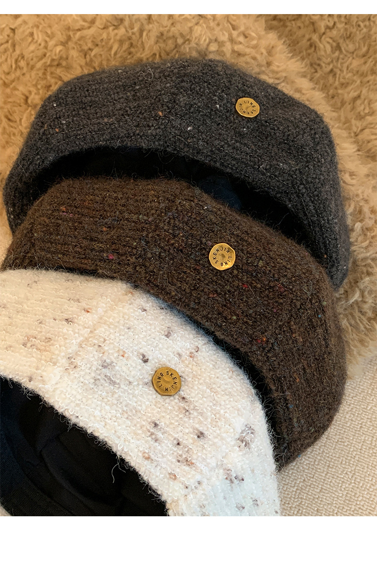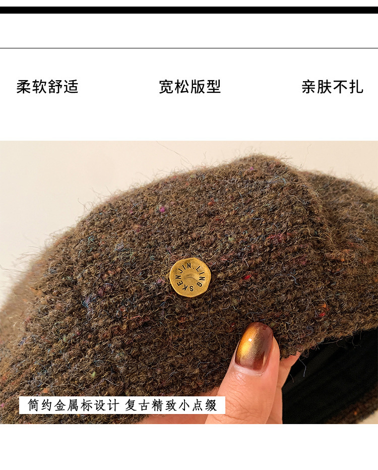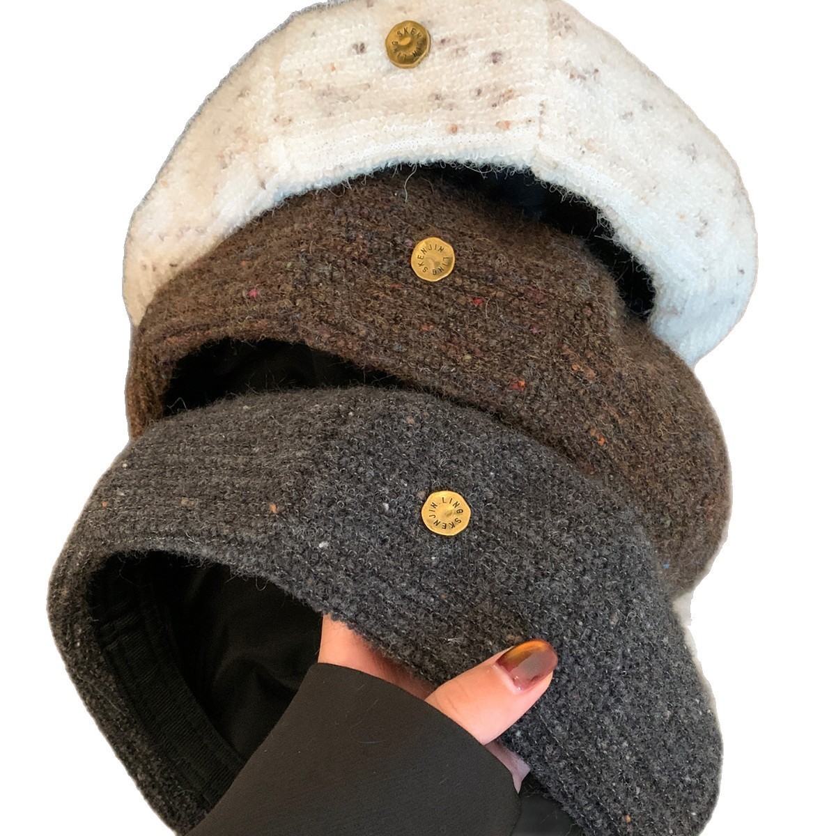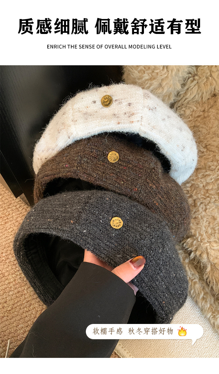 针织贝雷帽女秋冬季美拉德咖色显脸小大头围保暖百搭云朵画家帽子