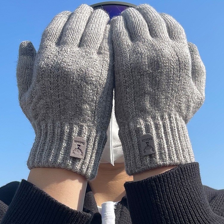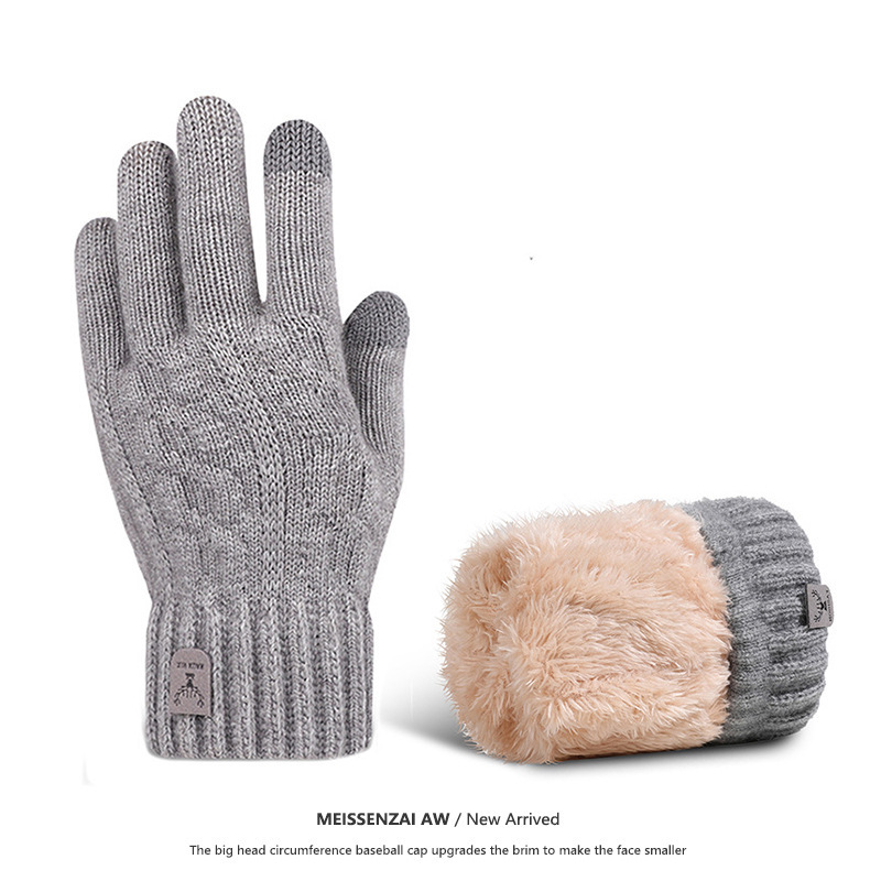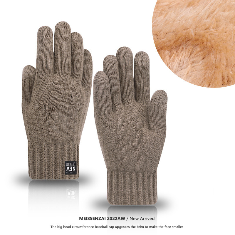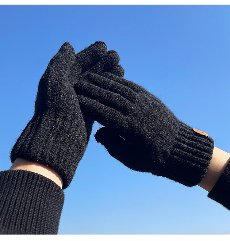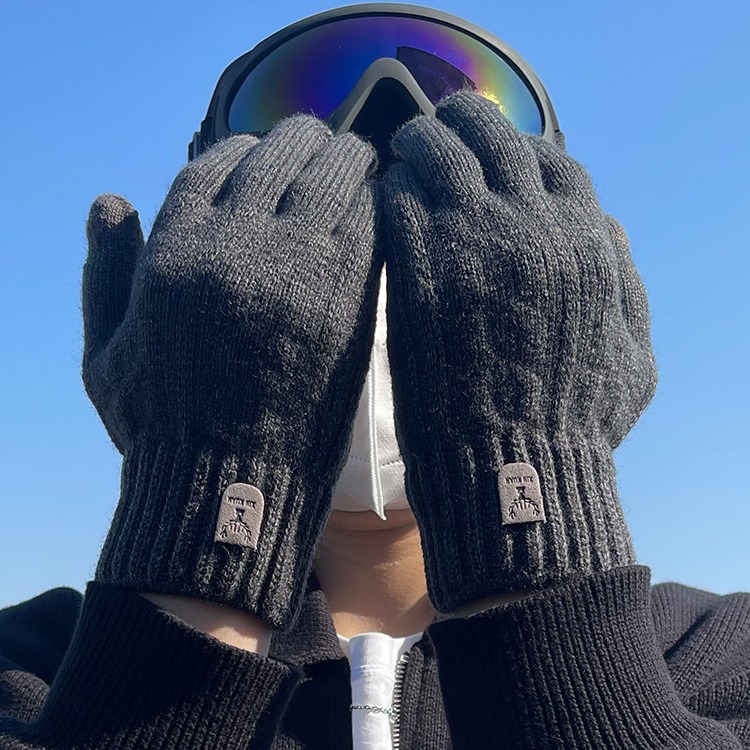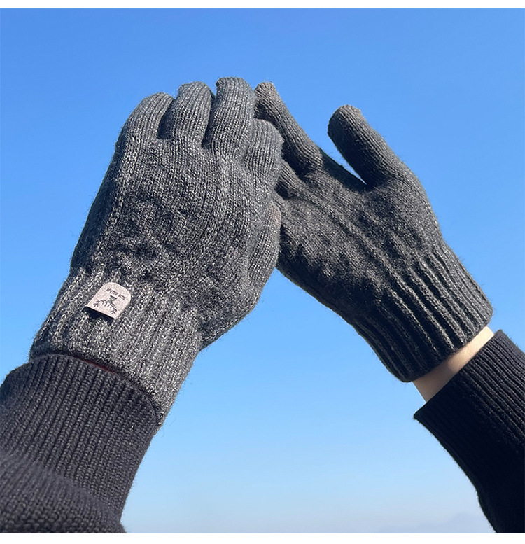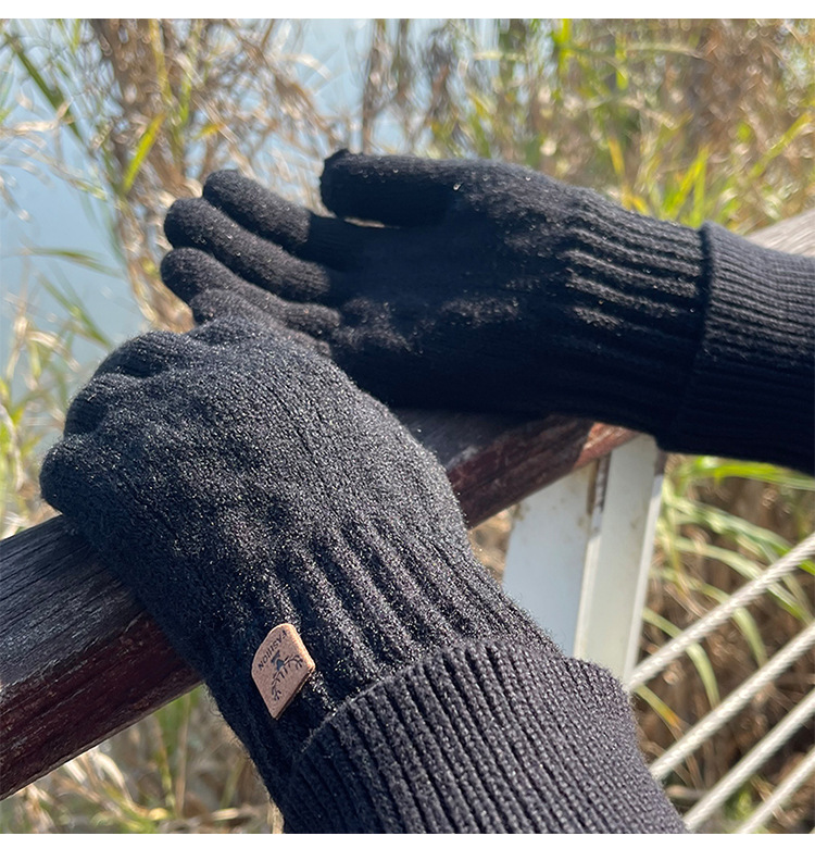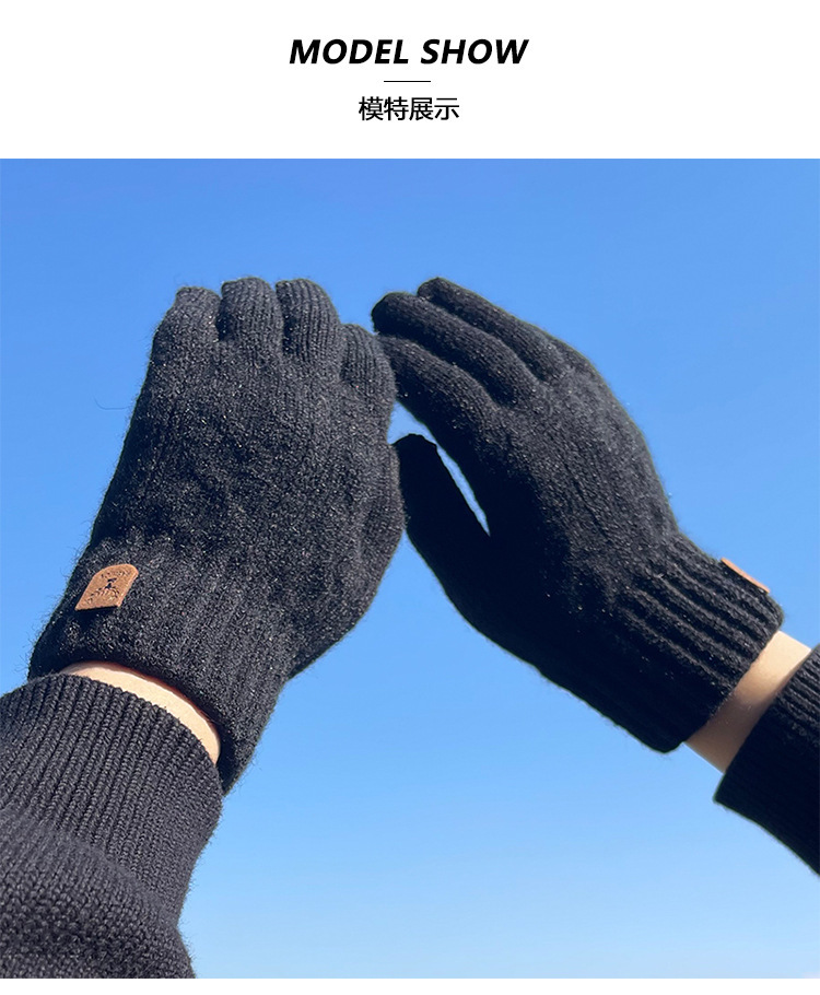 保暖手套秋冬季男可触屏毛线针织电动车骑行开车加绒加厚学生防寒