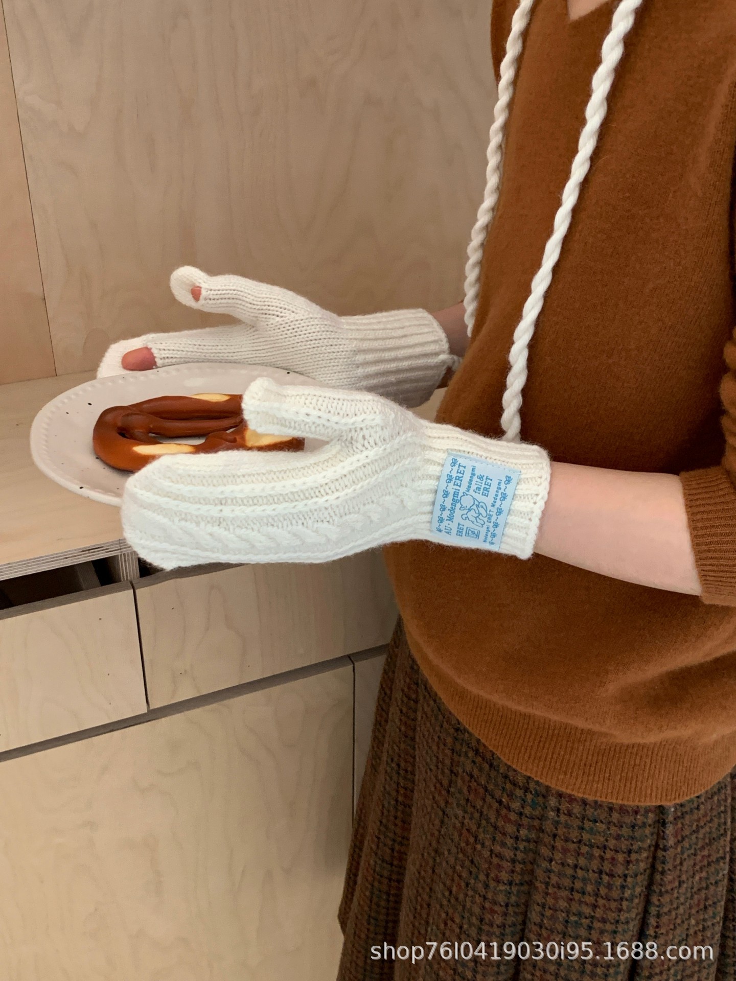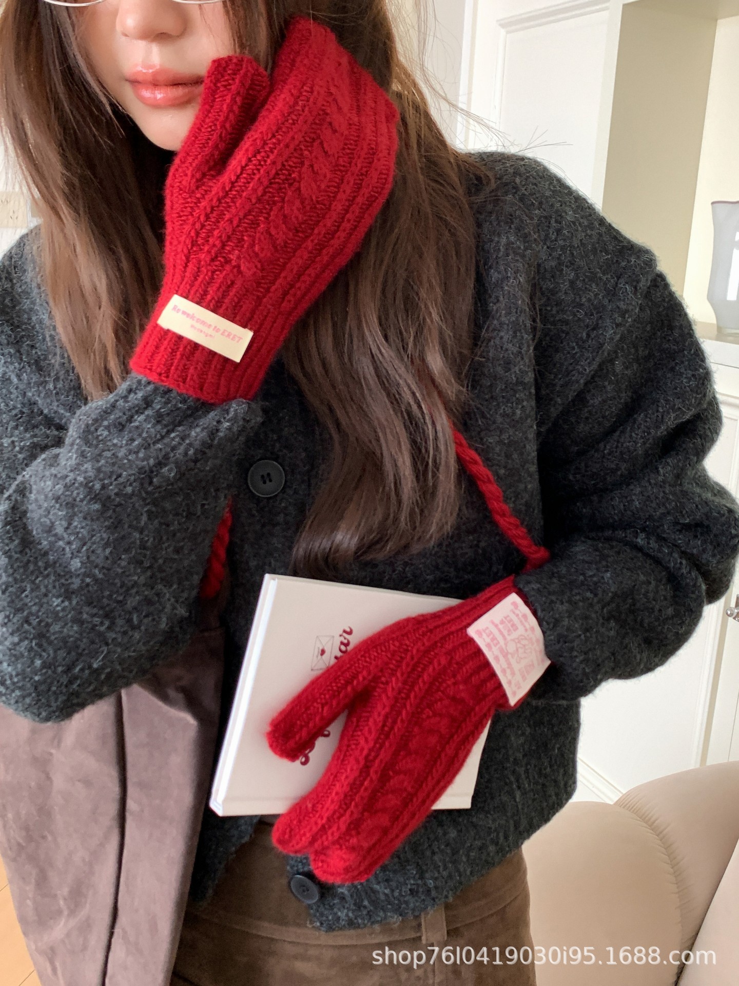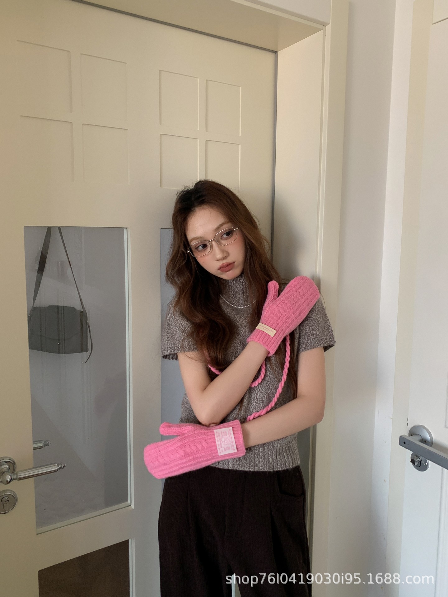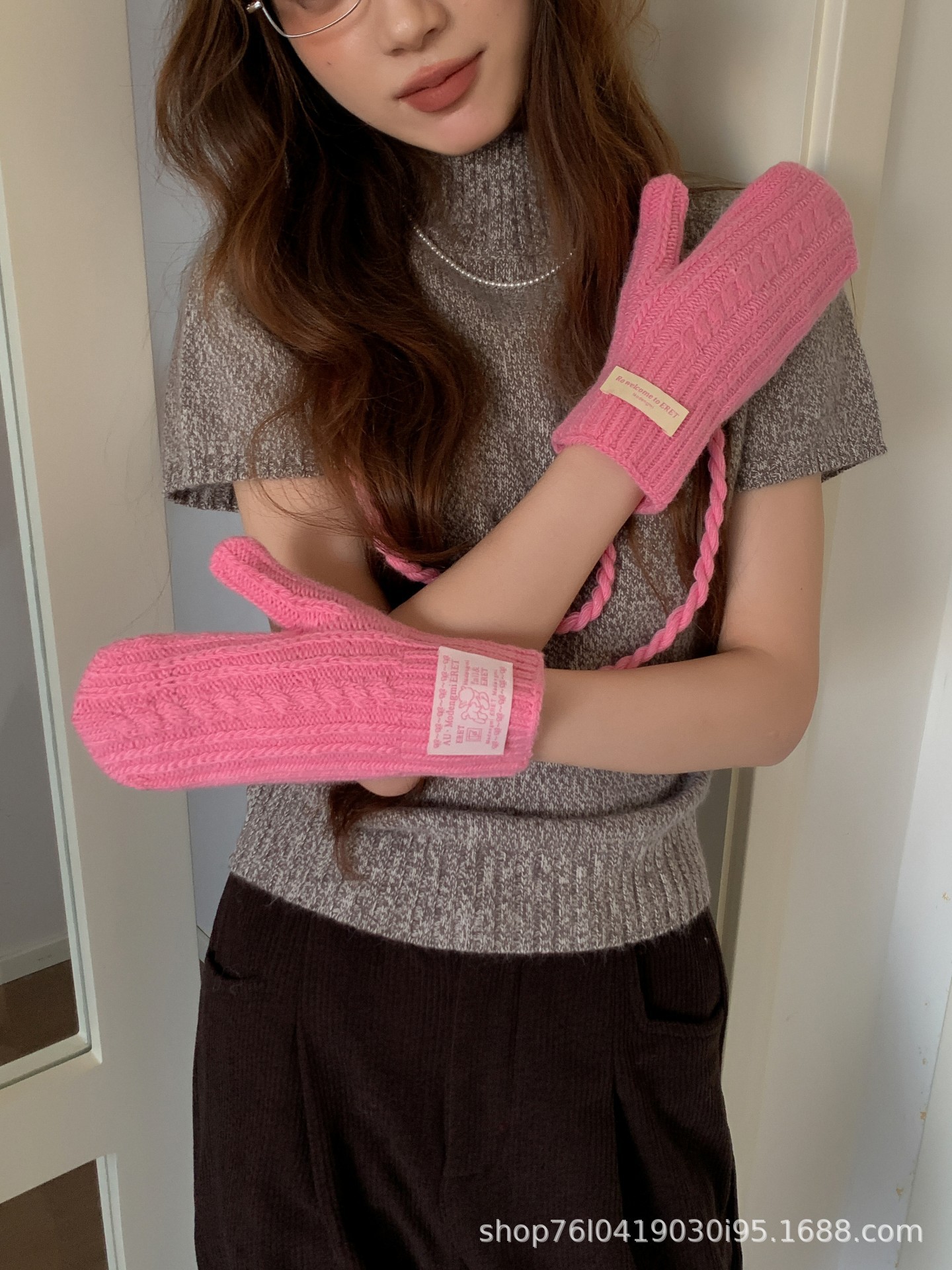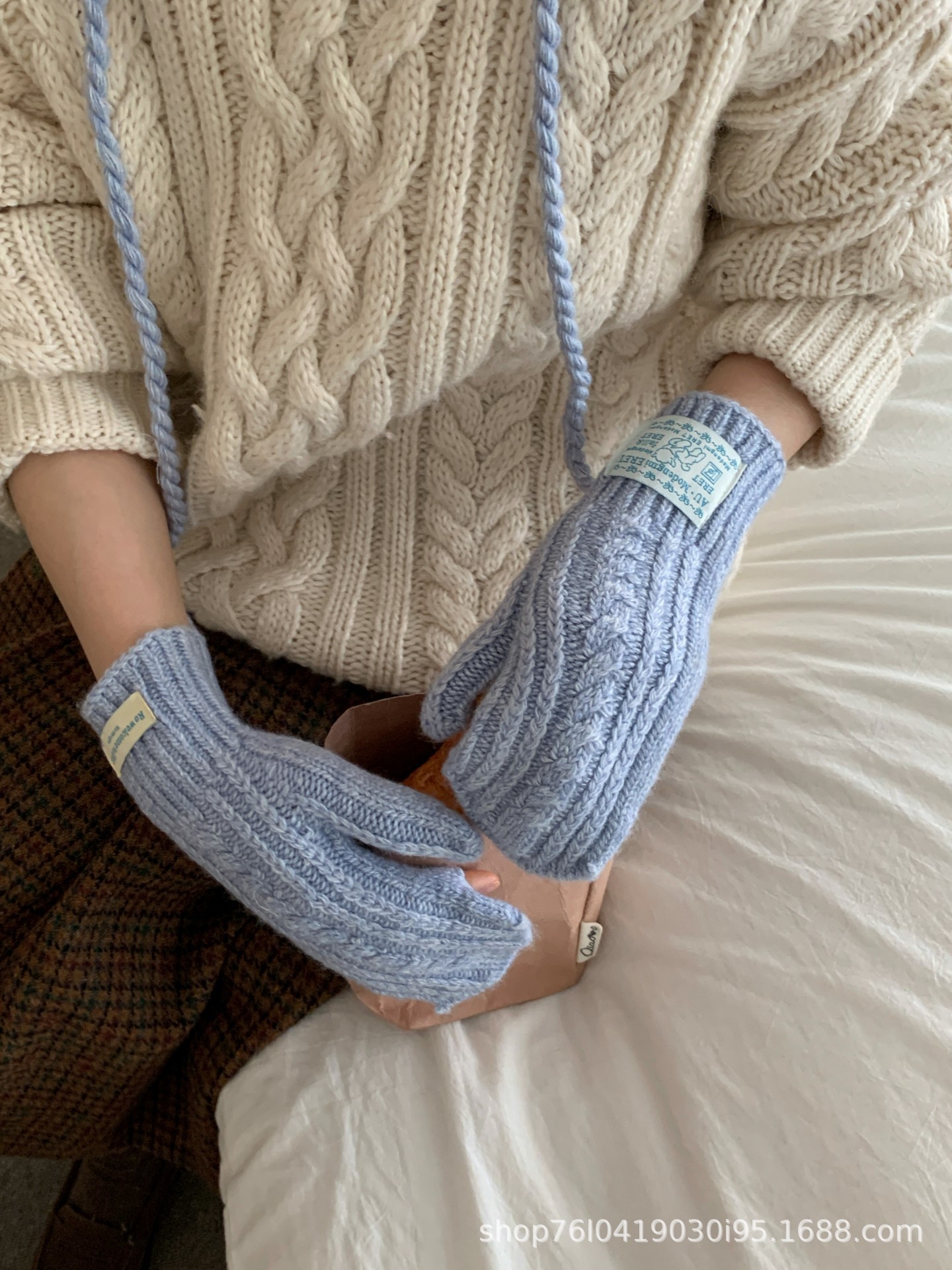韩代同款麻花毛线手套25新款甜妹冬季骑行保暖挂脖包指手套可触屏