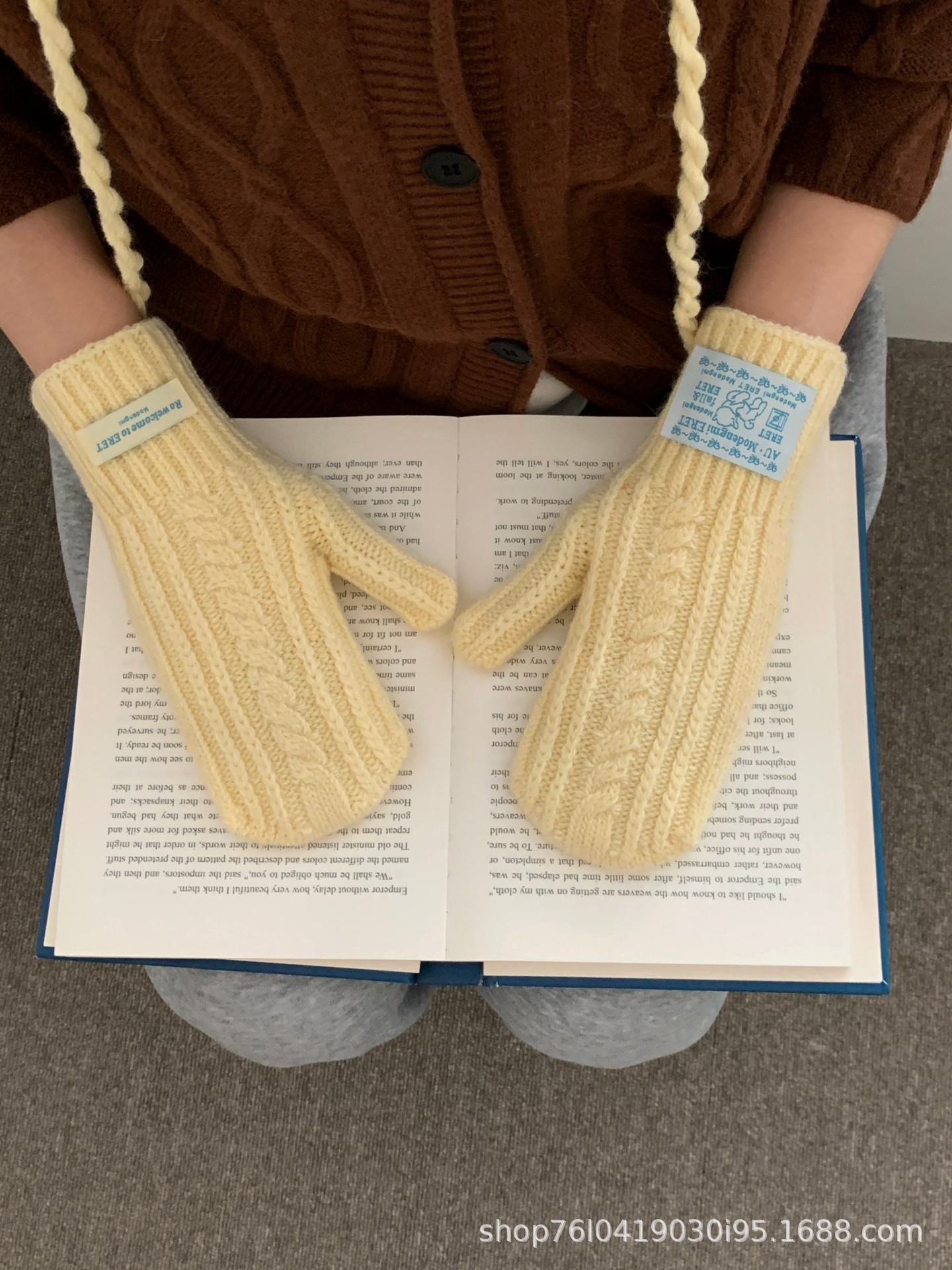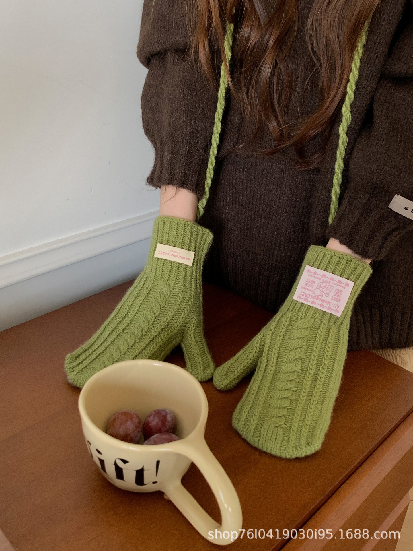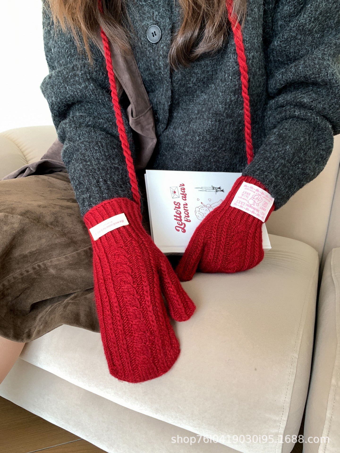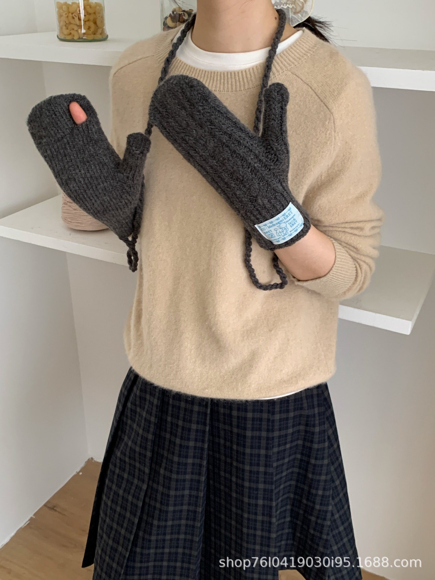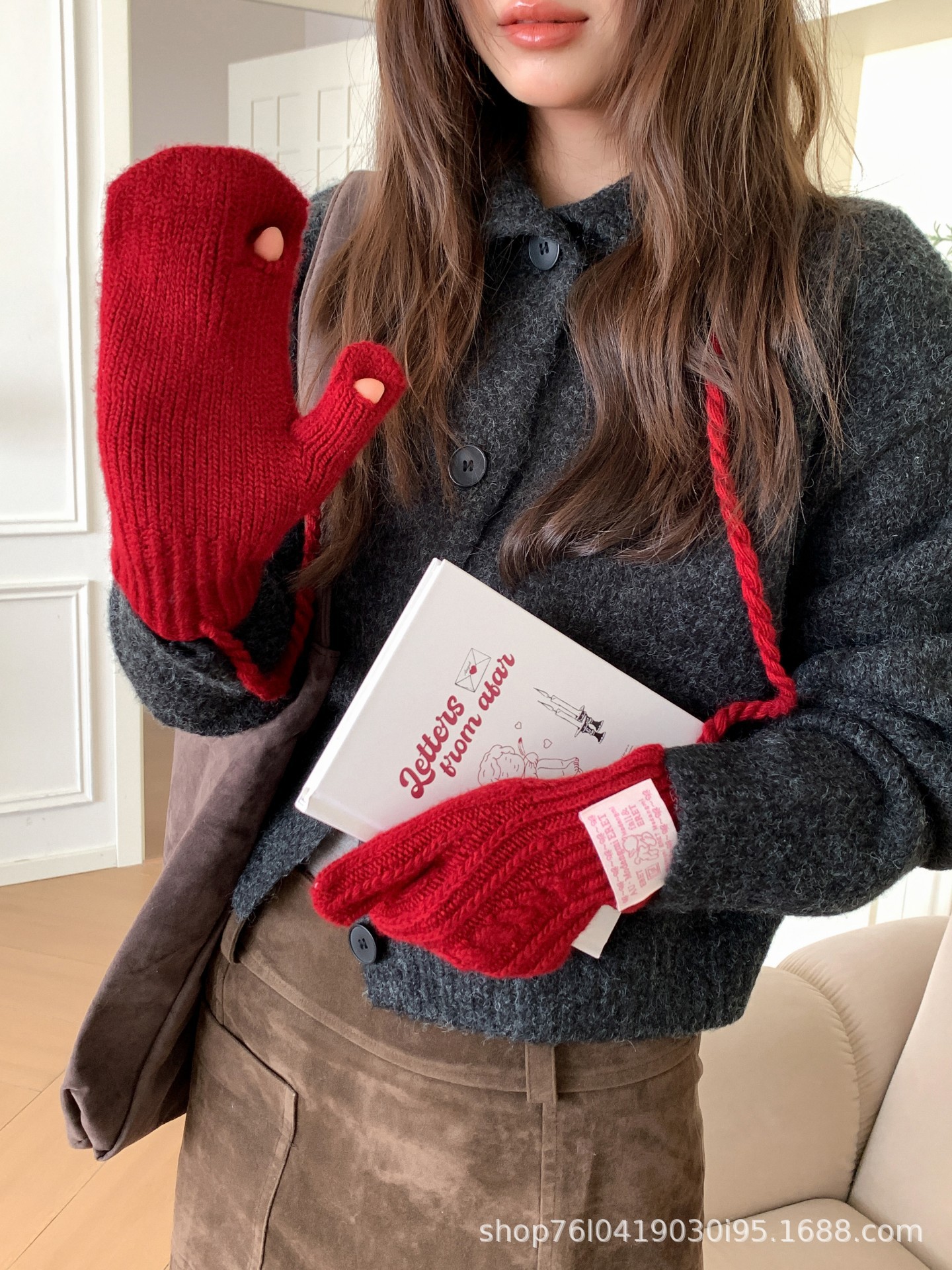 韩代同款麻花毛线手套25新款甜妹冬季骑行保暖挂脖包指手套可触屏