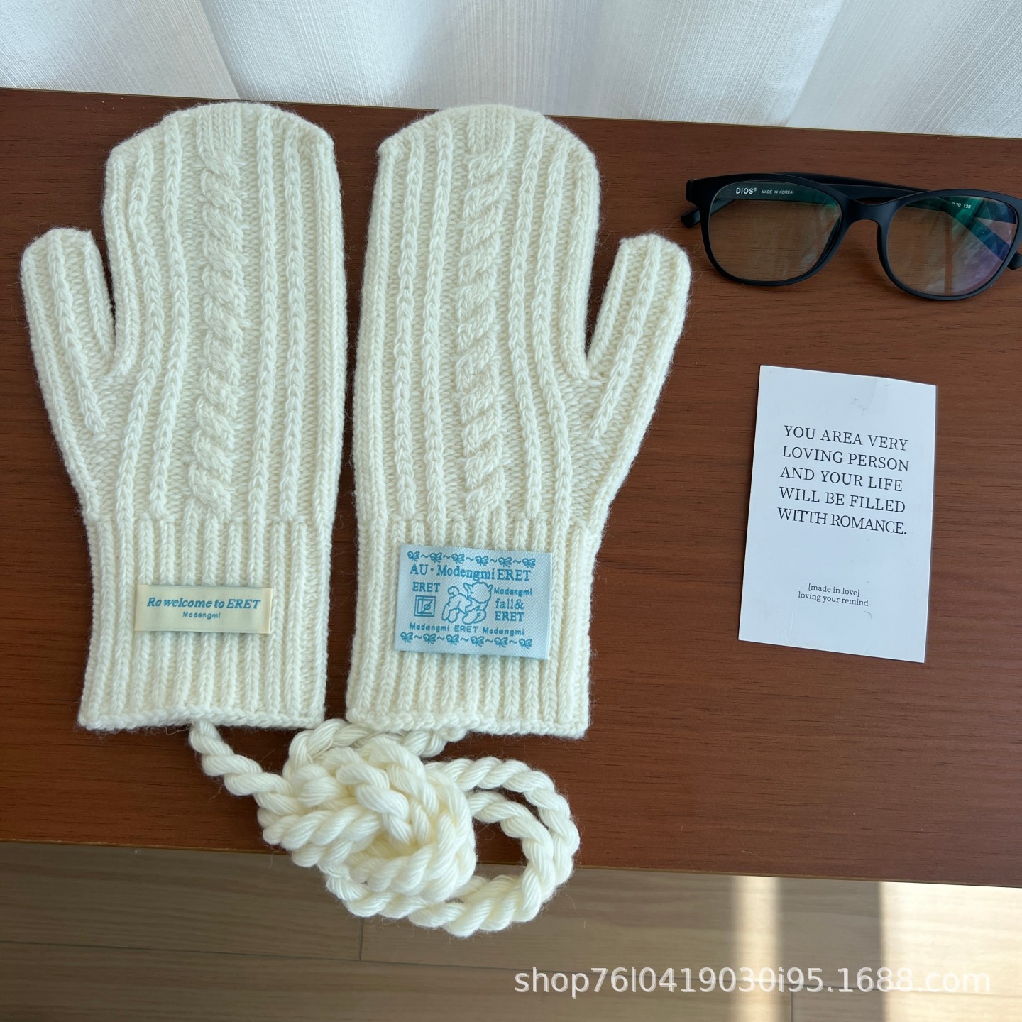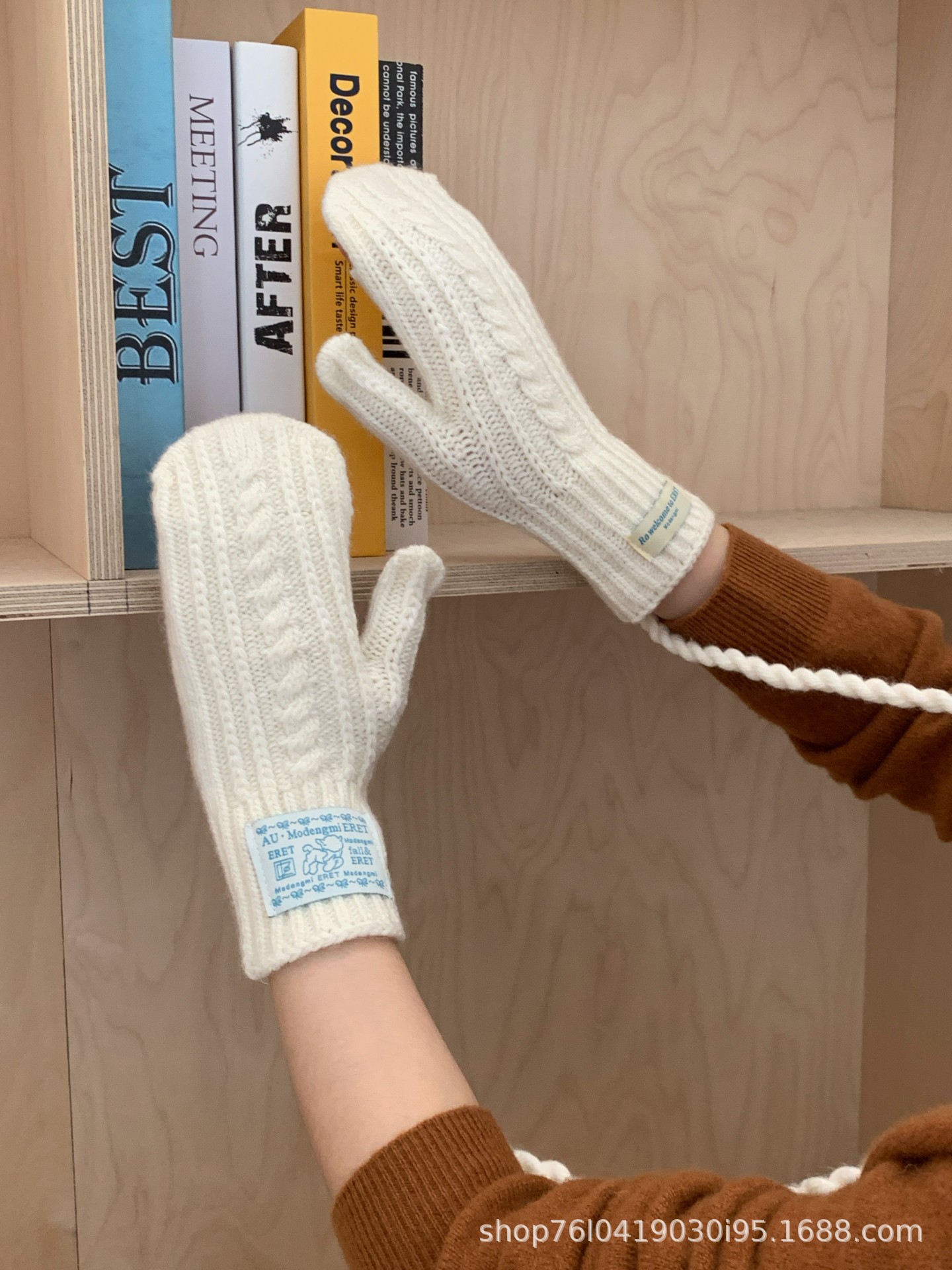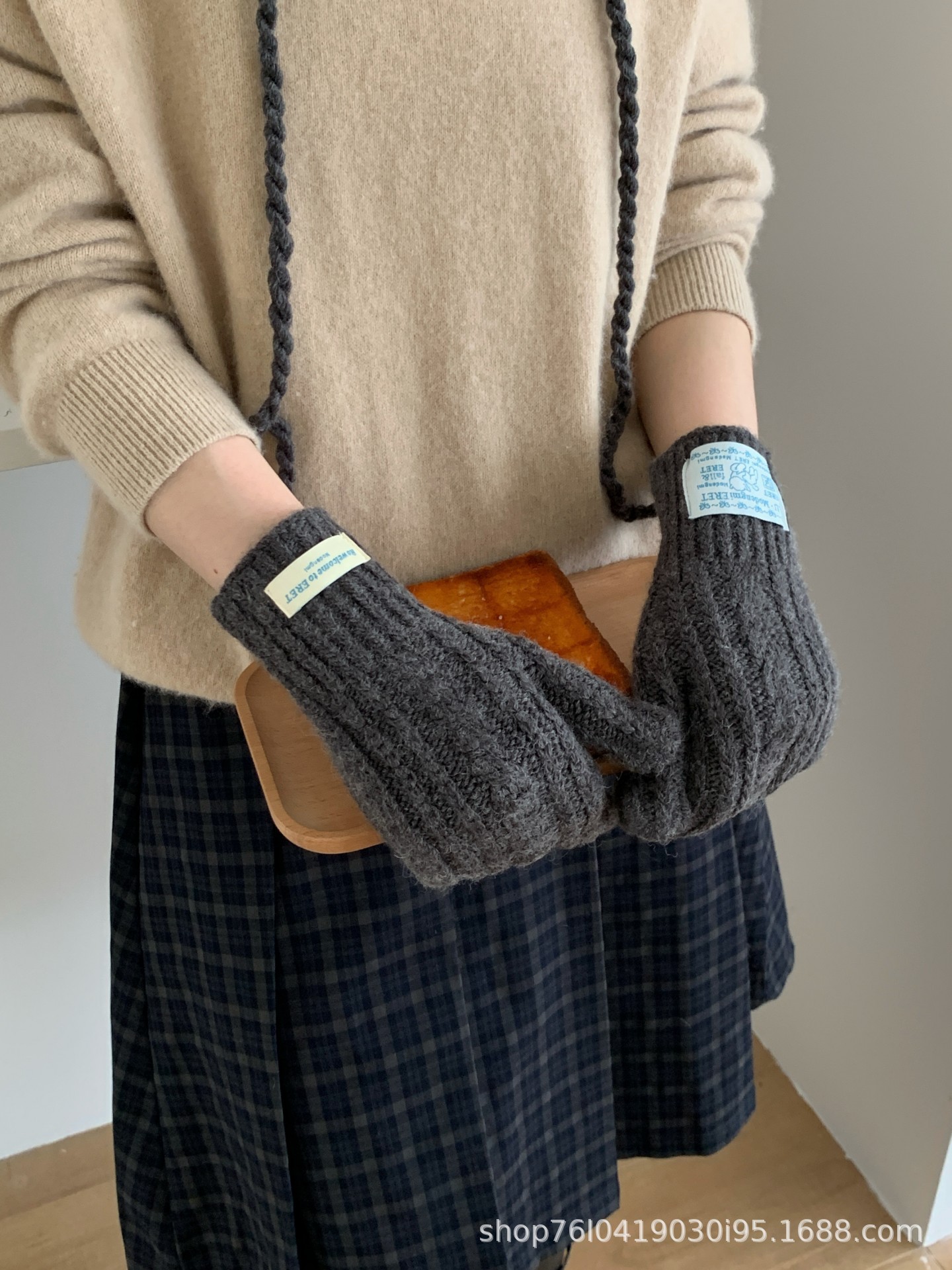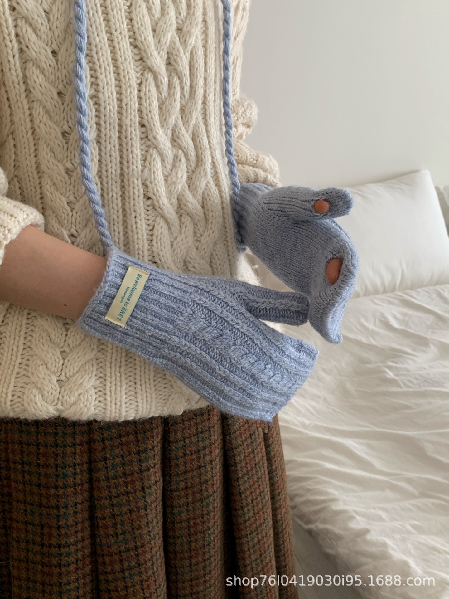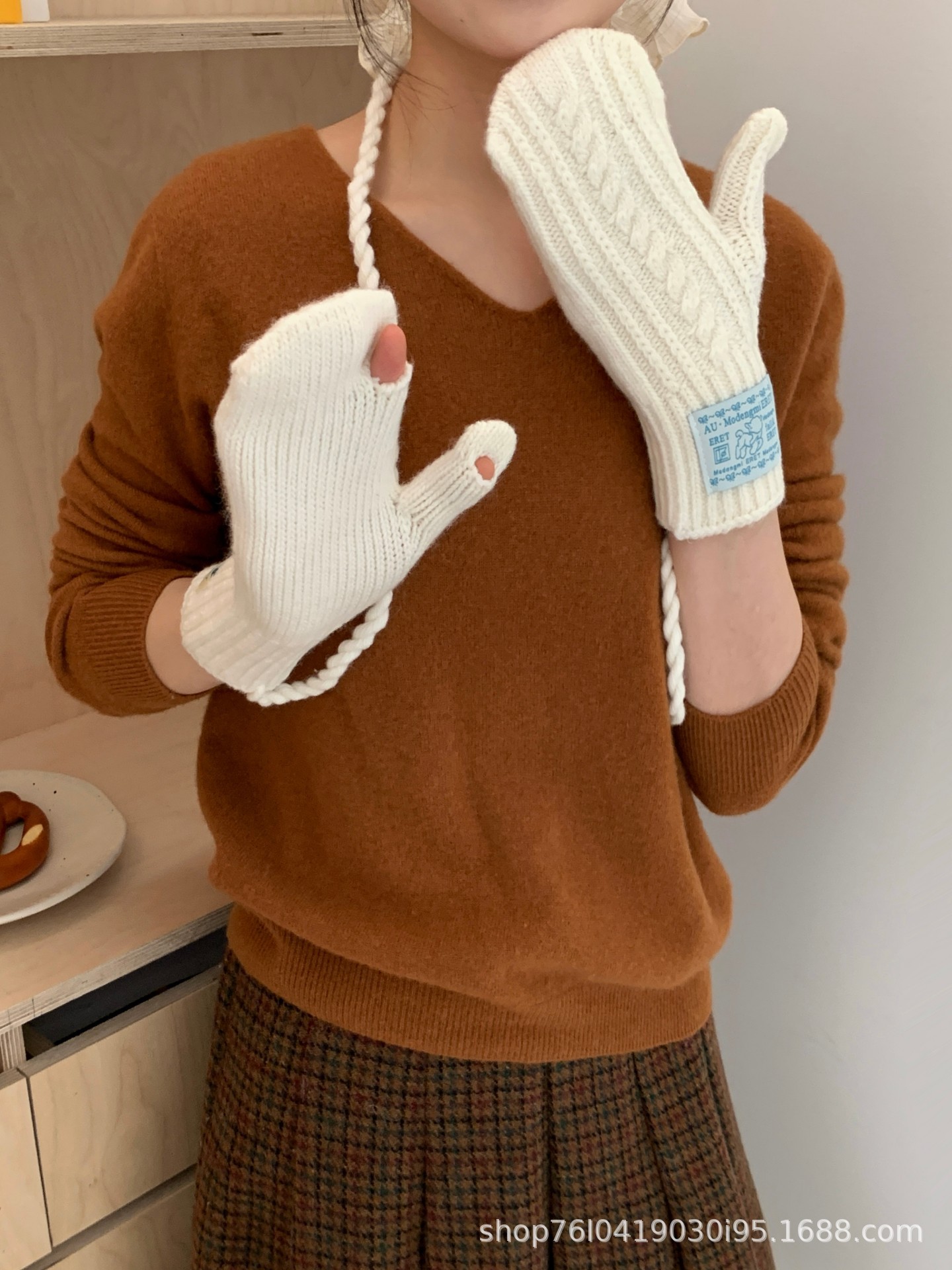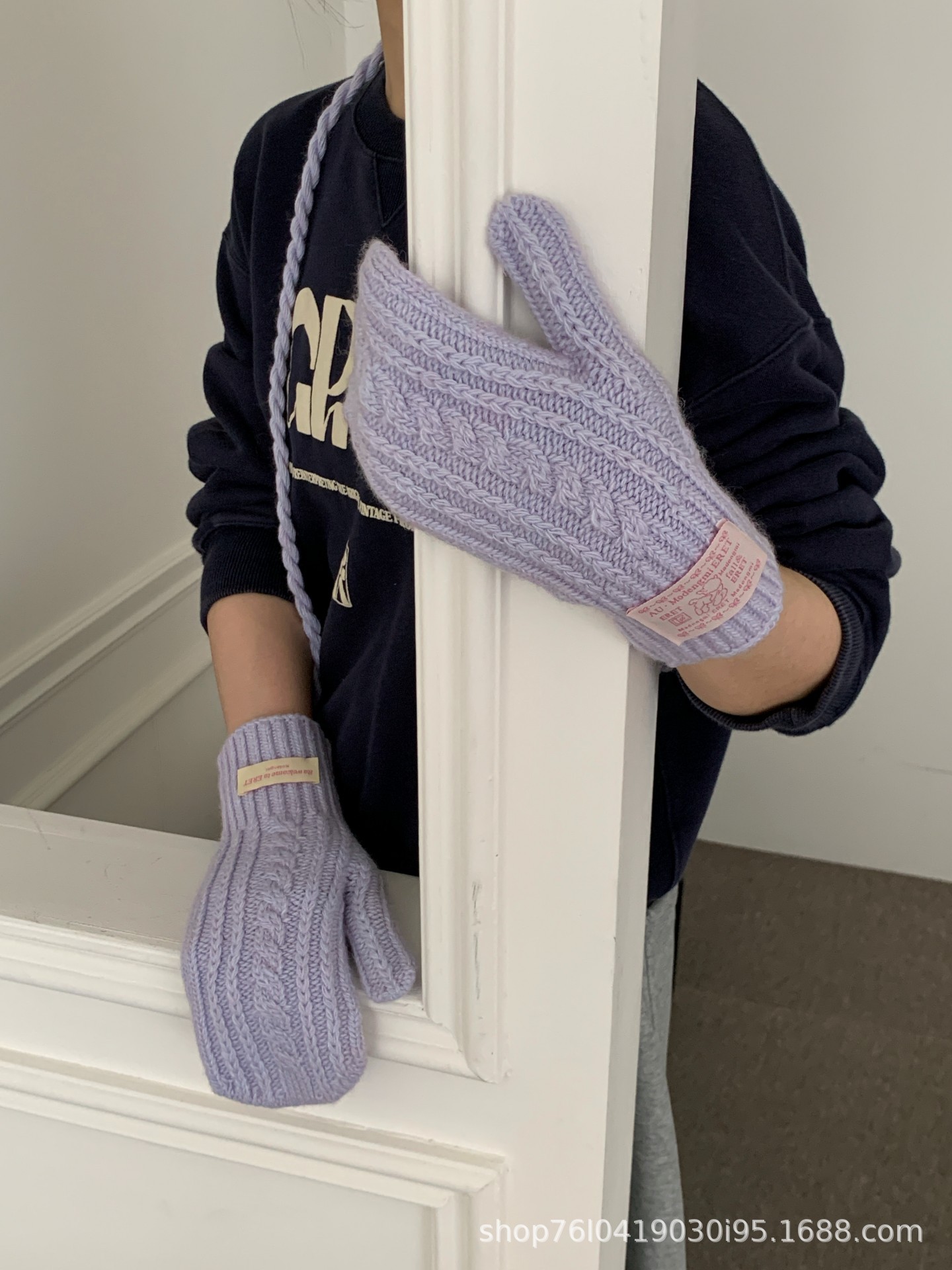 韩代同款麻花毛线手套25新款甜妹冬季骑行保暖挂脖包指手套可触屏