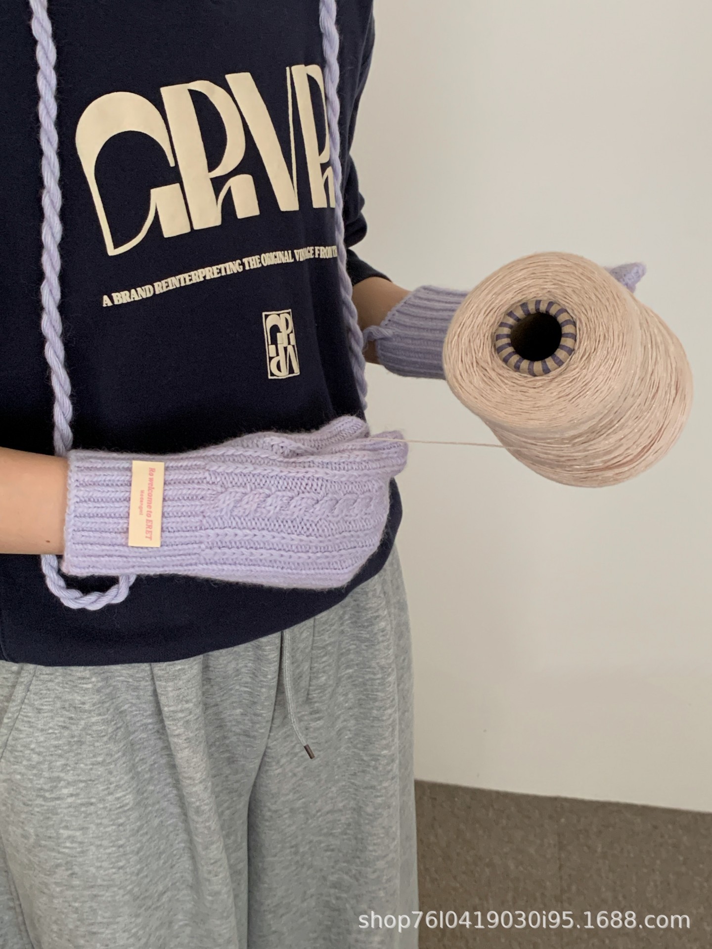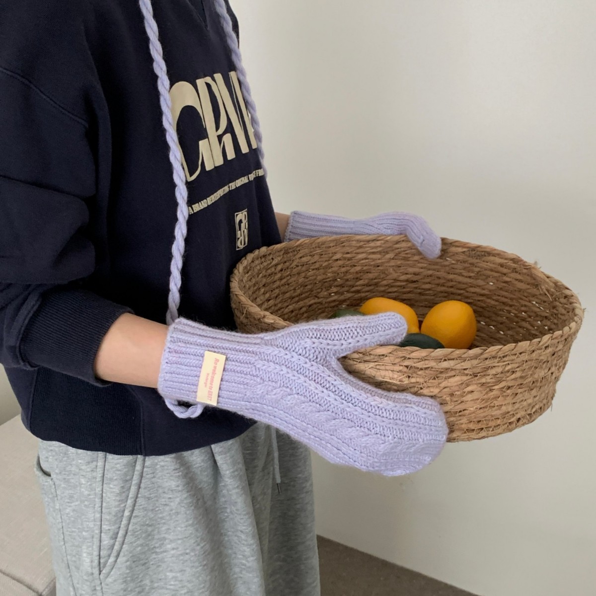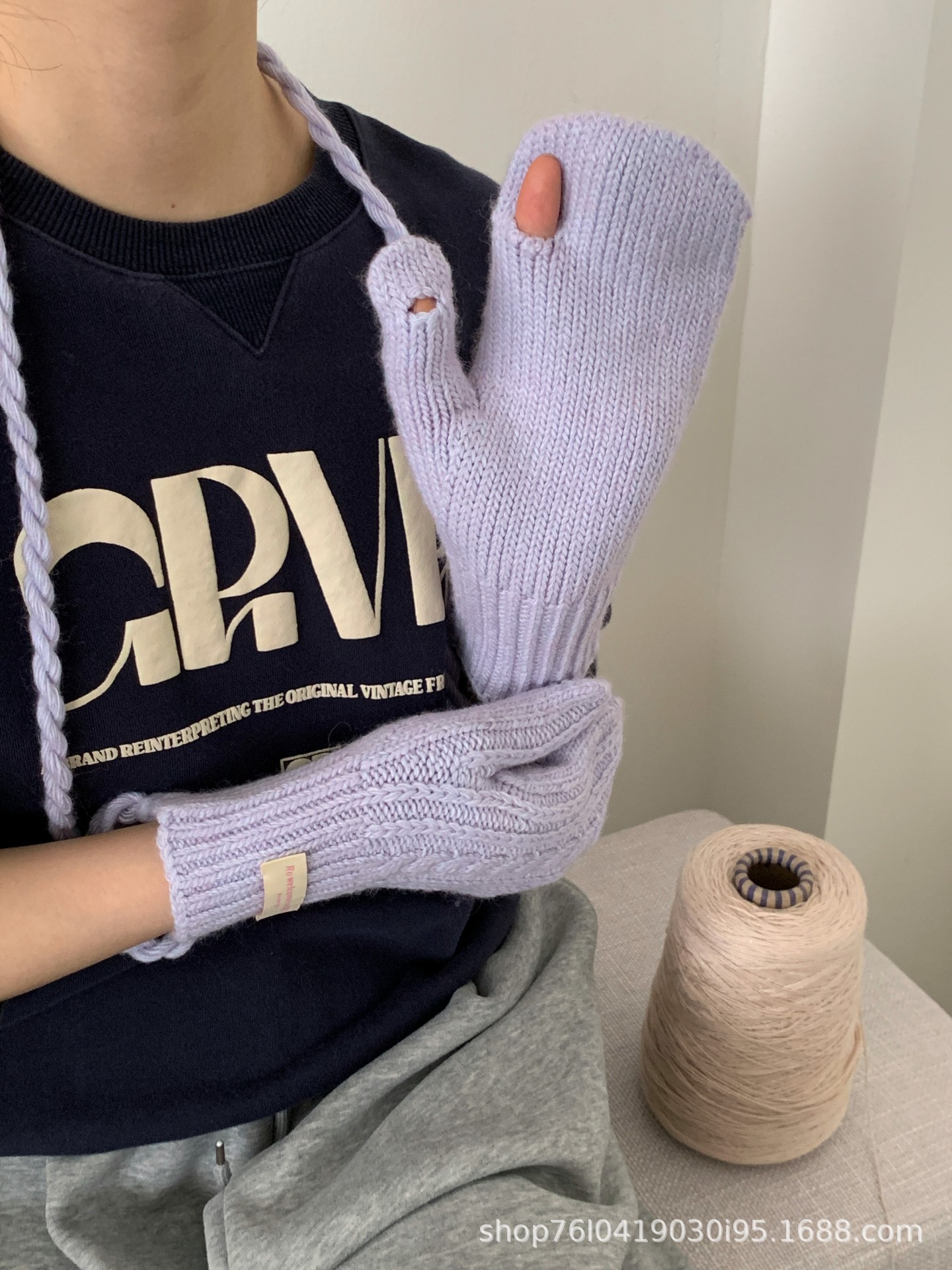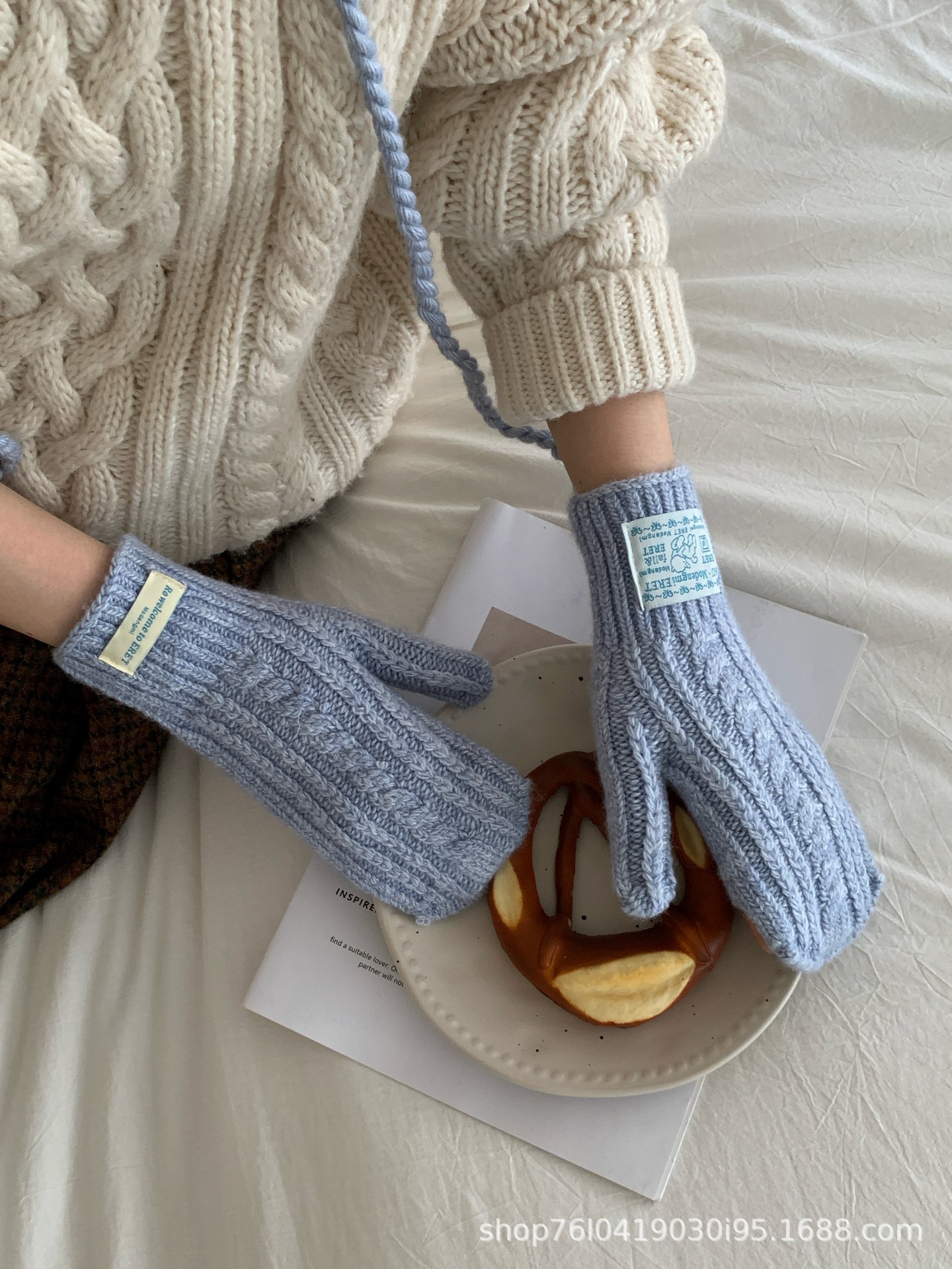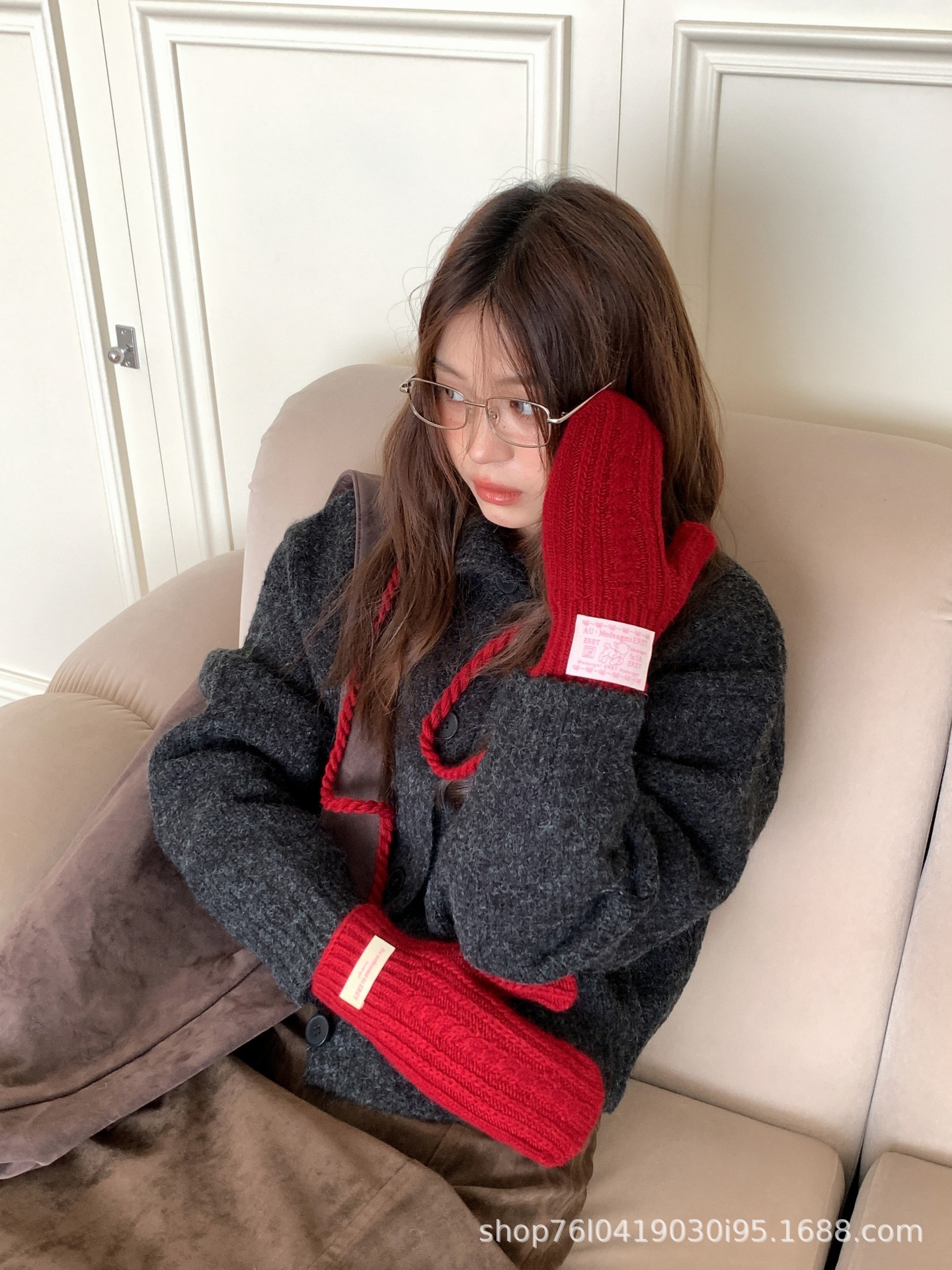 韩代同款麻花毛线手套25新款甜妹冬季骑行保暖挂脖包指手套可触屏