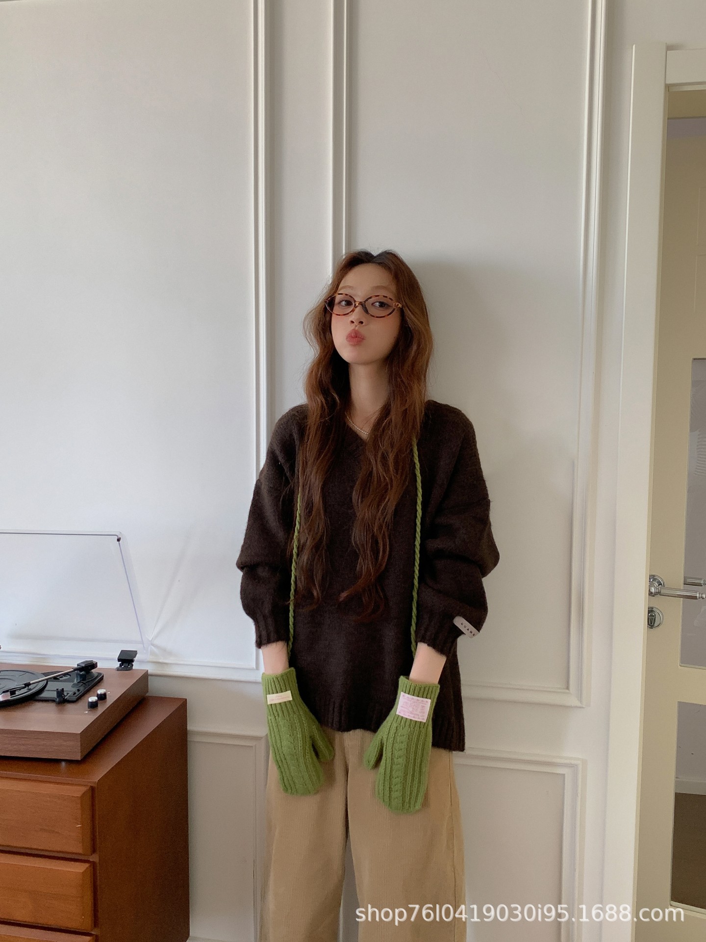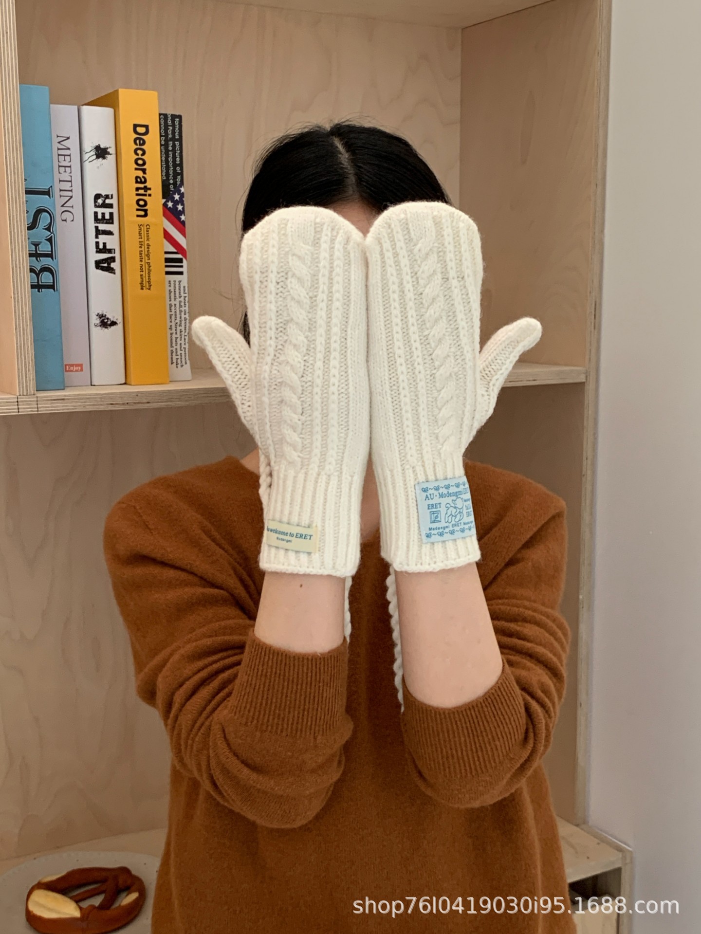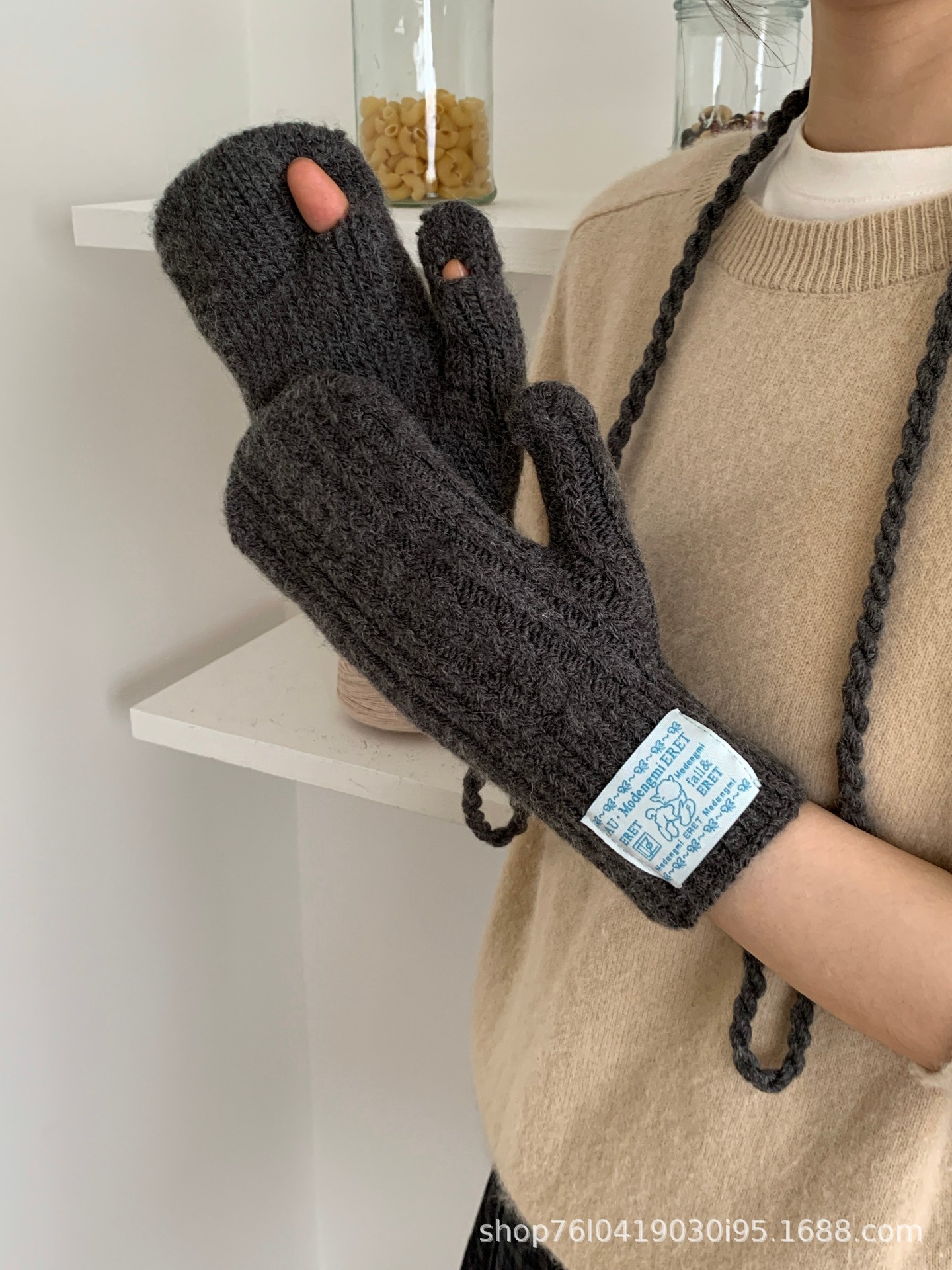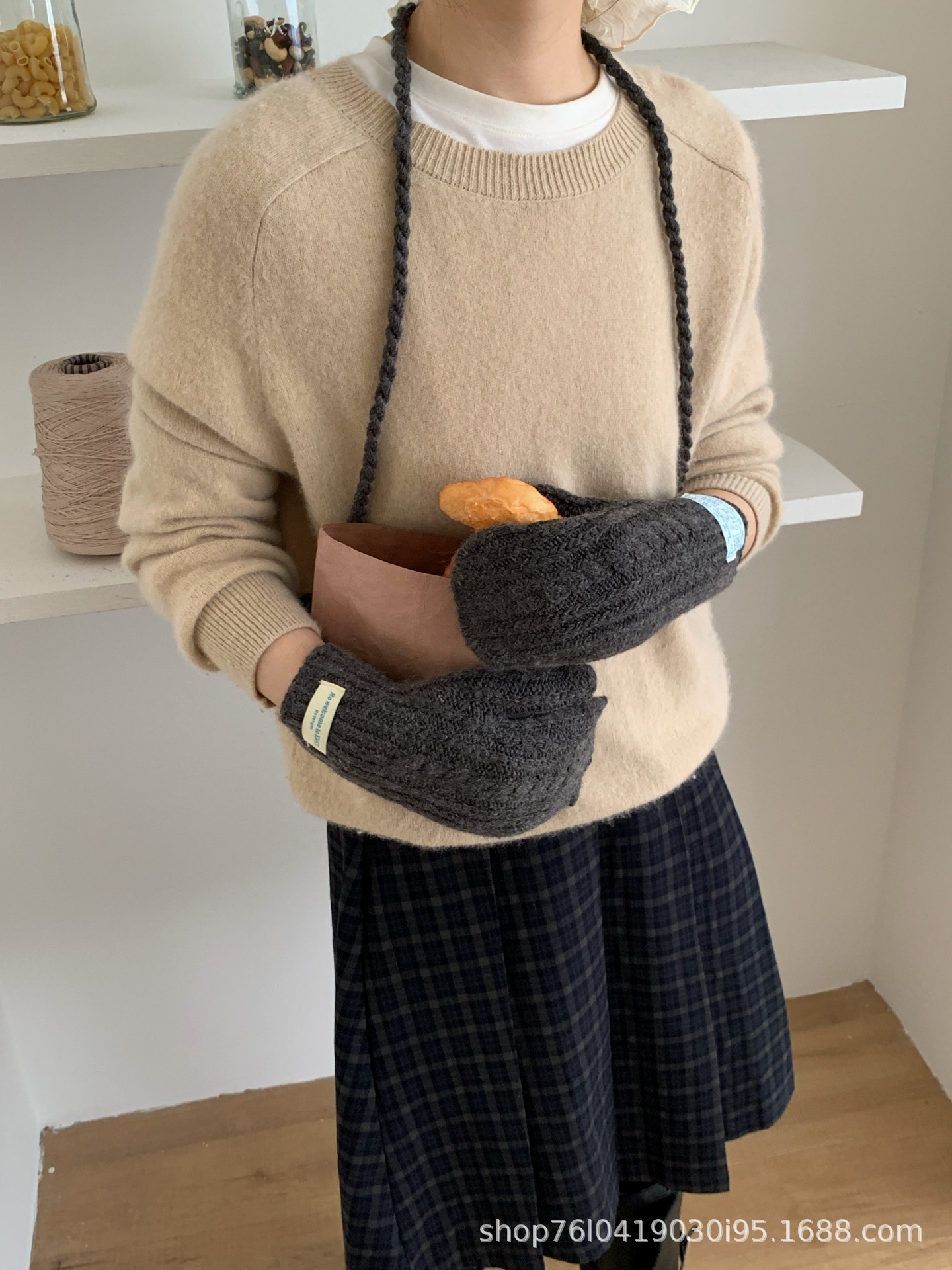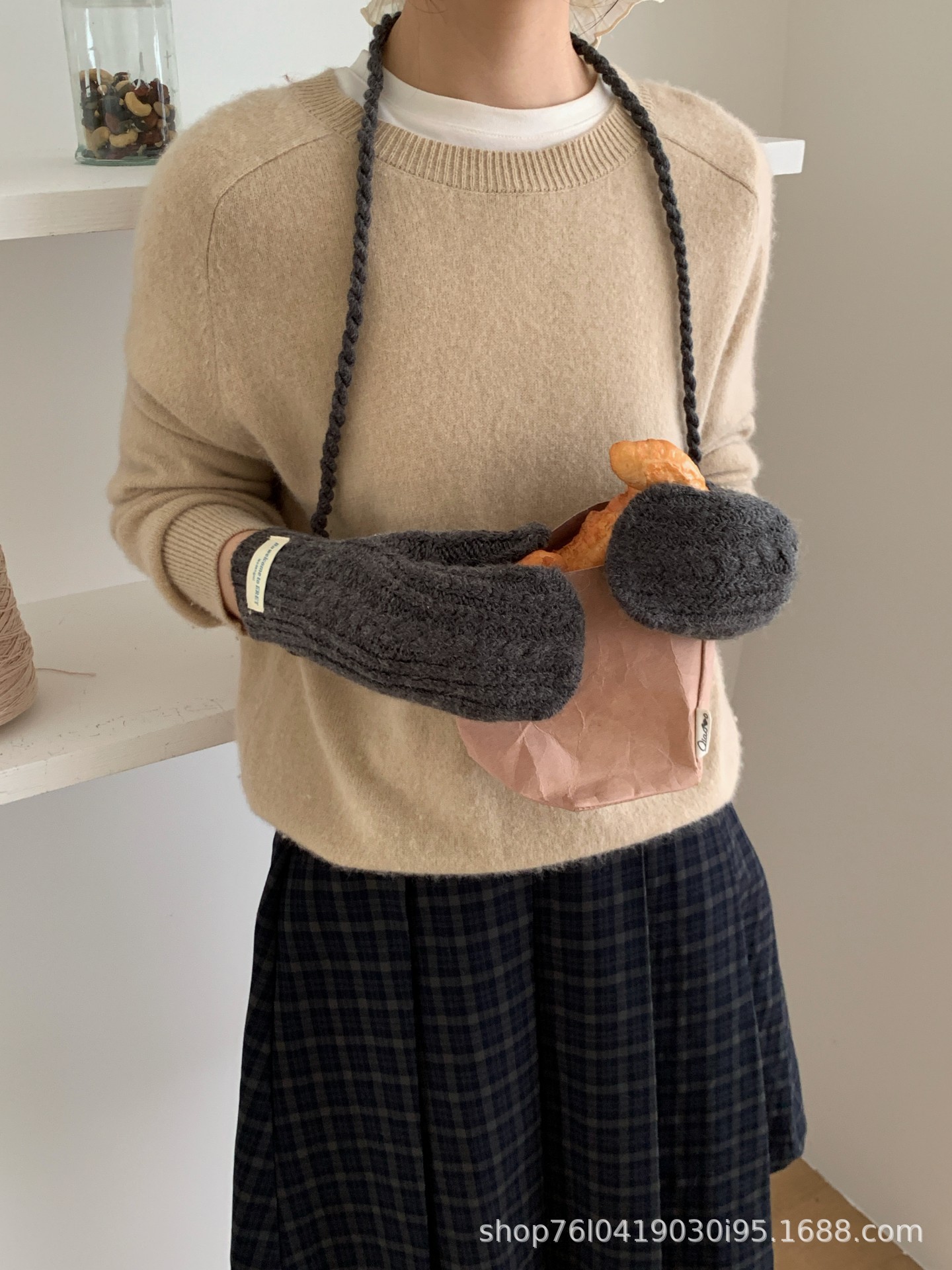 韩代同款麻花毛线手套25新款甜妹冬季骑行保暖挂脖包指手套可触屏