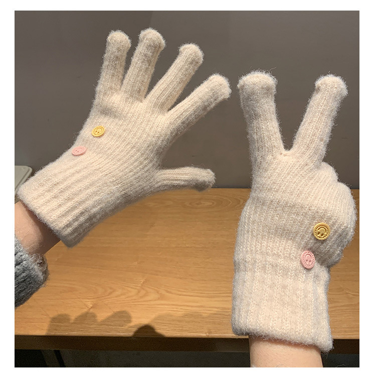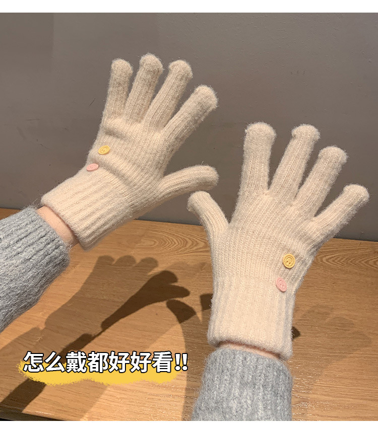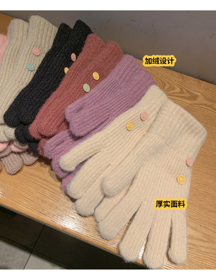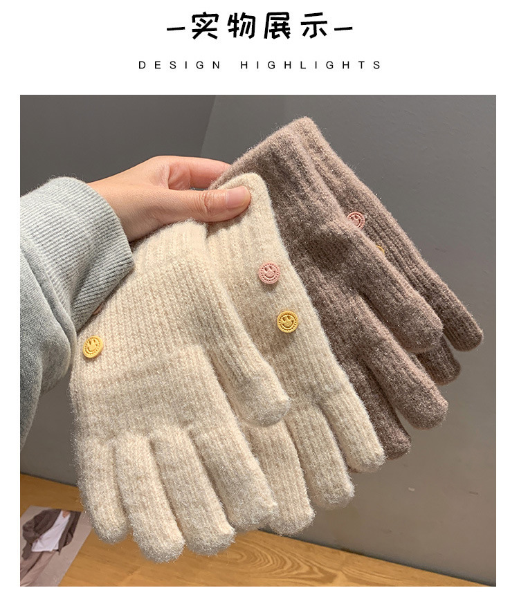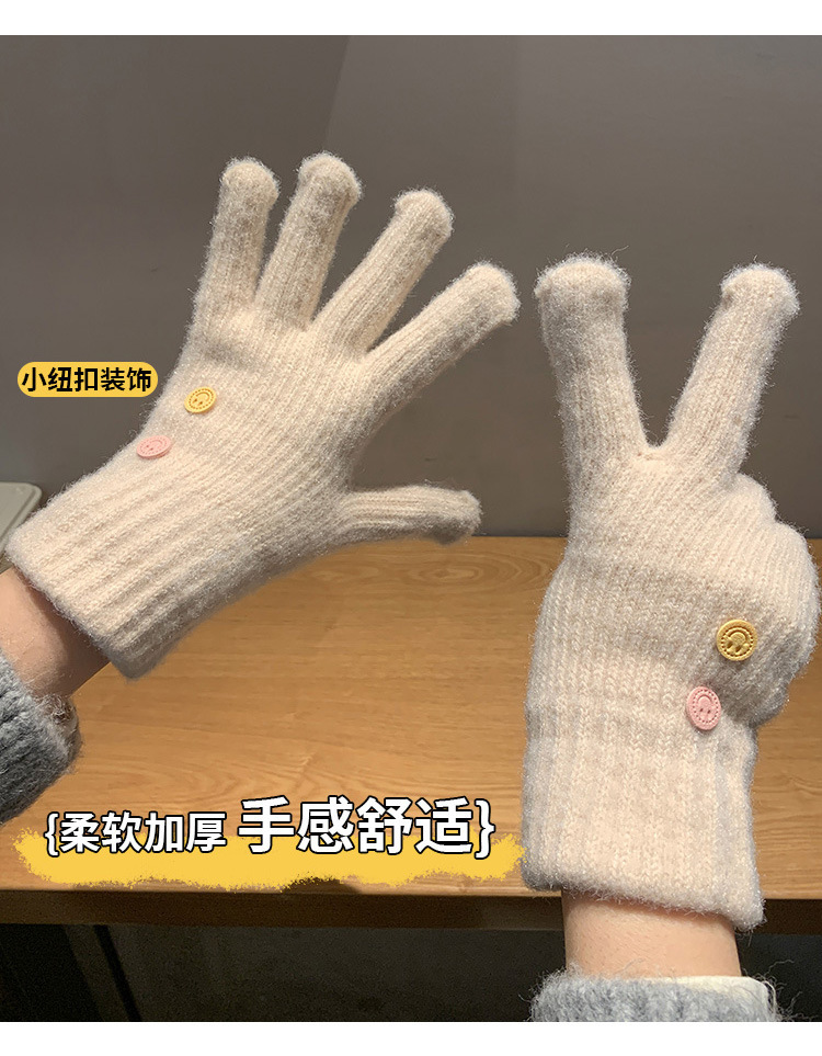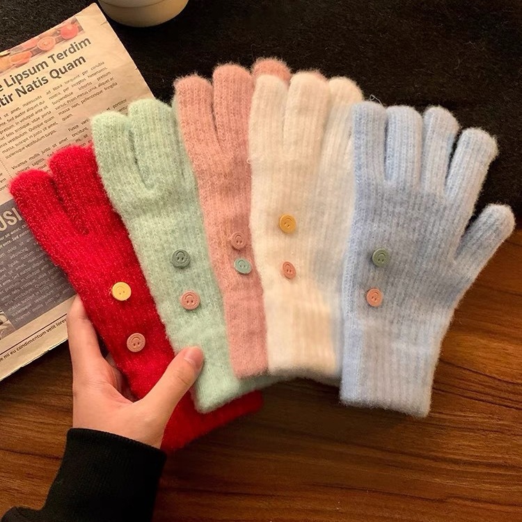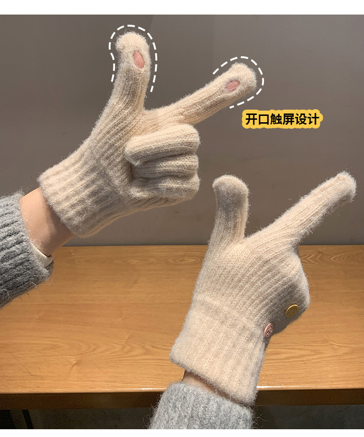 可触屏漏指针织保暖手套女可爱冬季简约防寒2024新款纯色分指骑行