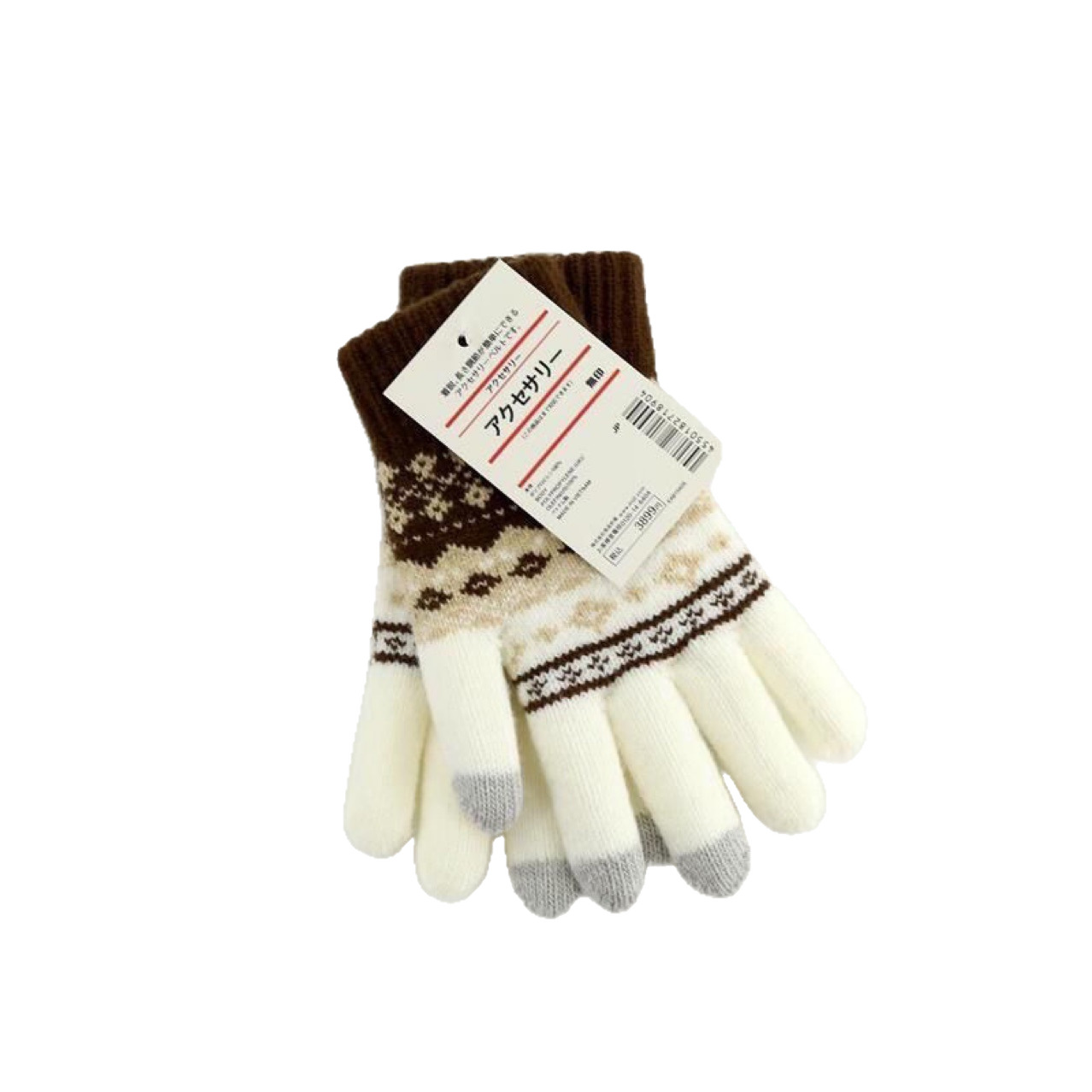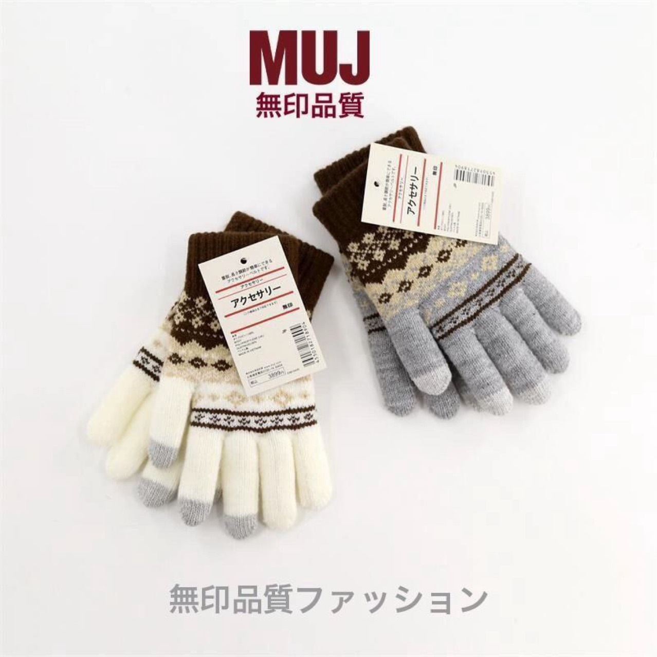 无印MUJ冬季保暖手套加绒加厚秋冬提花男女防寒骑行触屏针织骑车