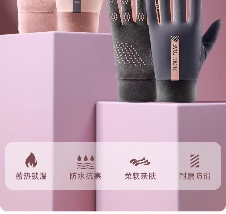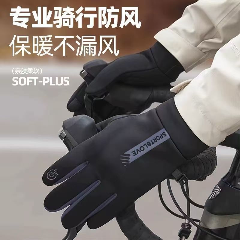 触屏手套加绒保暖冬季防风防水秋冬季户外电动车防滑骑行用手套