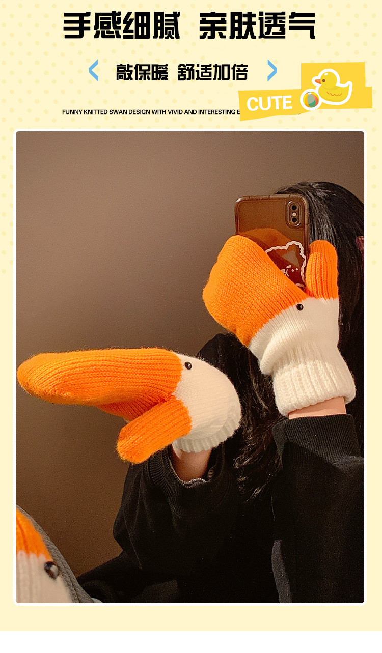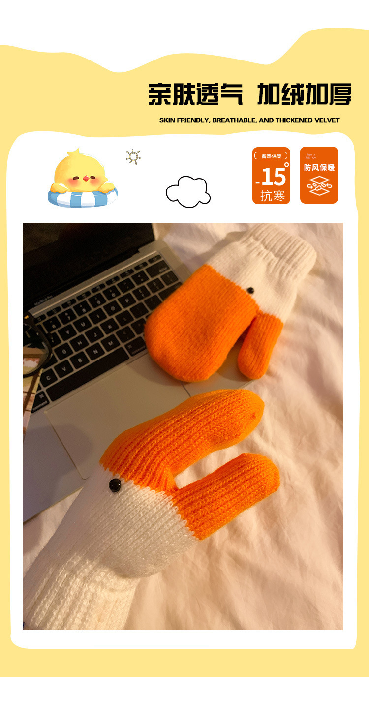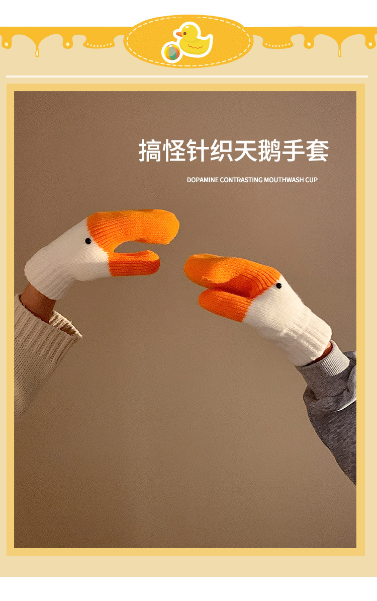 【搞怪大鹅】毛线连指手套女秋冬季保暖加绒加厚防寒可爱情侣学生