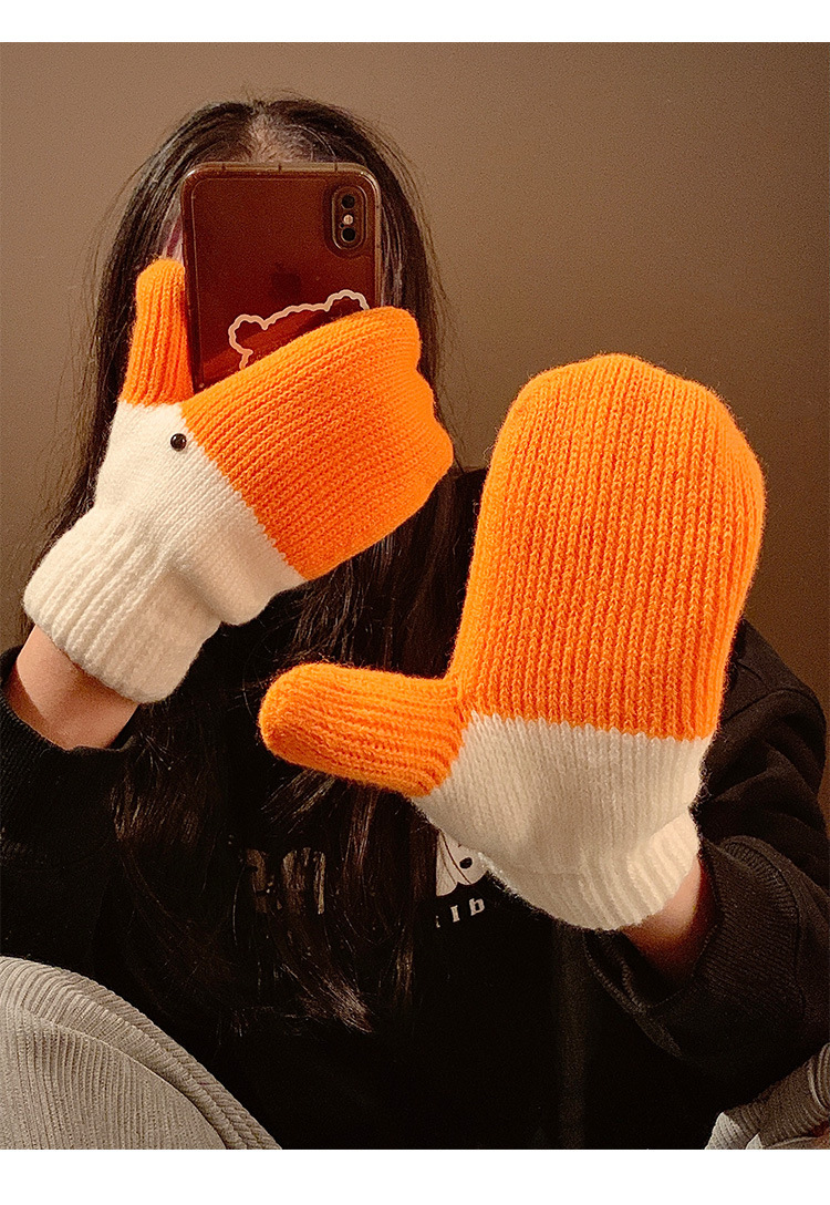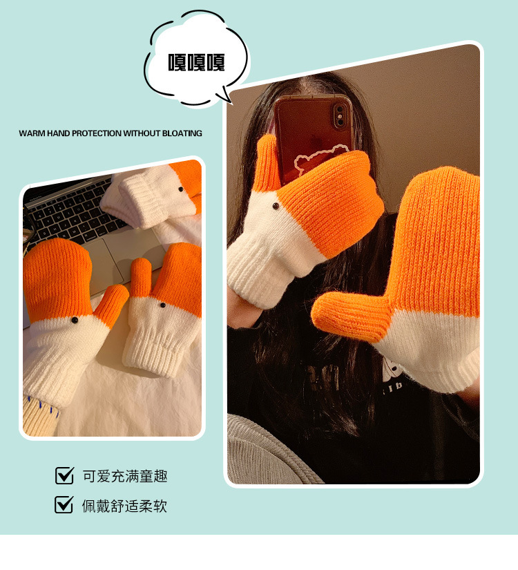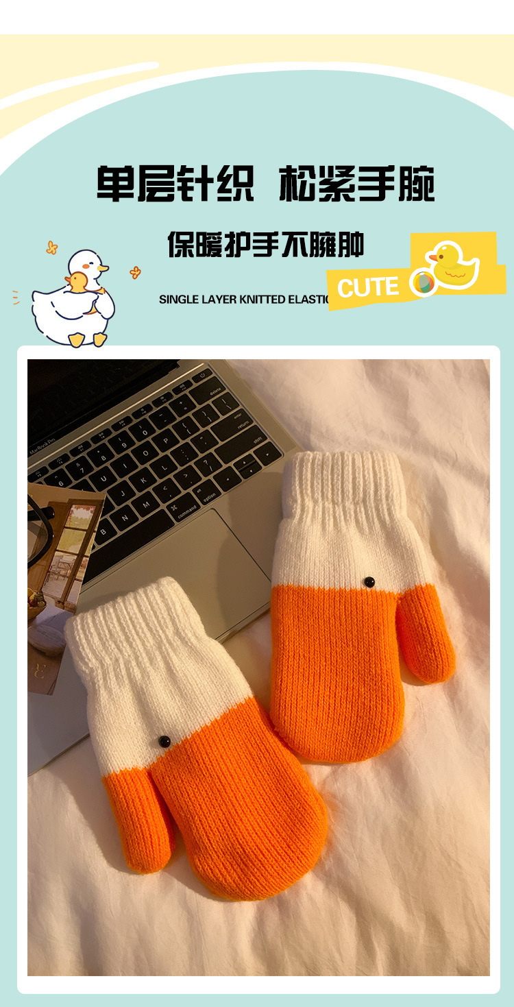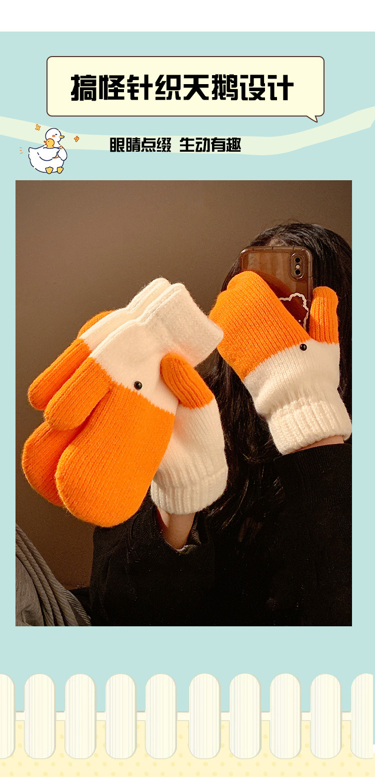 【搞怪大鹅】毛线连指手套女秋冬季保暖加绒加厚防寒可爱情侣学生