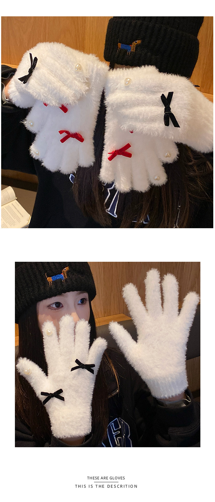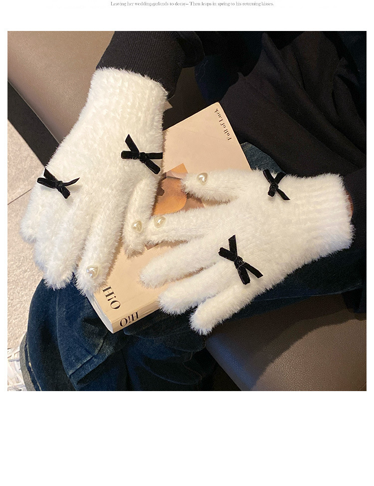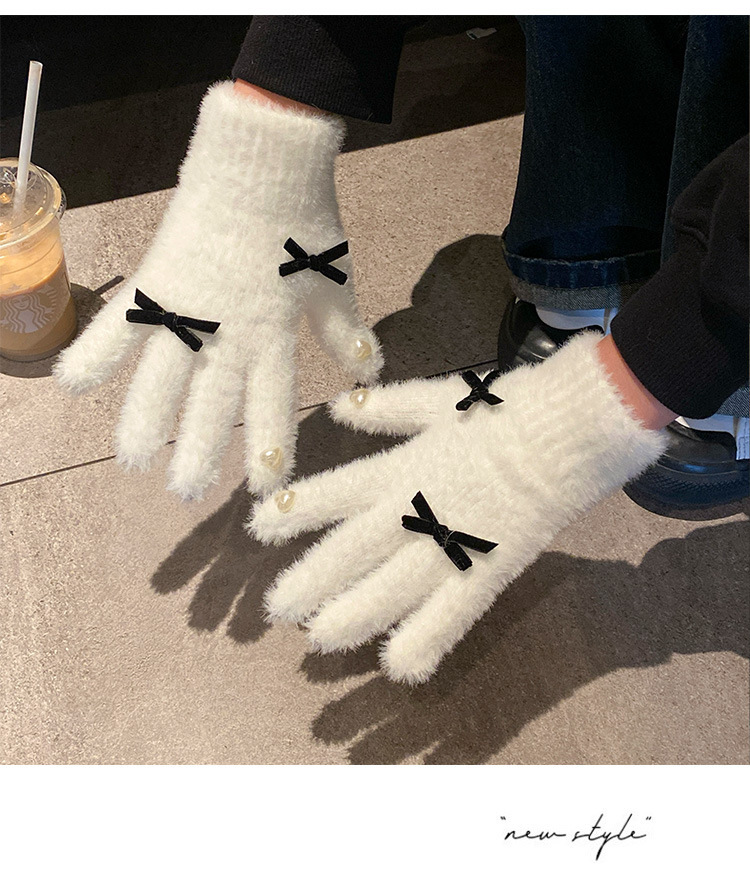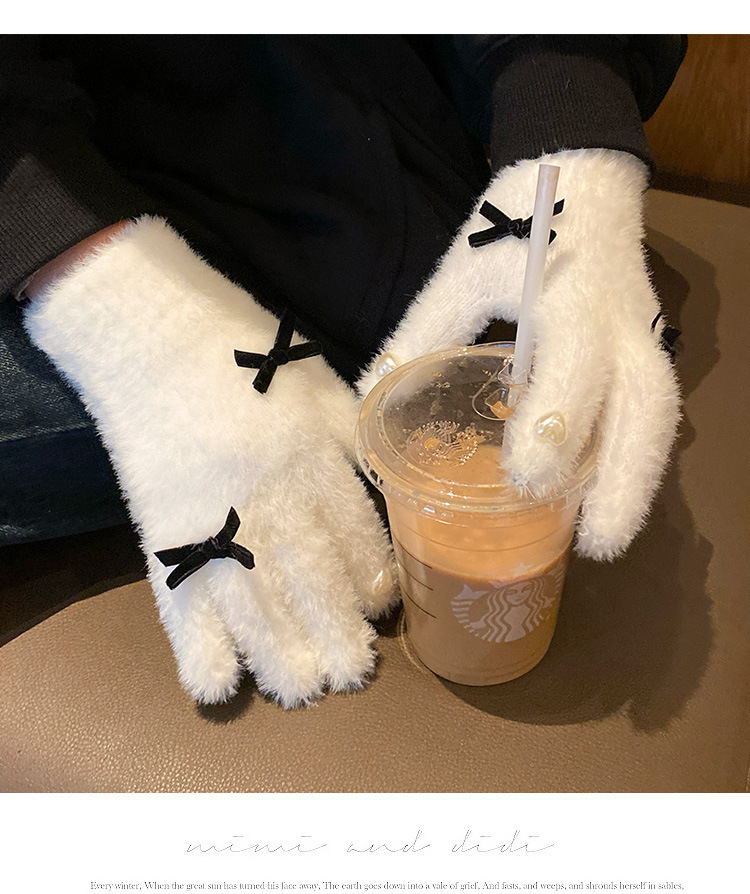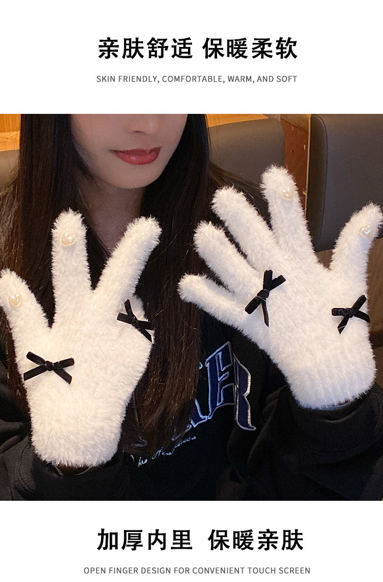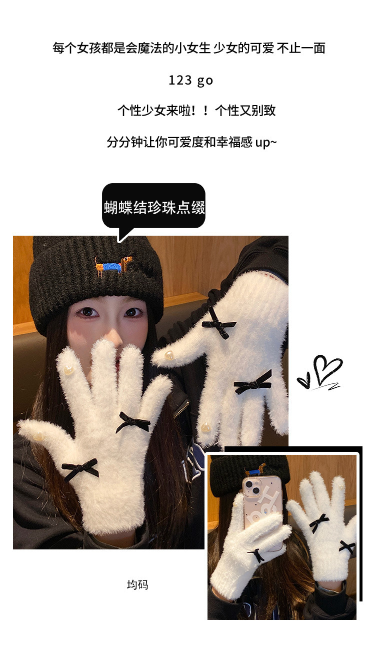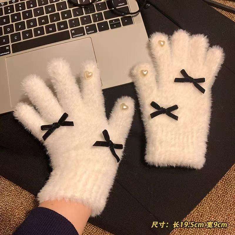 可爱白色针织毛绒手套女2025年冬季分指加厚加绒保暖防寒防风骑行