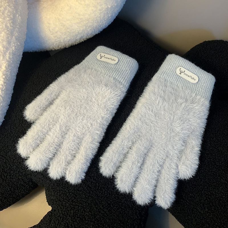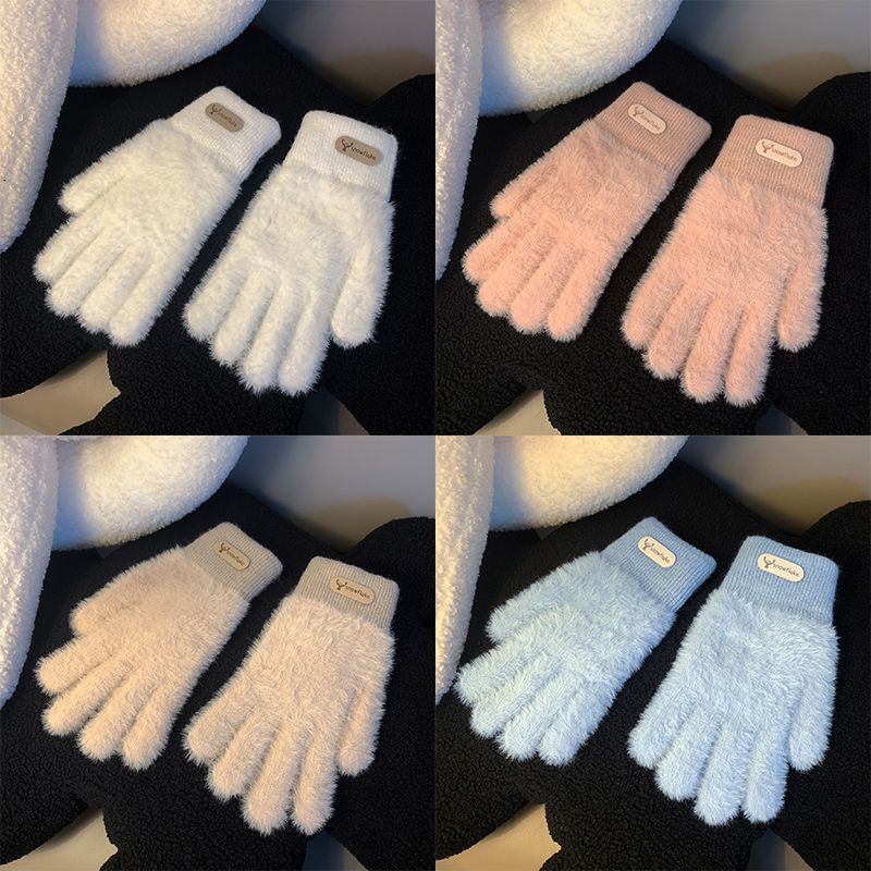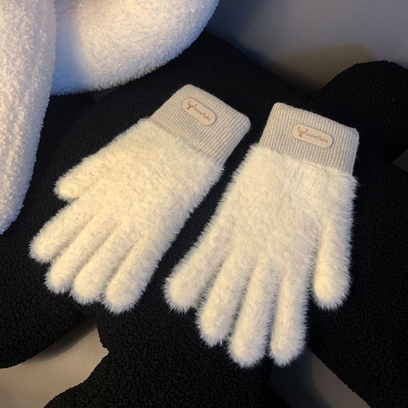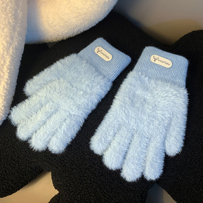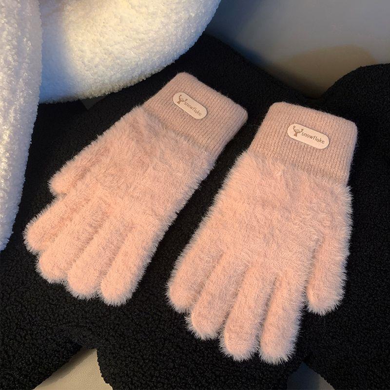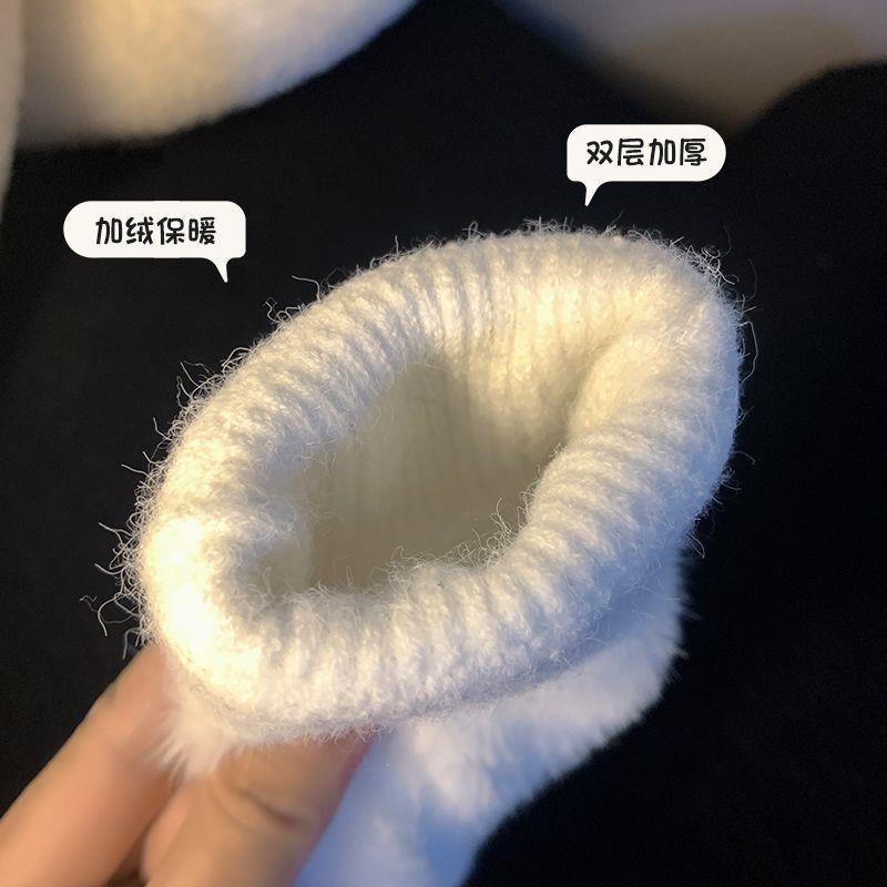 双层手套冬季针织韩版加绒加厚保暖防风防寒毛线分指学生户外骑行
