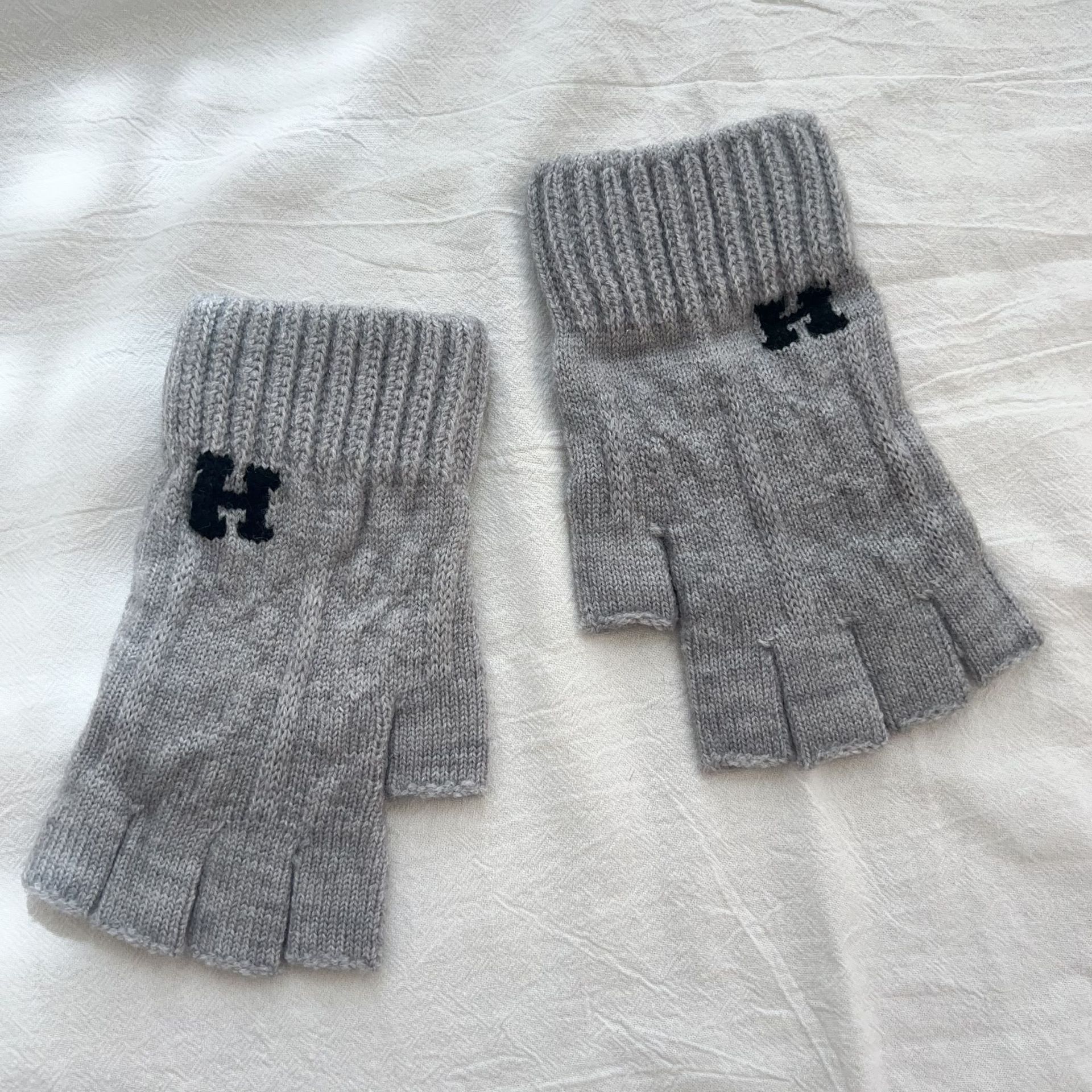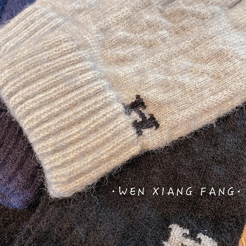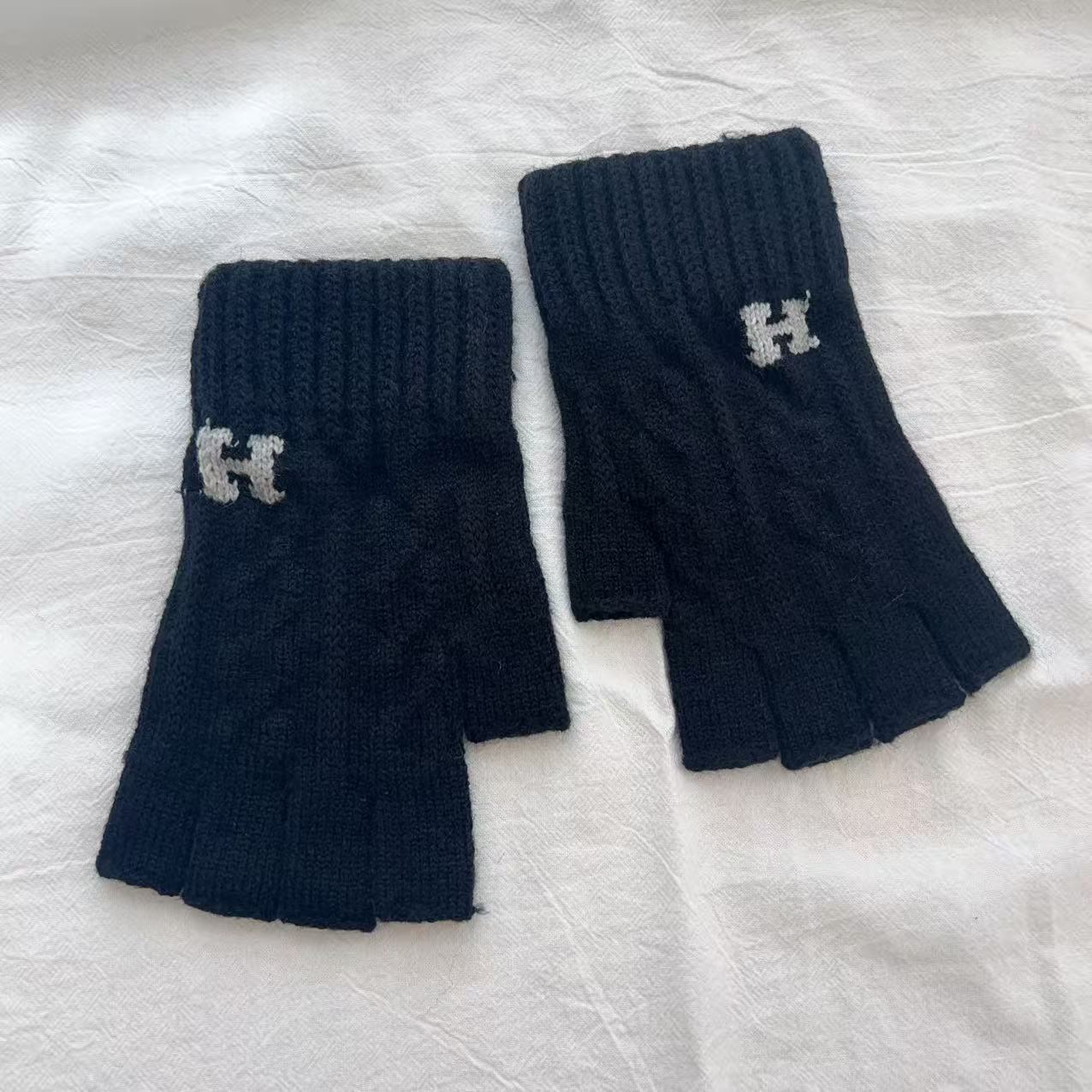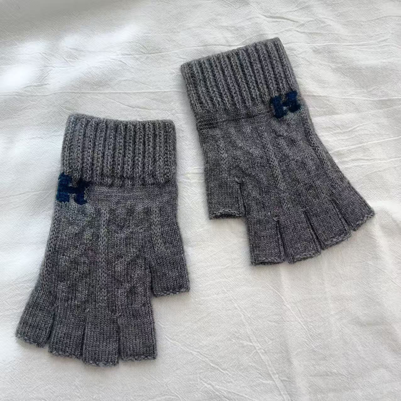 韩版针织触屏手套冬季男字母五指情侣骑车加绒学生加厚保暖复古女