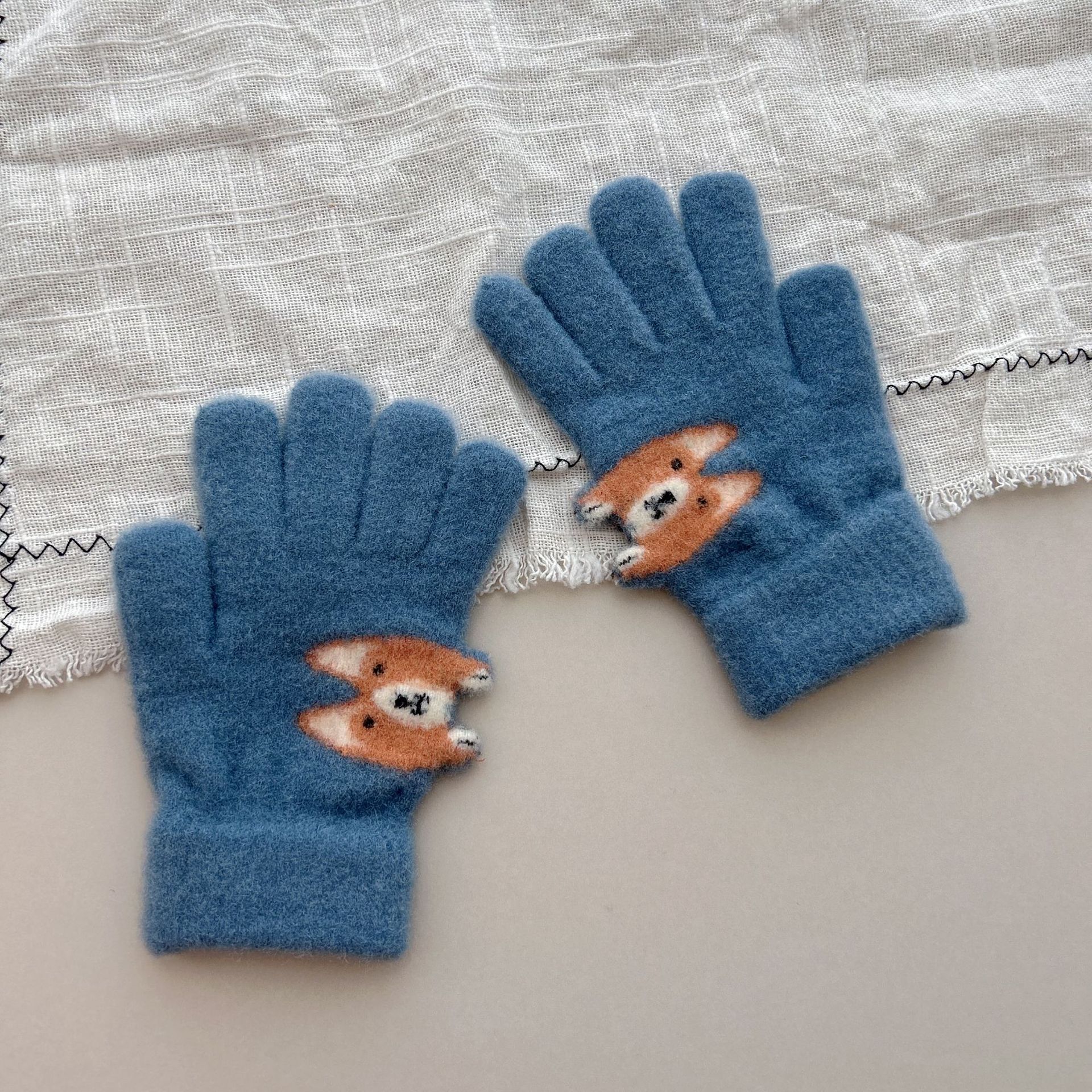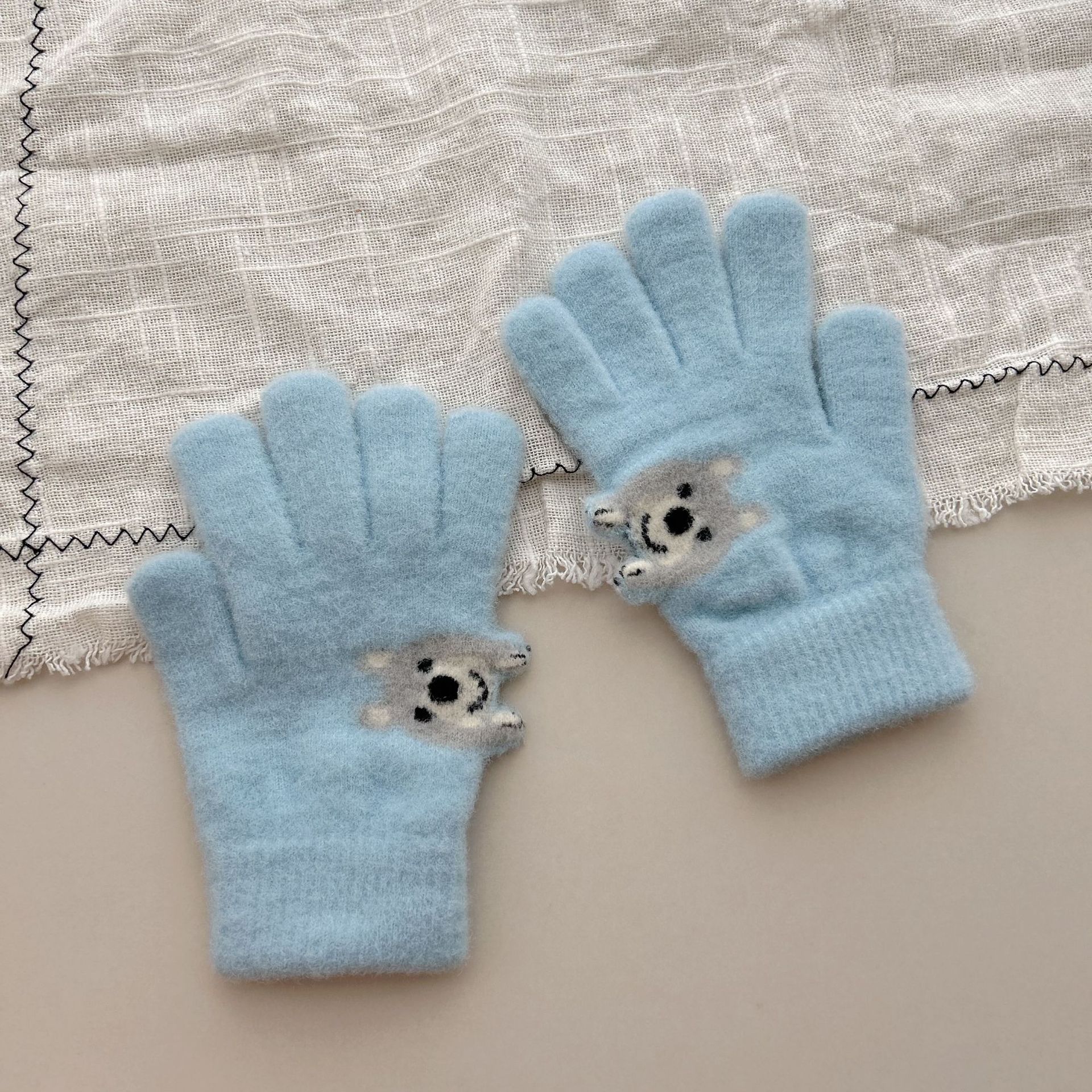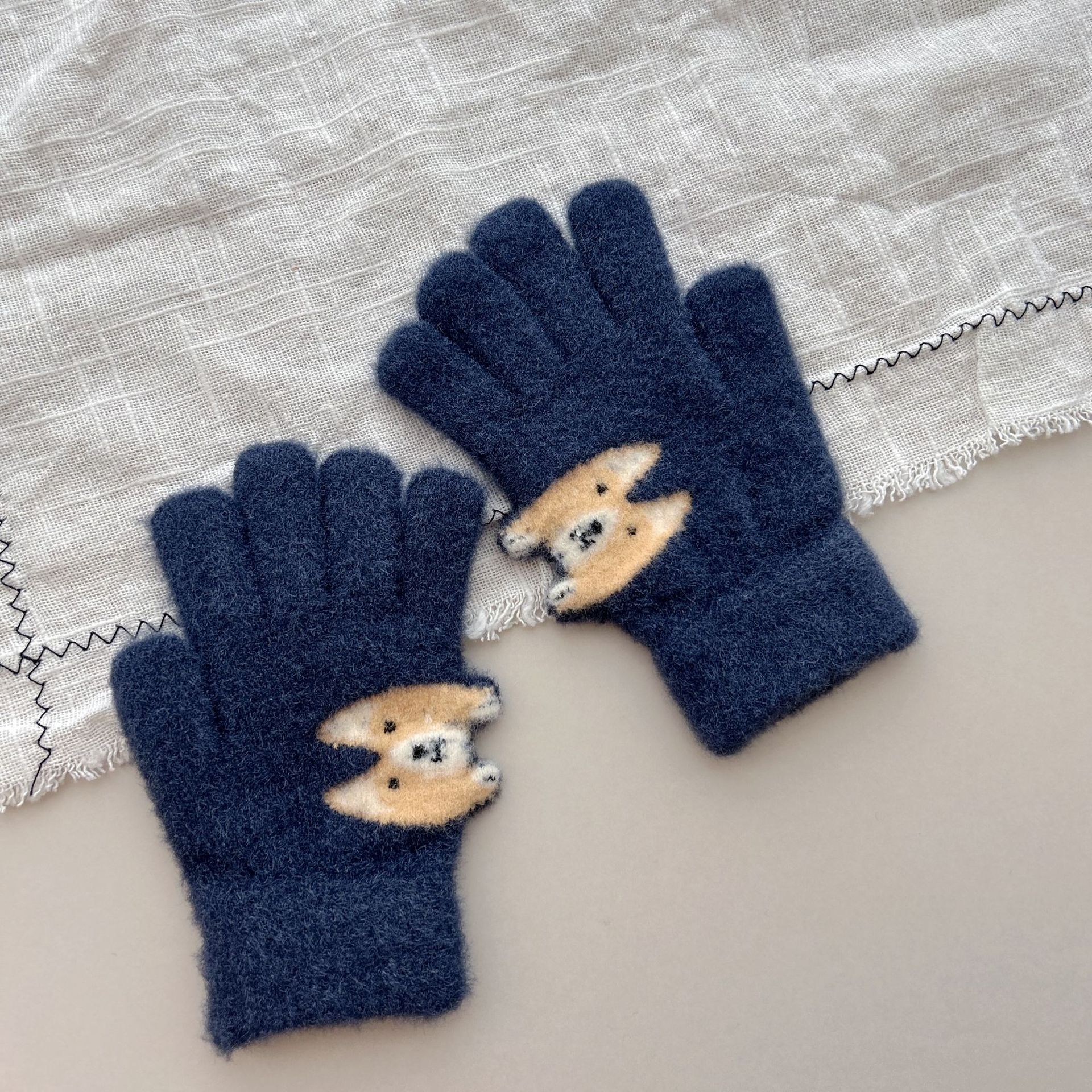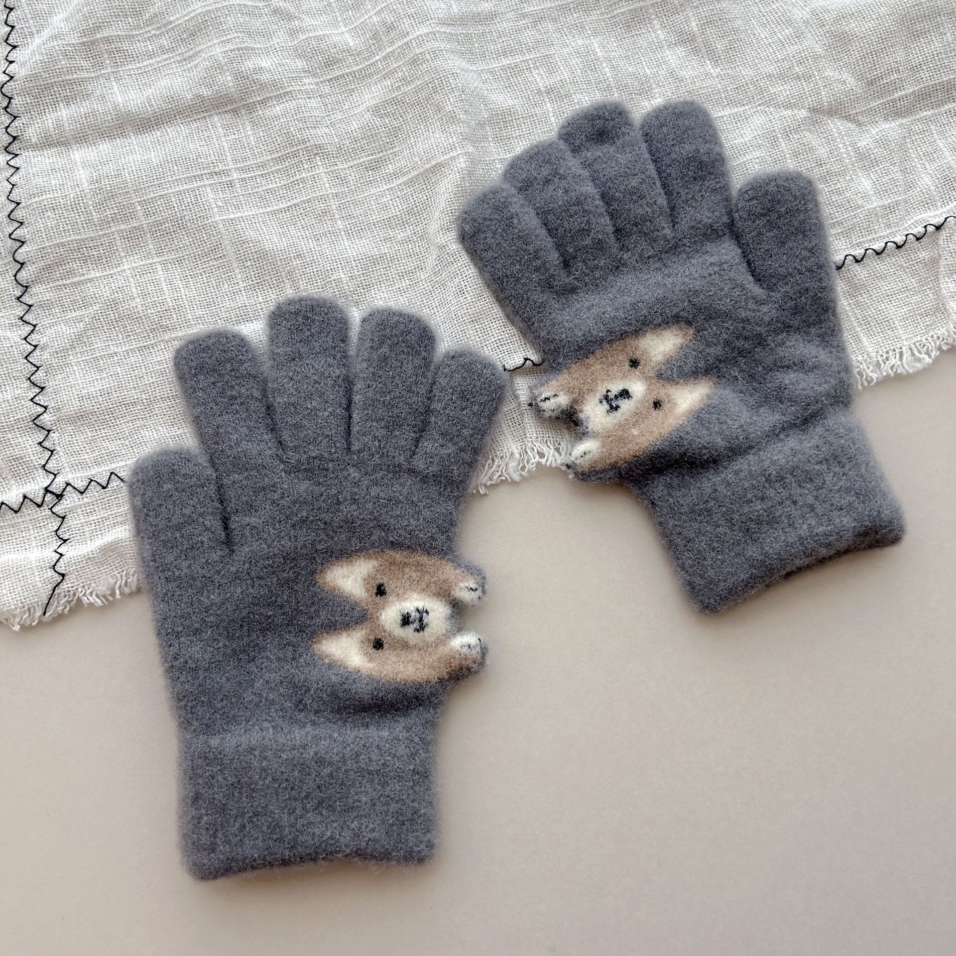 8-15儿童手套冬季男童女童宝宝针织毛线可爱小狗分指保暖手套批发