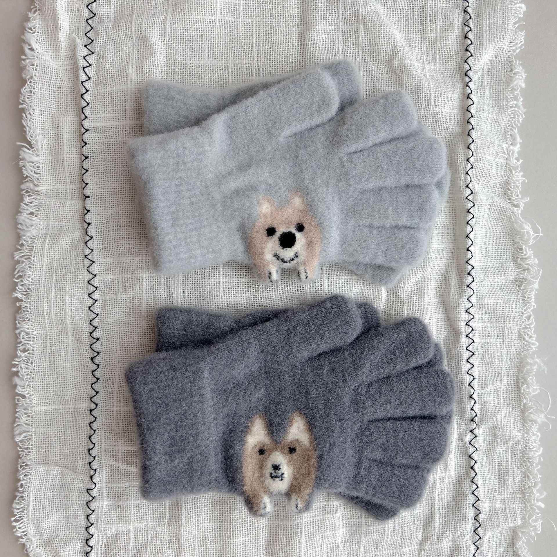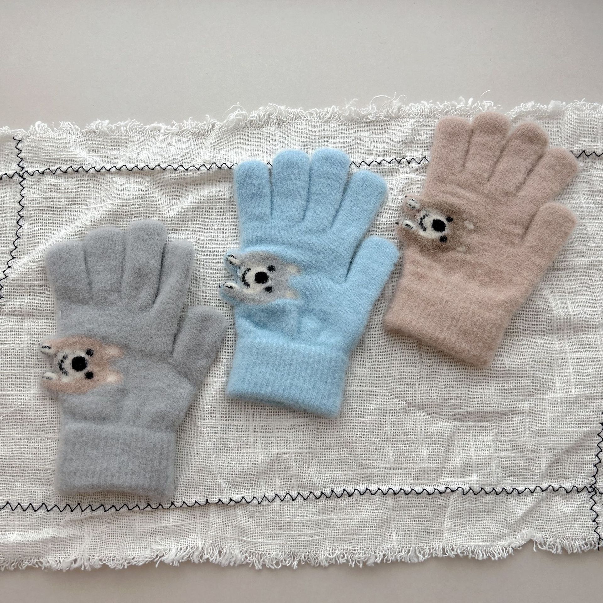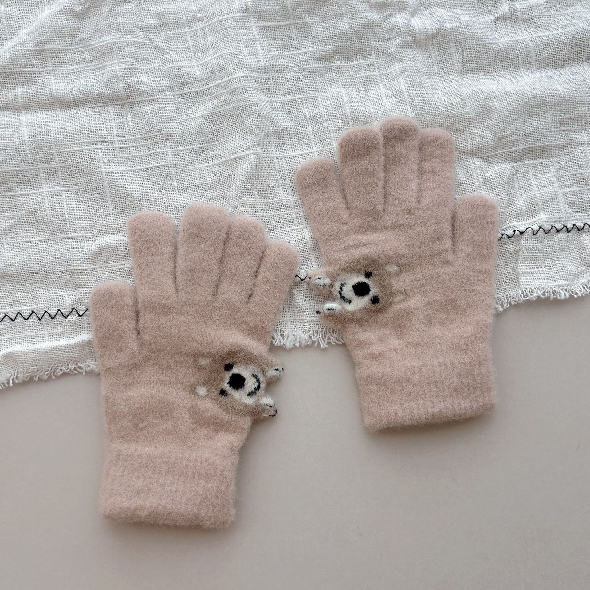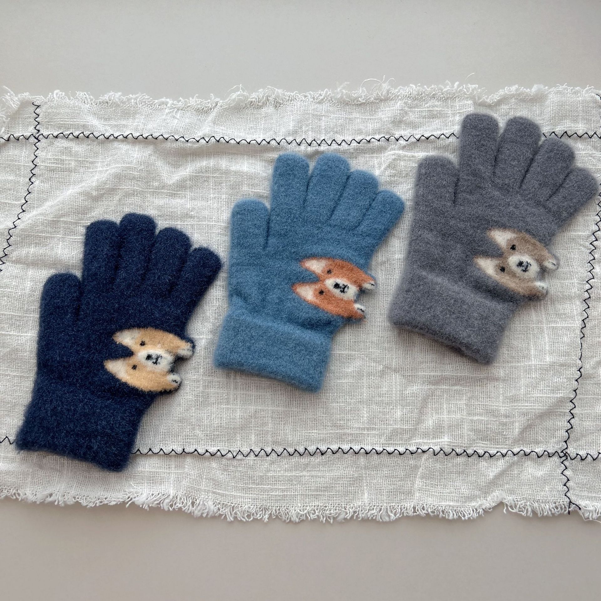8-15儿童手套冬季男童女童宝宝针织毛线可爱小狗分指保暖手套批发
