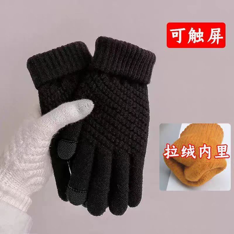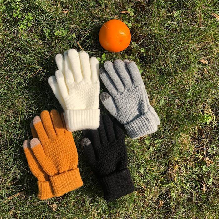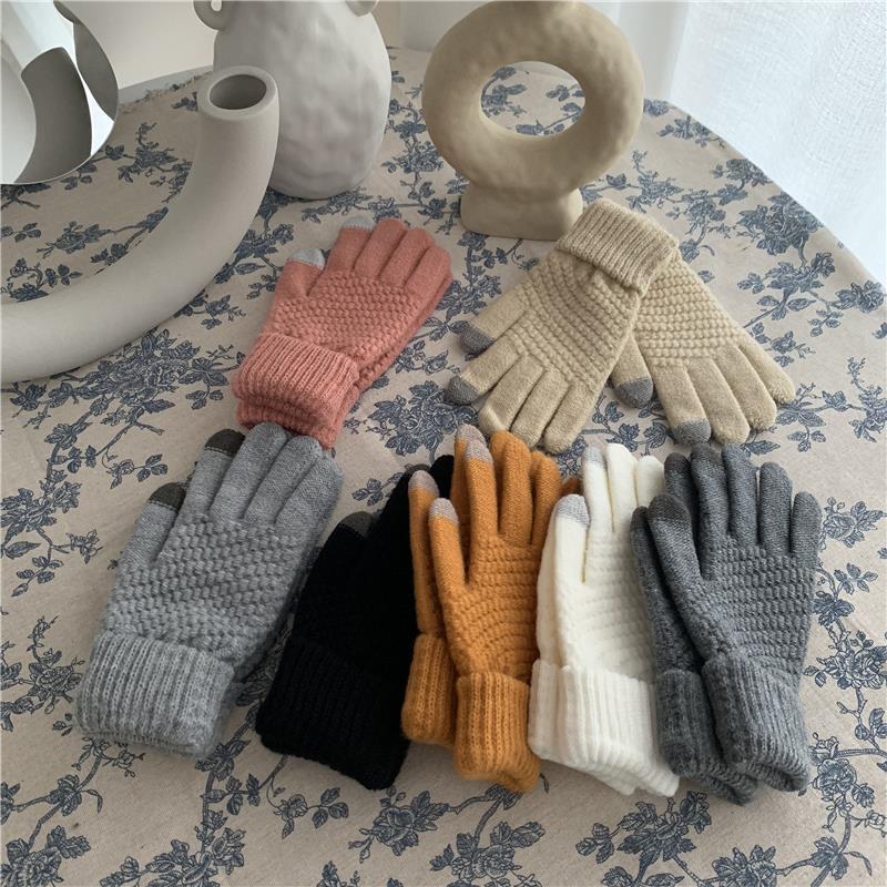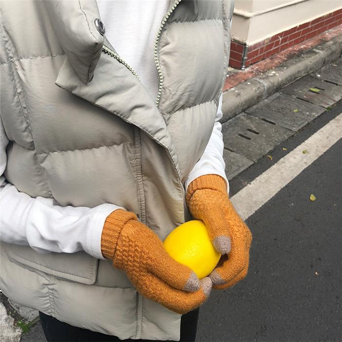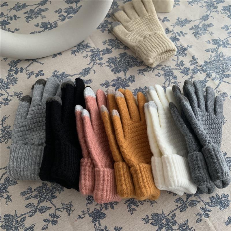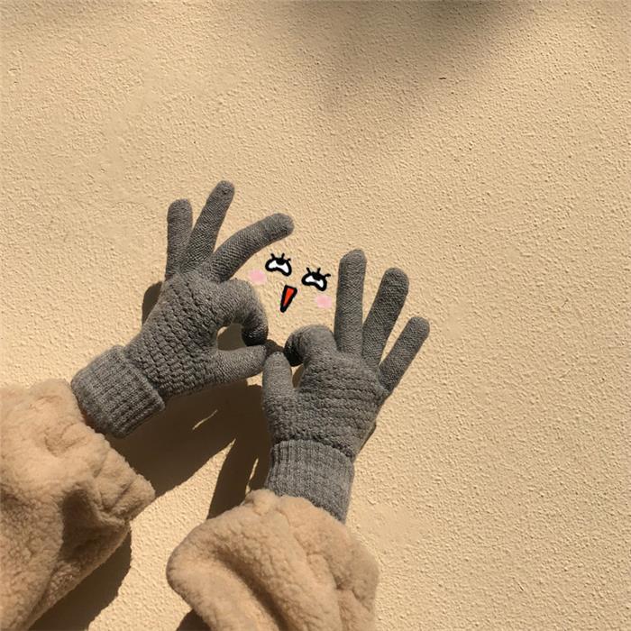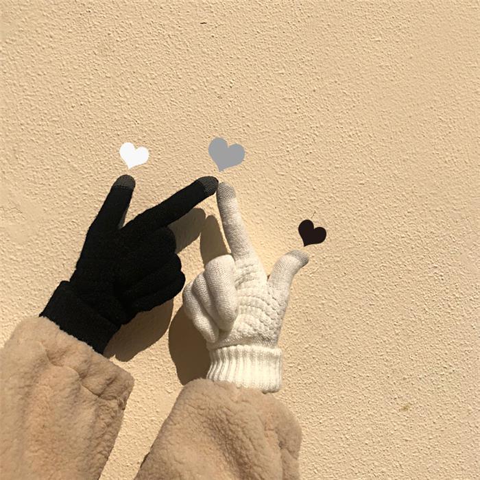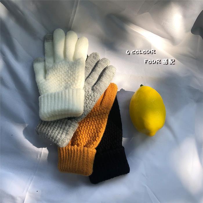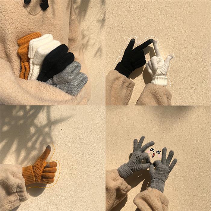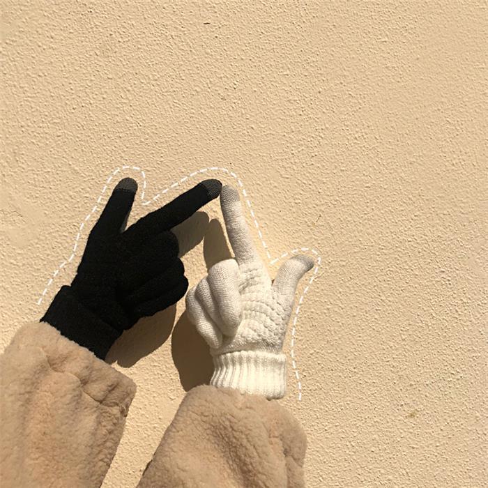 韩国ins冬季保暖学生针织加厚加绒骑行拼色防寒五指触屏手套女