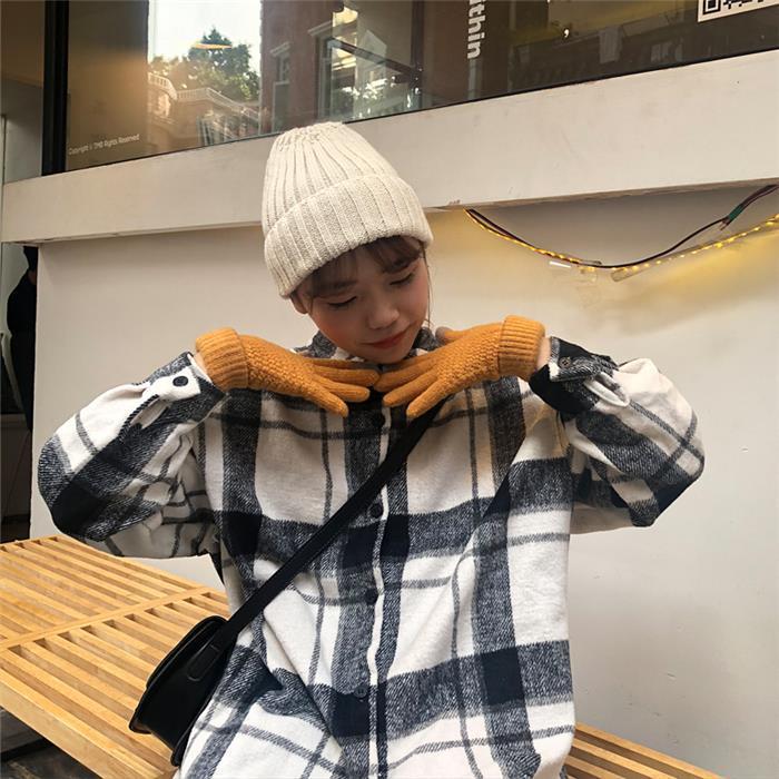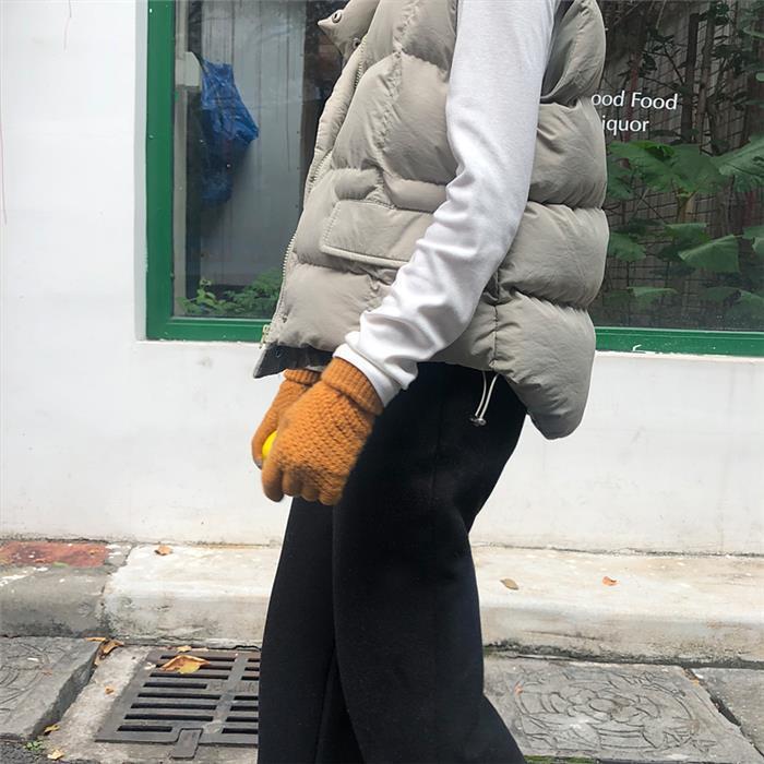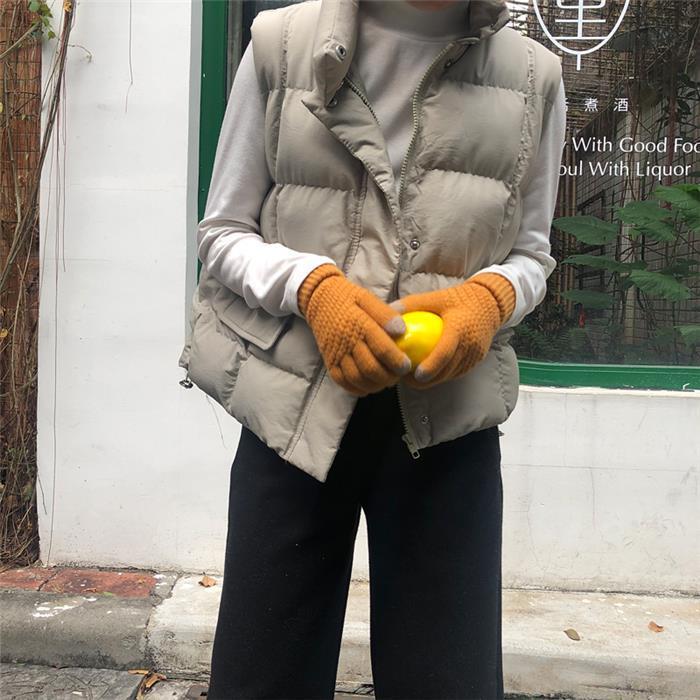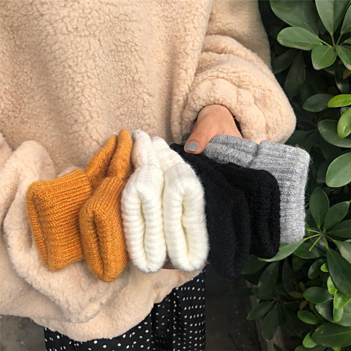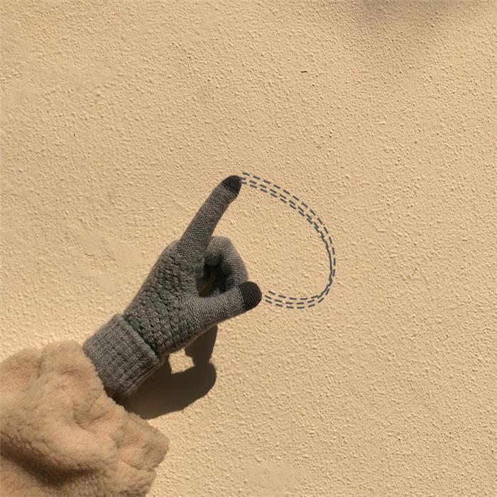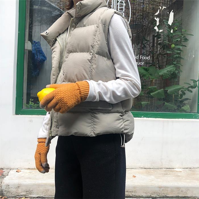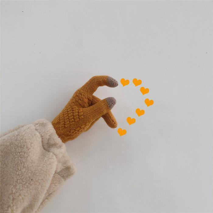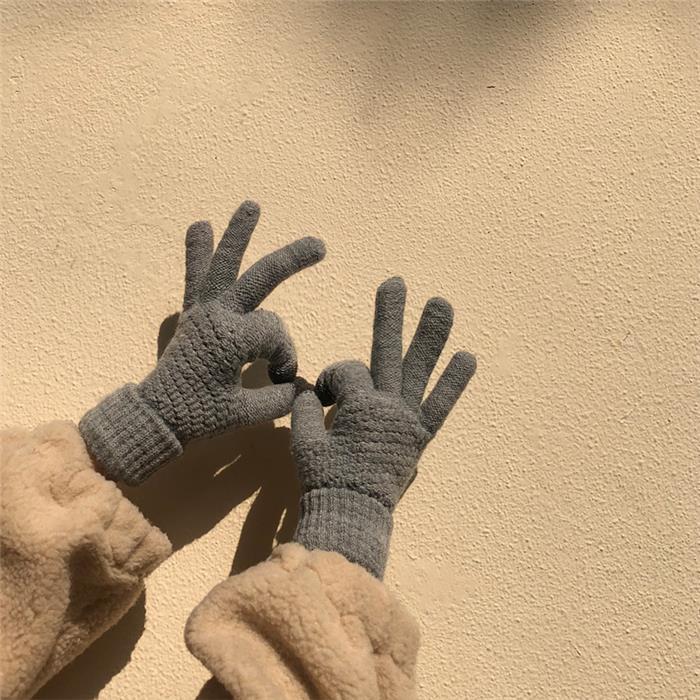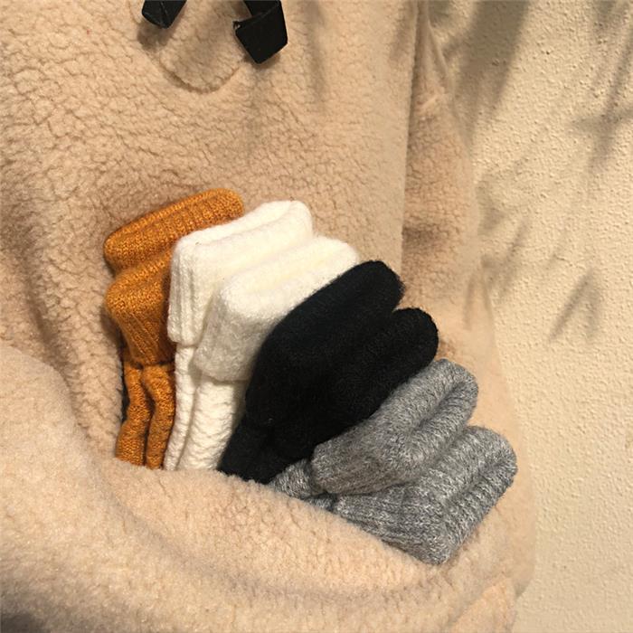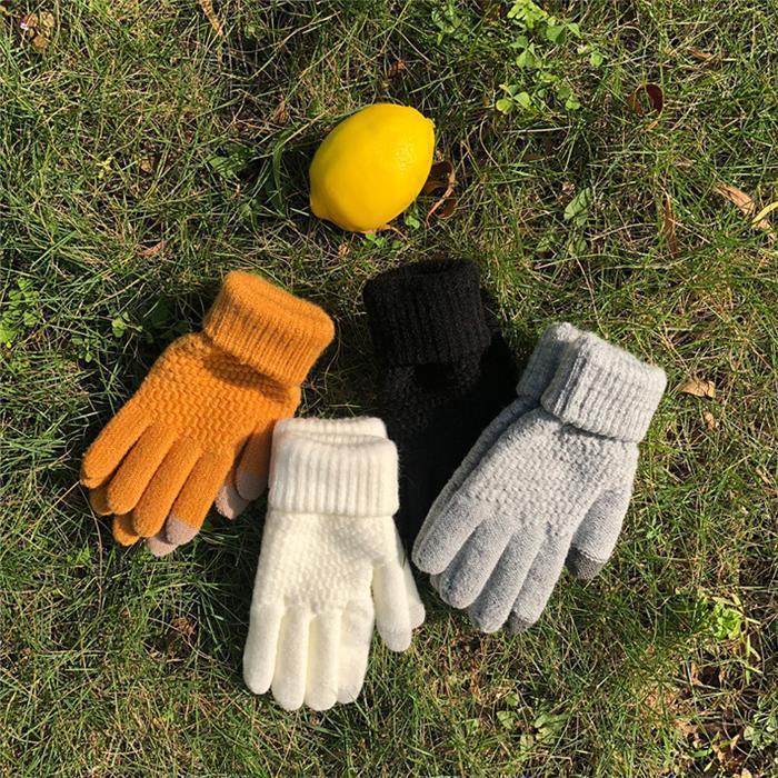 韩国ins冬季保暖学生针织加厚加绒骑行拼色防寒五指触屏手套女
