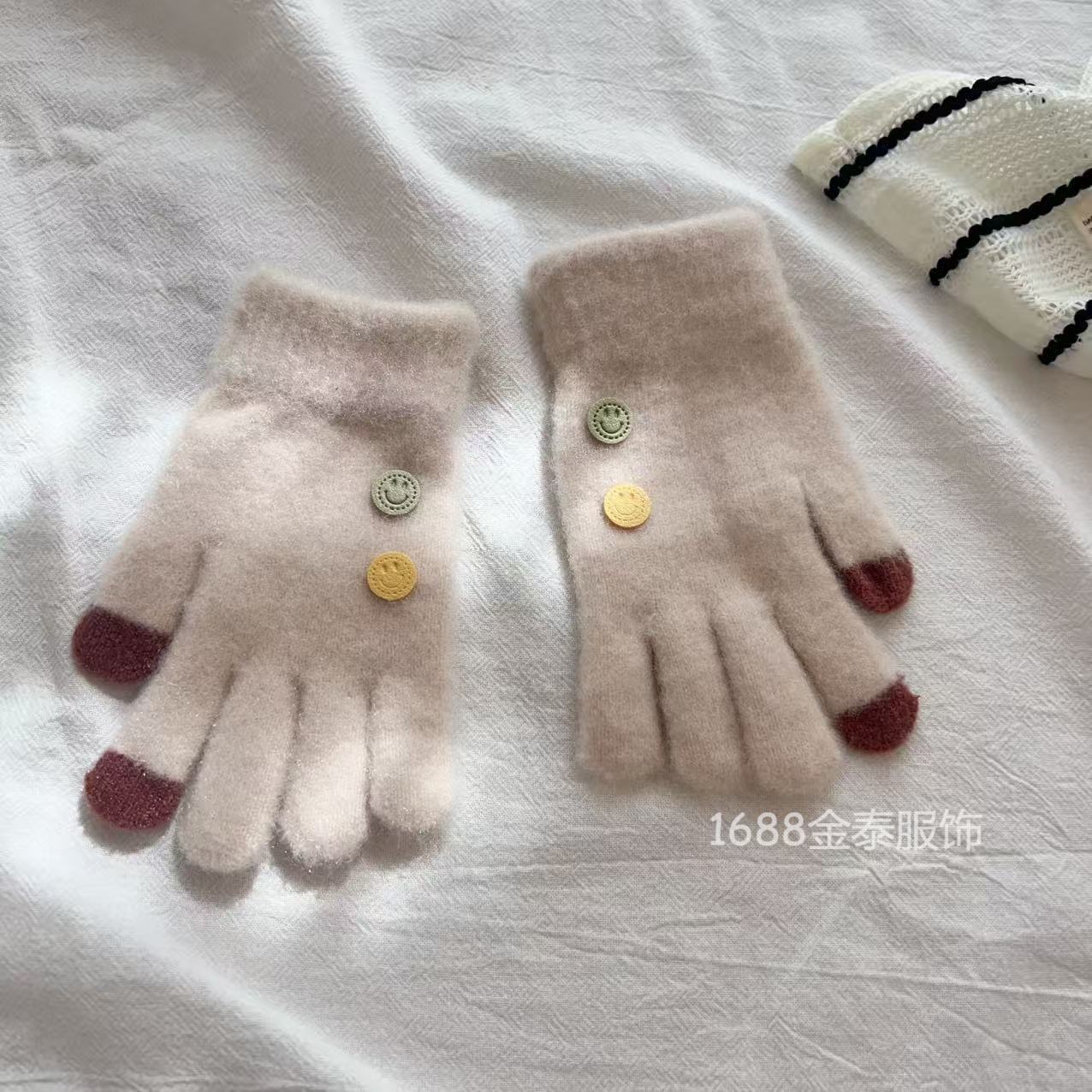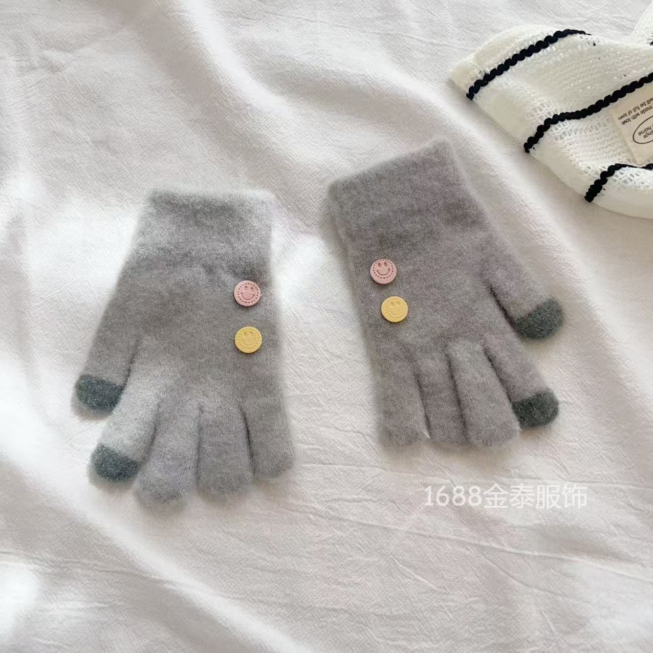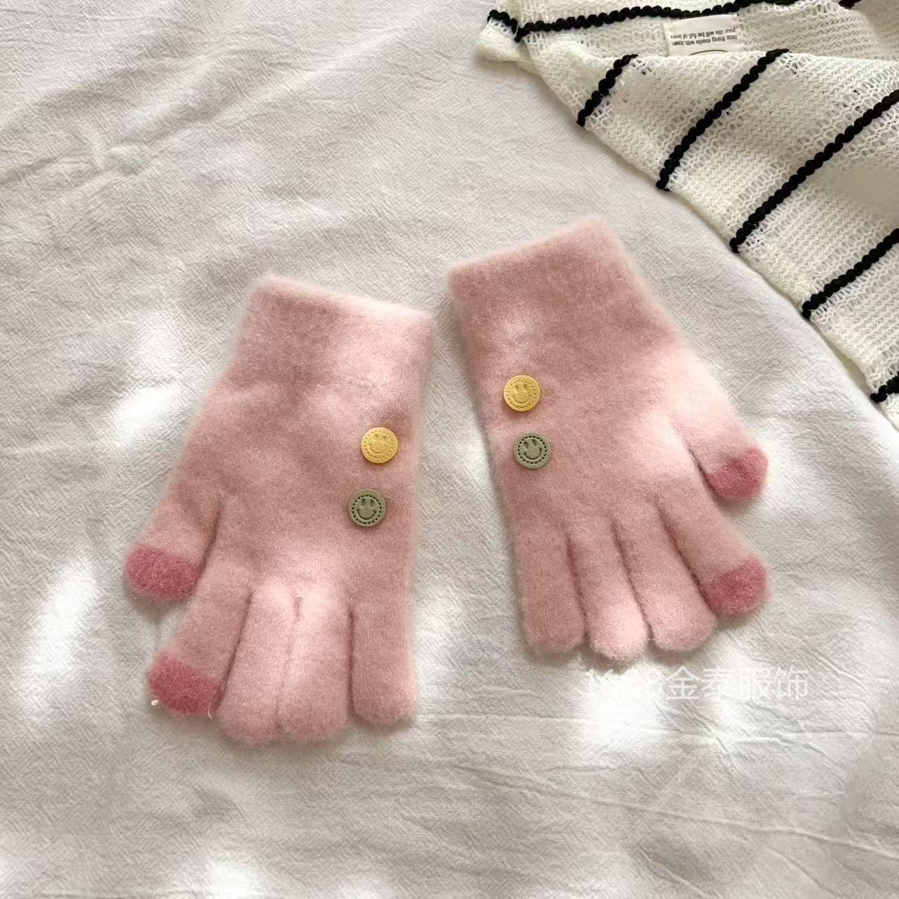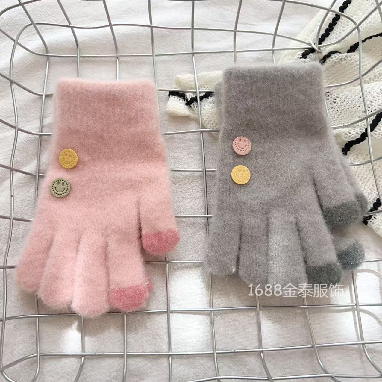 7-12岁儿童纽扣五指保暖韩版笑脸宝宝毛线男女童学生防寒针织手套