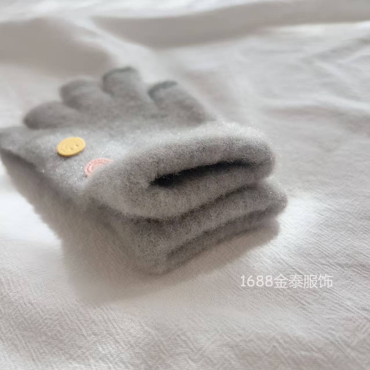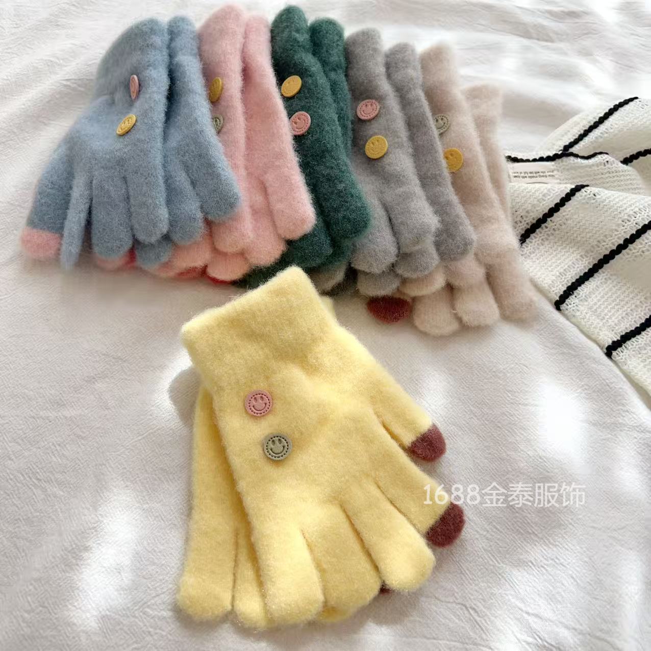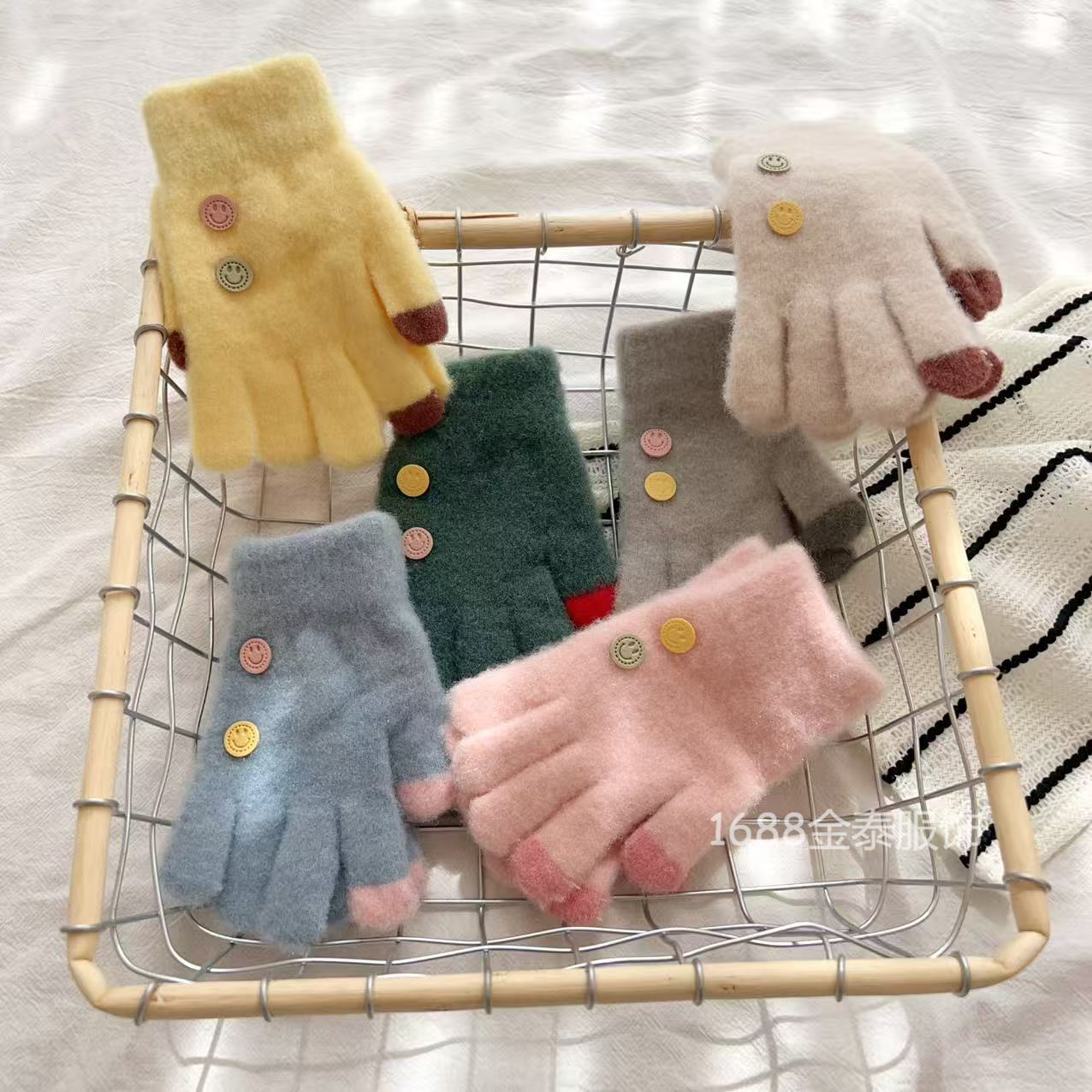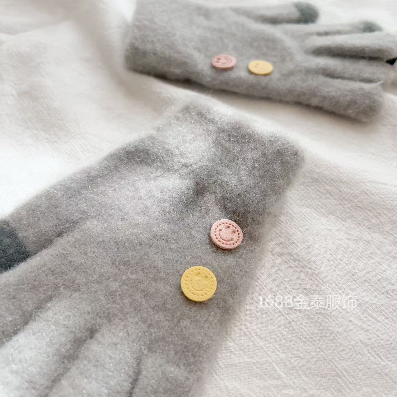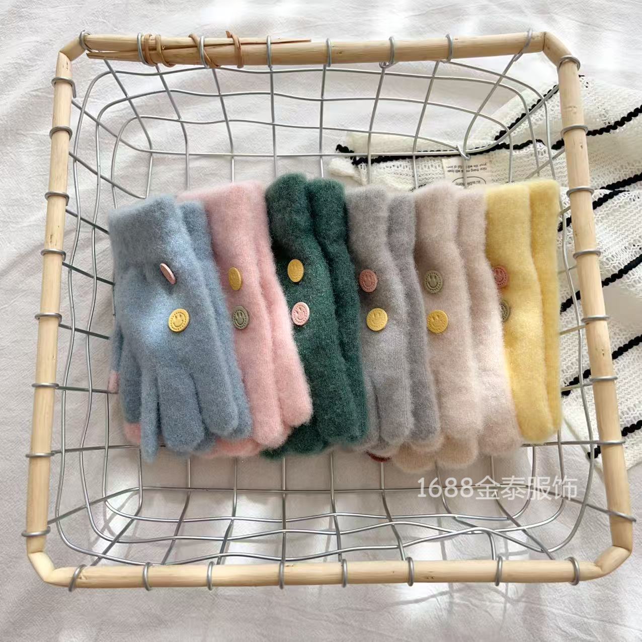 7-12岁儿童纽扣五指保暖韩版笑脸宝宝毛线男女童学生防寒针织手套