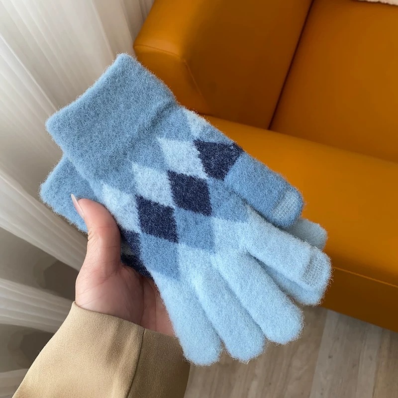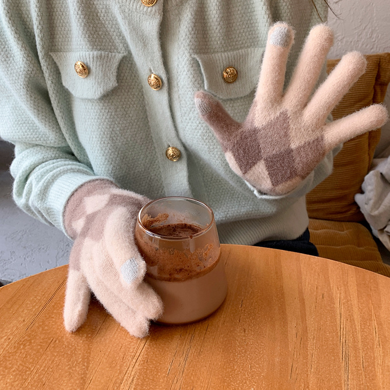 毛线保暖手套女秋冬季触屏骑行可爱冬天骑车学生五指加绒ins针织