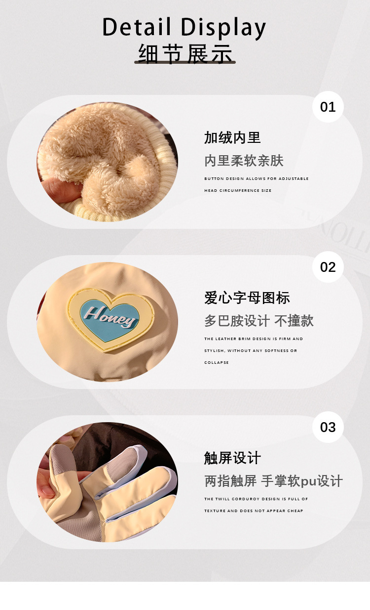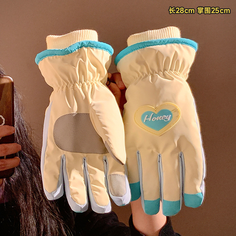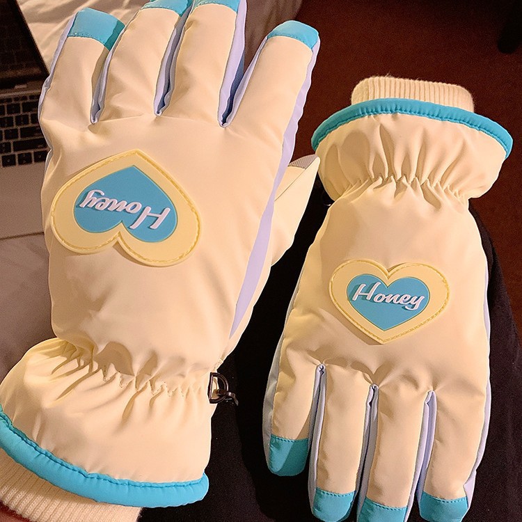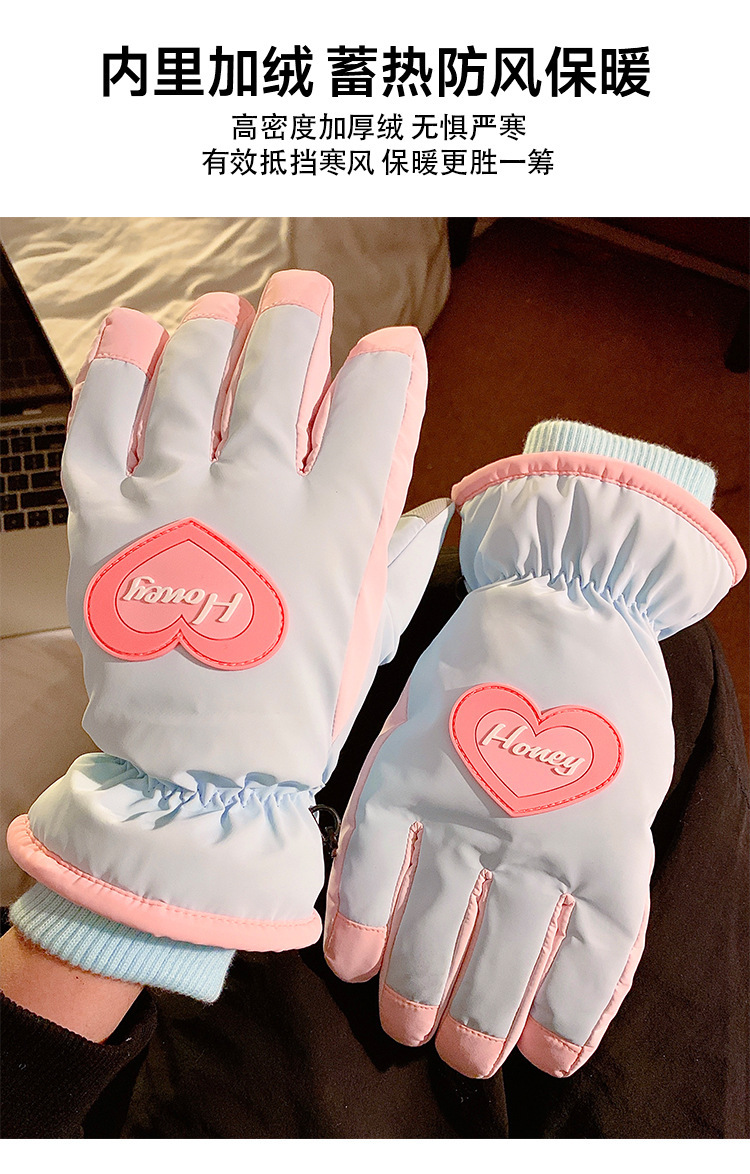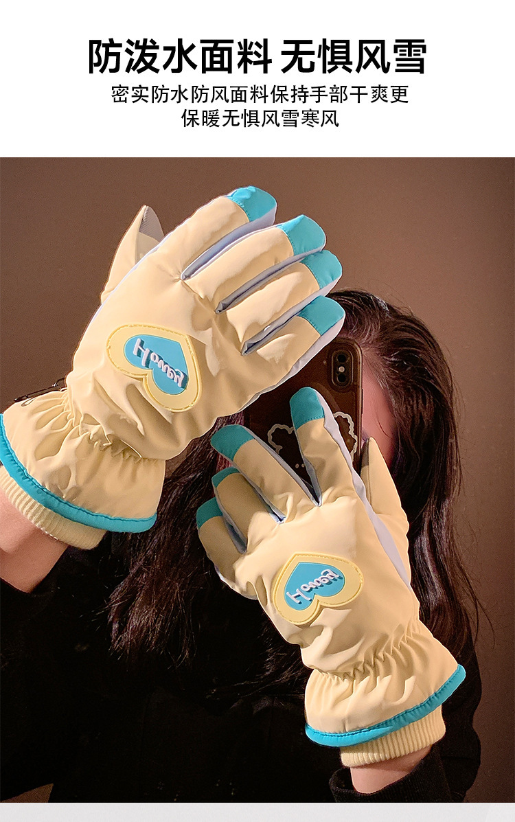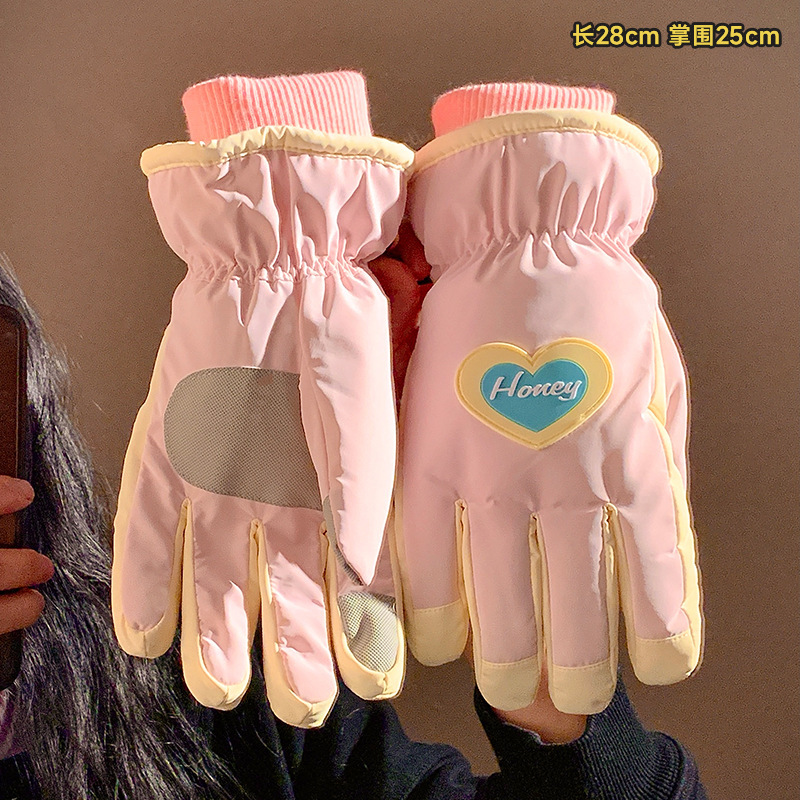 可爱爱心骑行全指触屏手套女士冬季保暖加绒滑雪防水防寒骑电动车