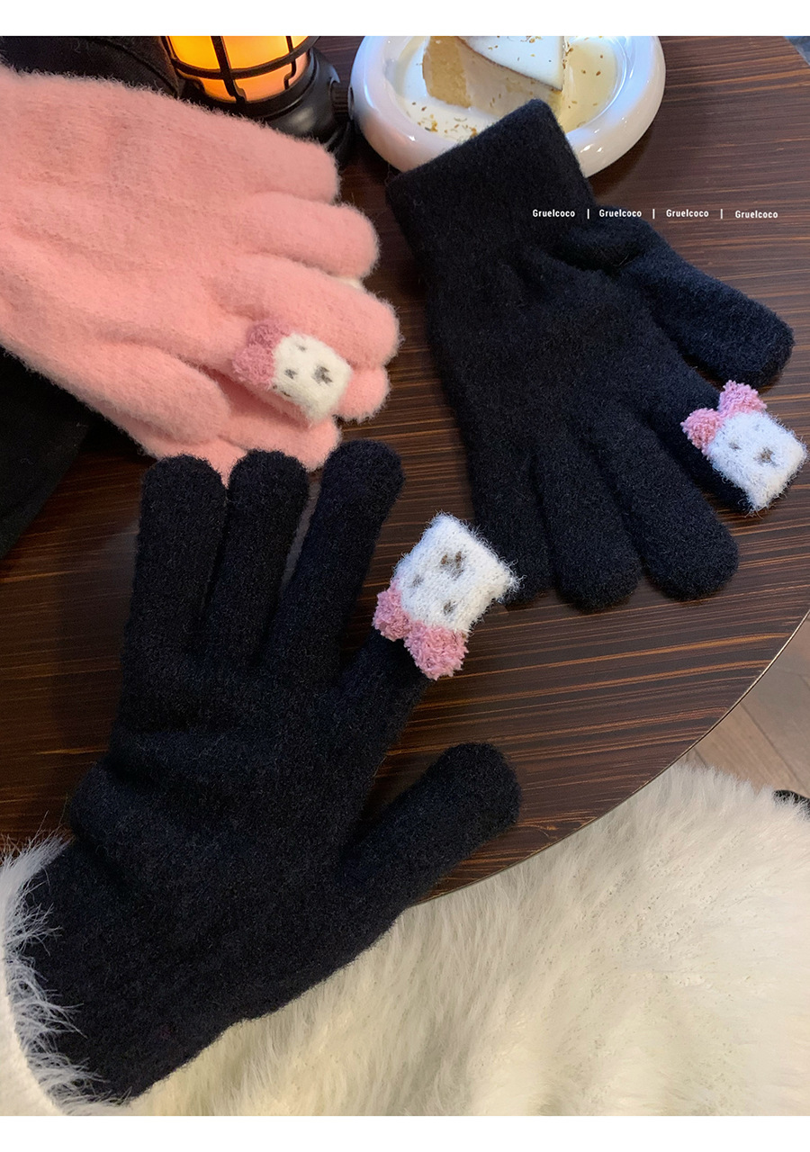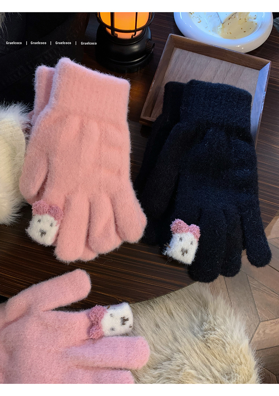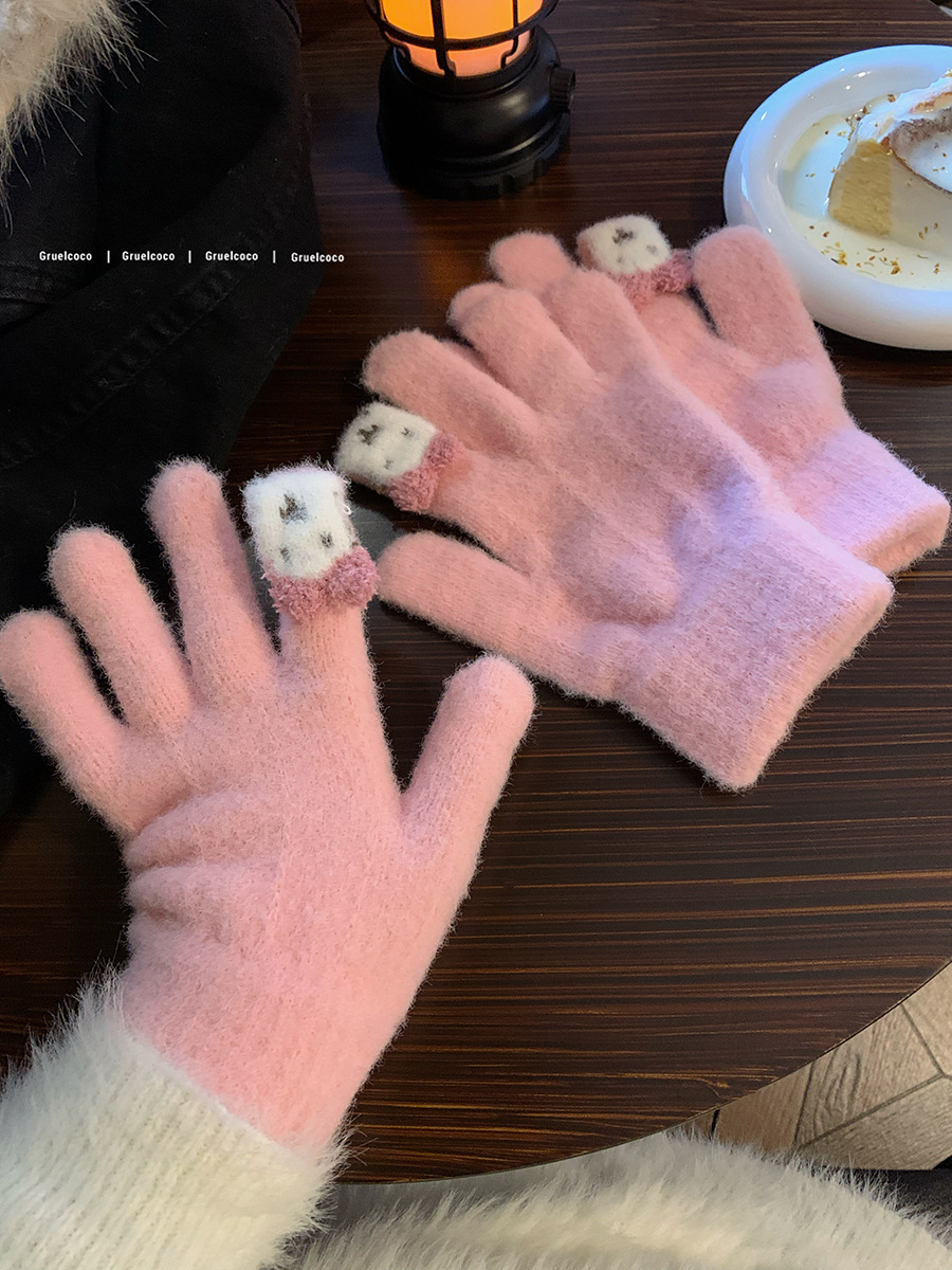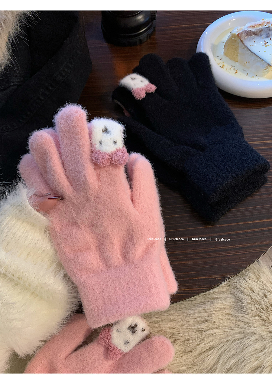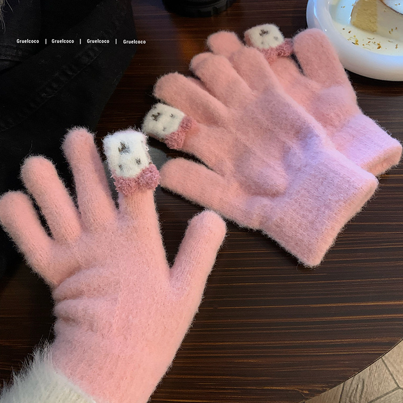 保暖手套女冬季可爱小兔纯色毛线针织分指防寒骑行户外可触屏学生