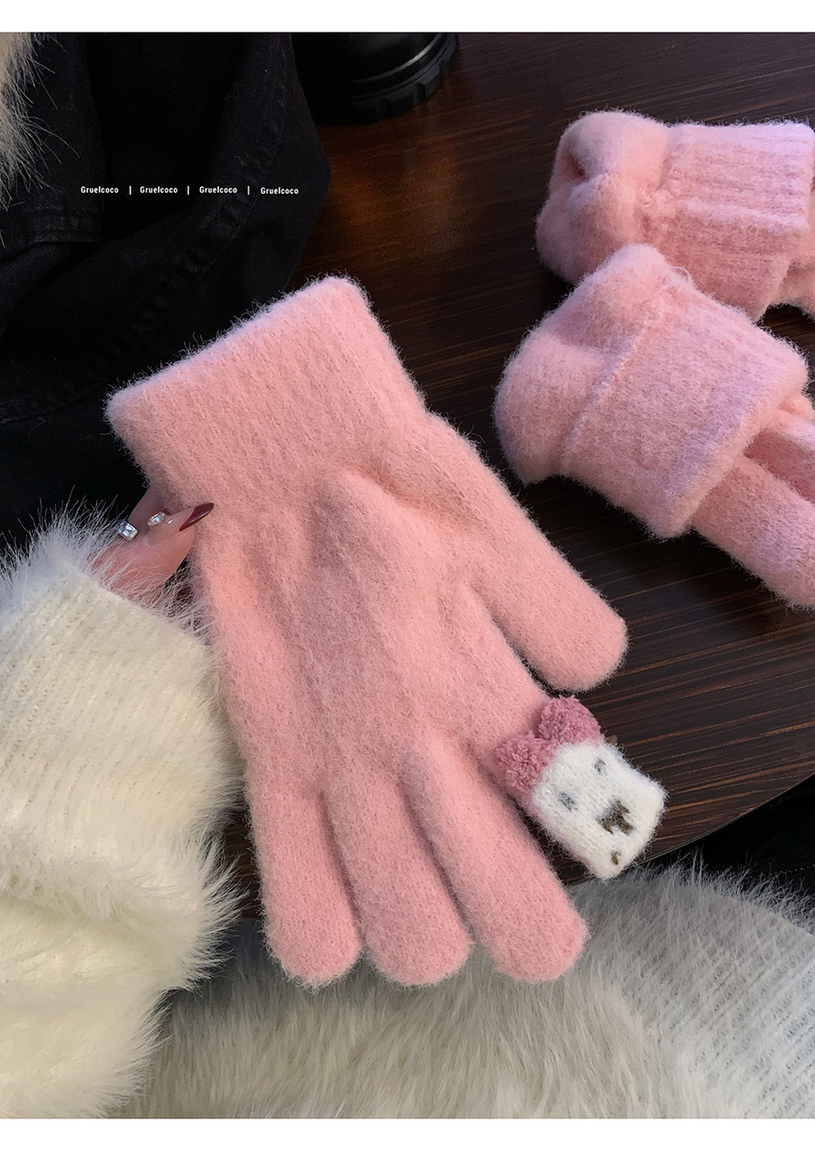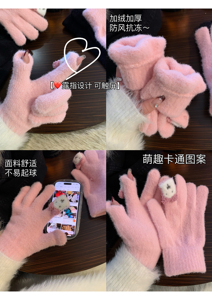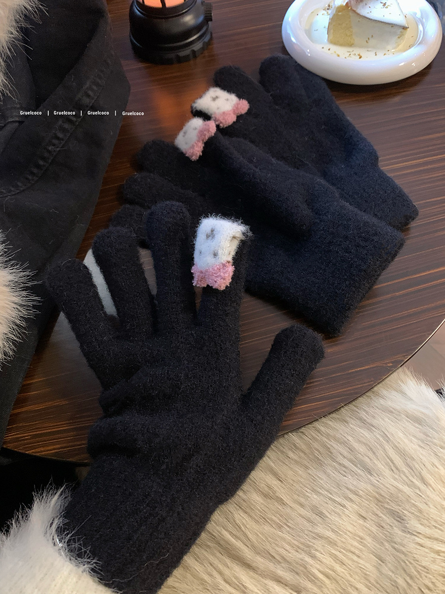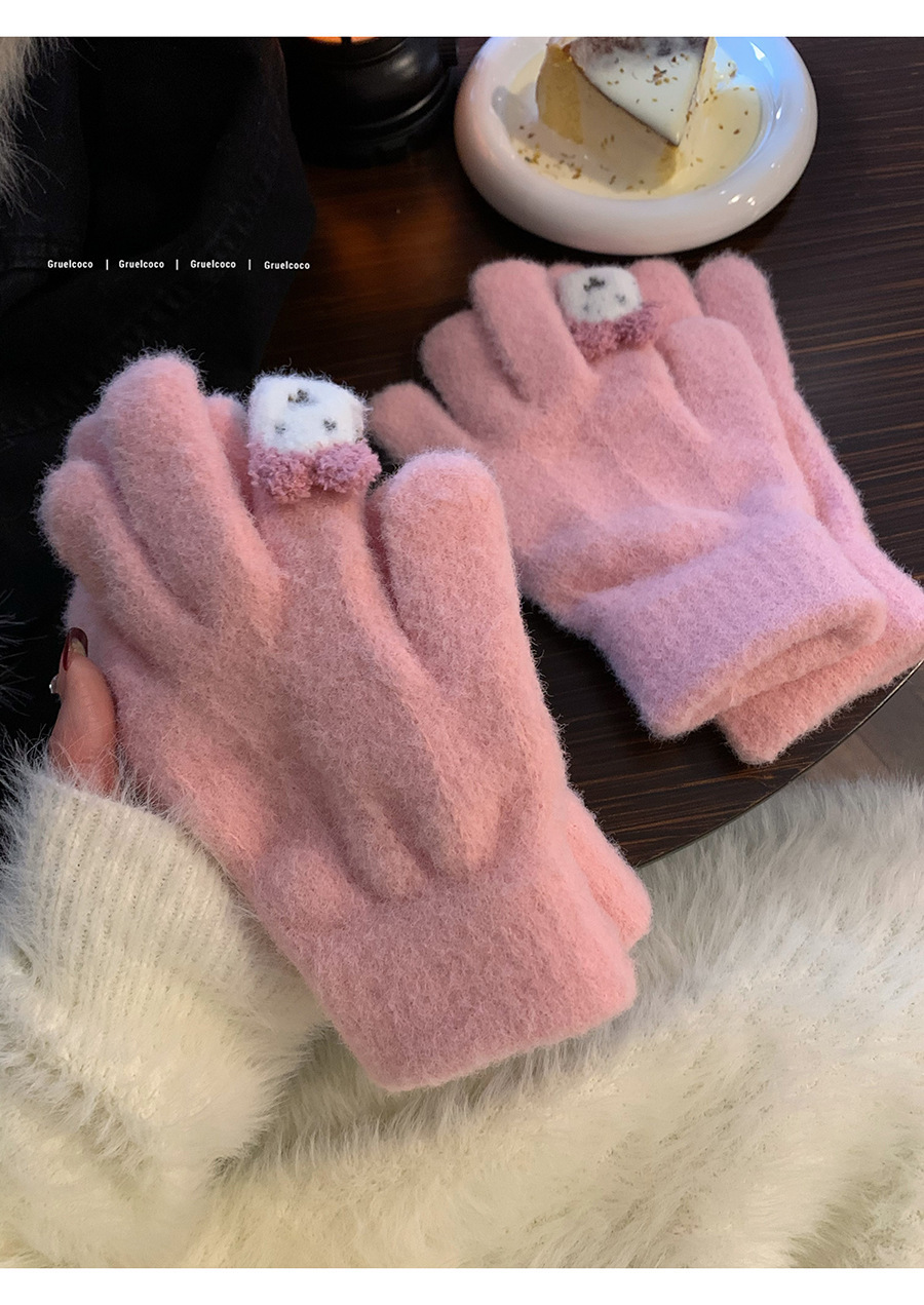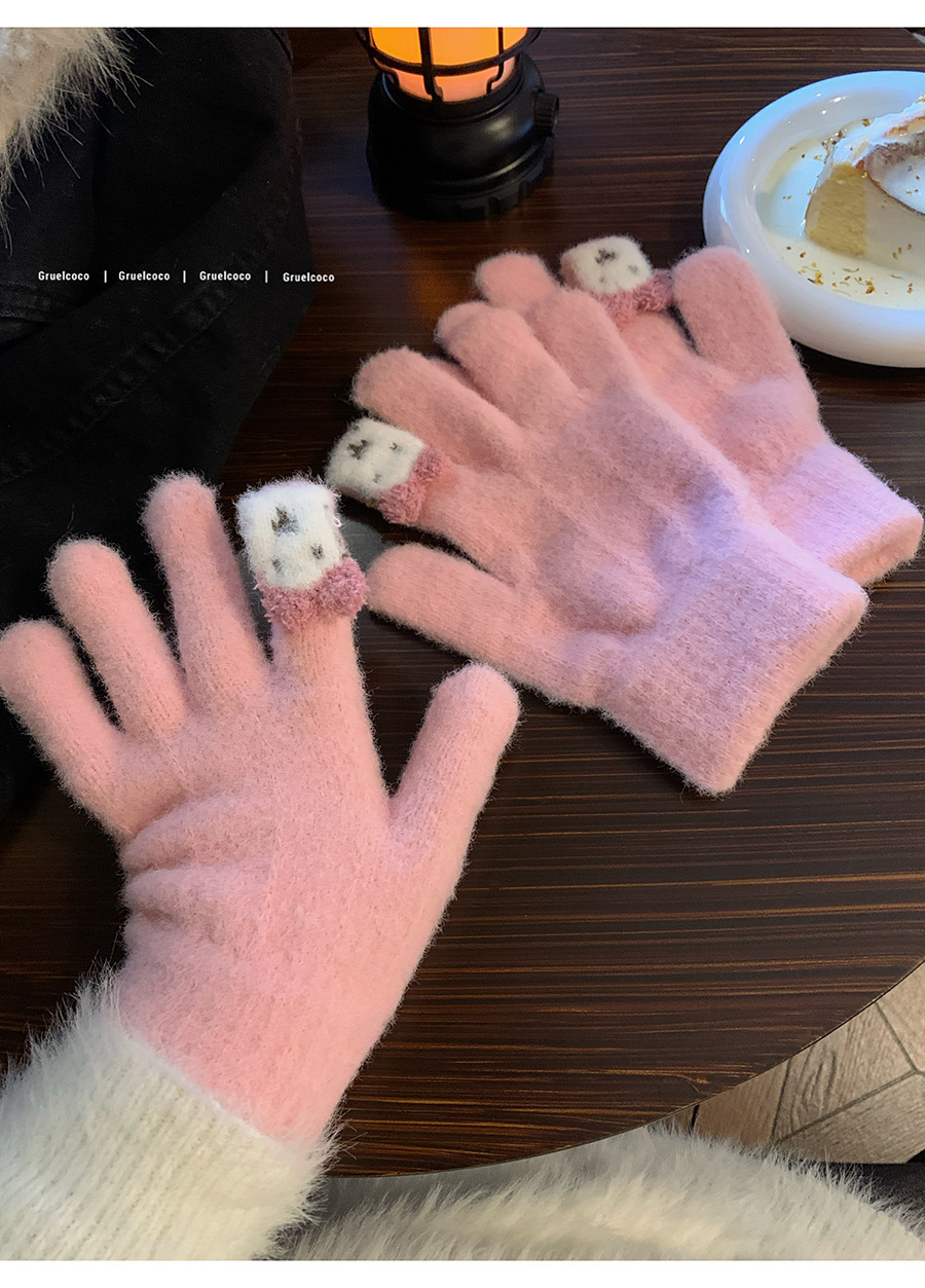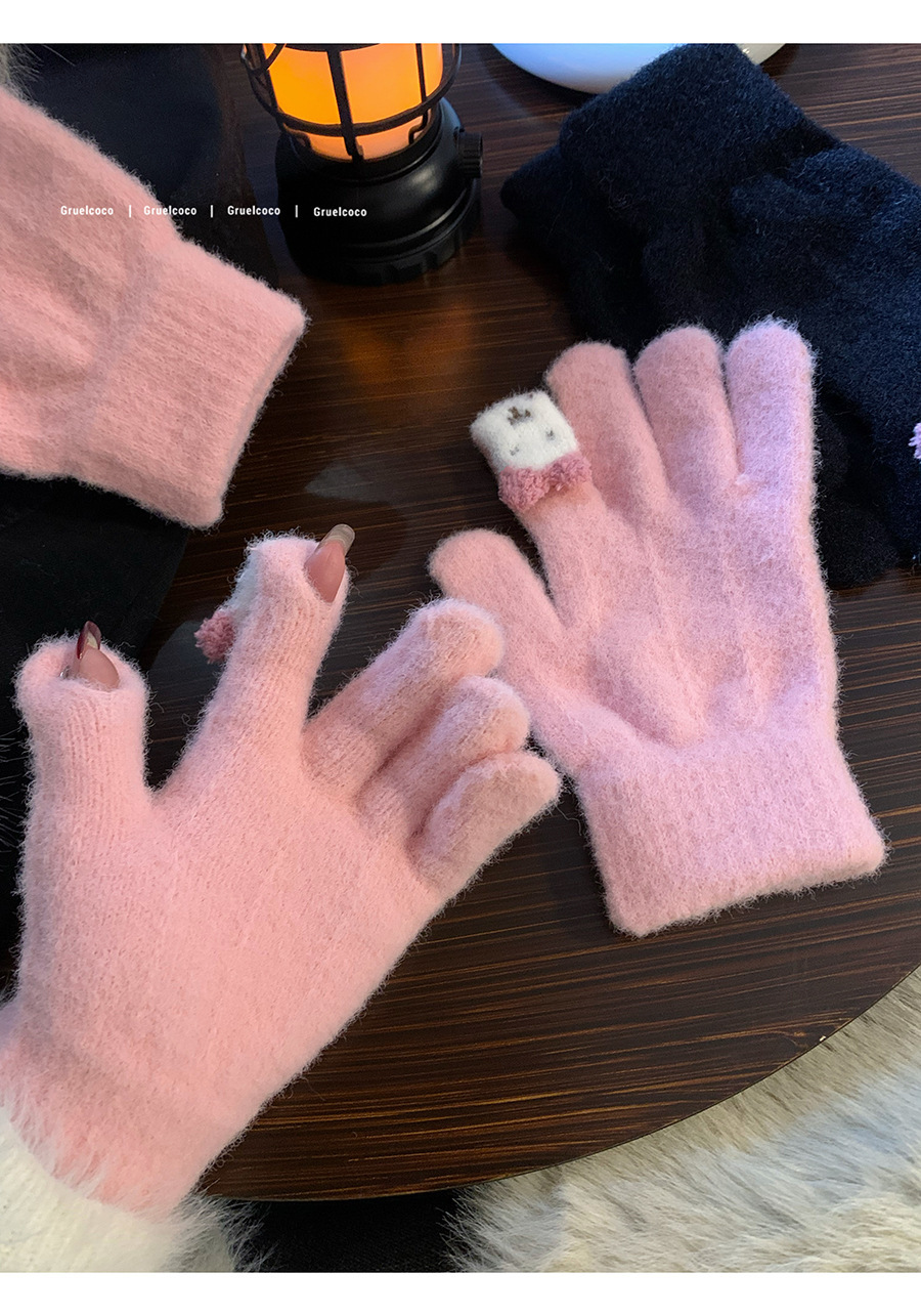 保暖手套女冬季可爱小兔纯色毛线针织分指防寒骑行户外可触屏学生