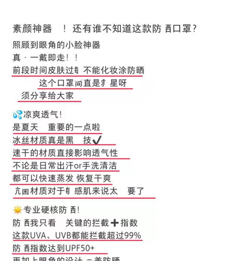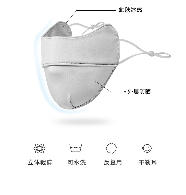 防晒口罩女锦纶夏季遮阳薄款透气冰丝凉感全脸防紫外线护眼角面罩