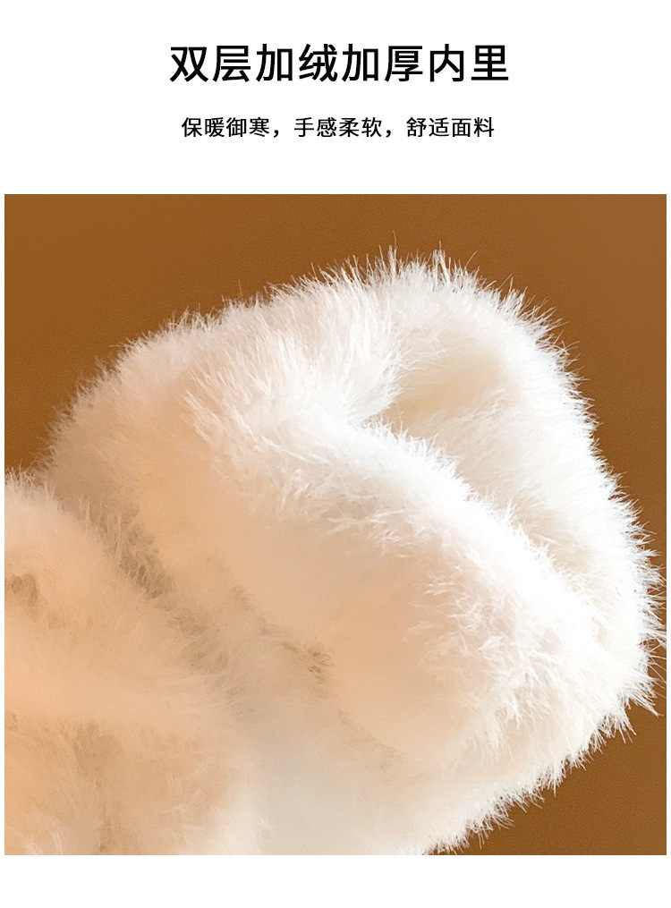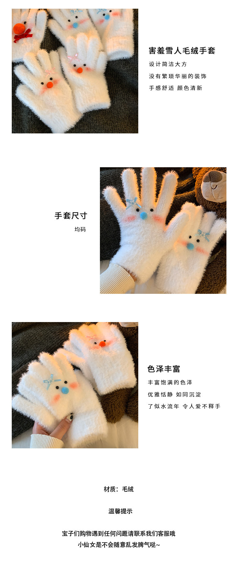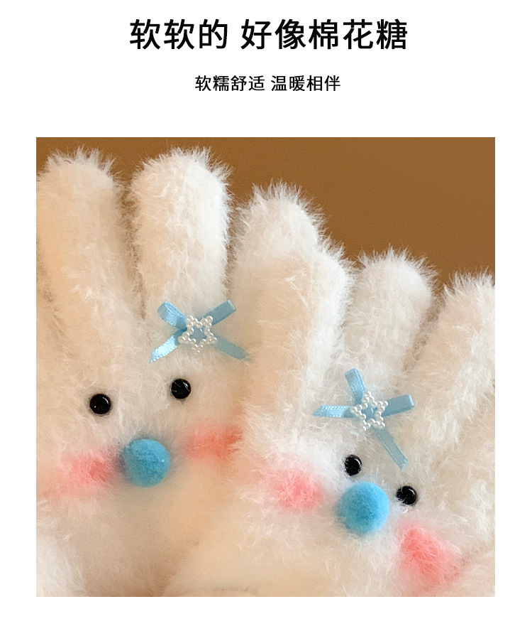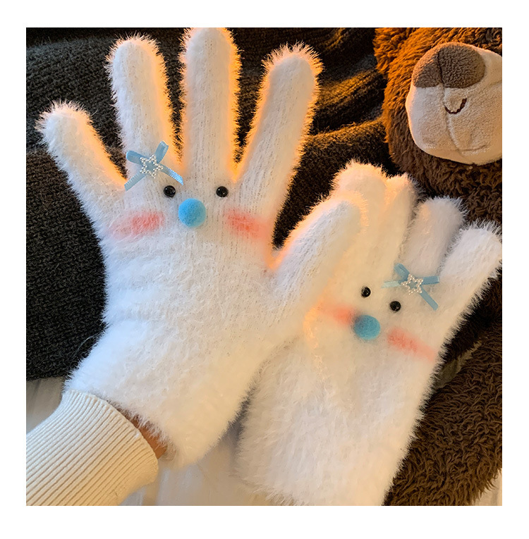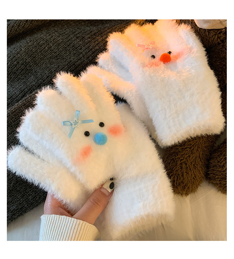 【白色雪人】蝴蝶结毛绒针织手套女冬季加绒保暖防寒防风学生骑行