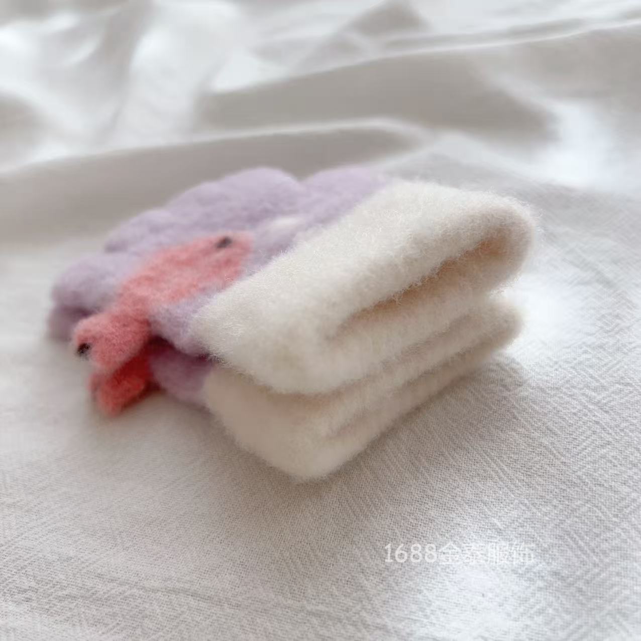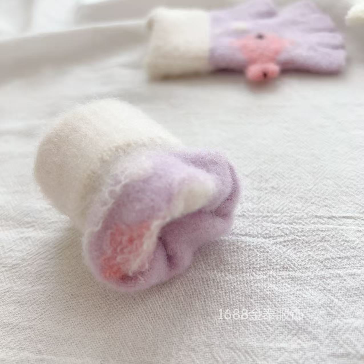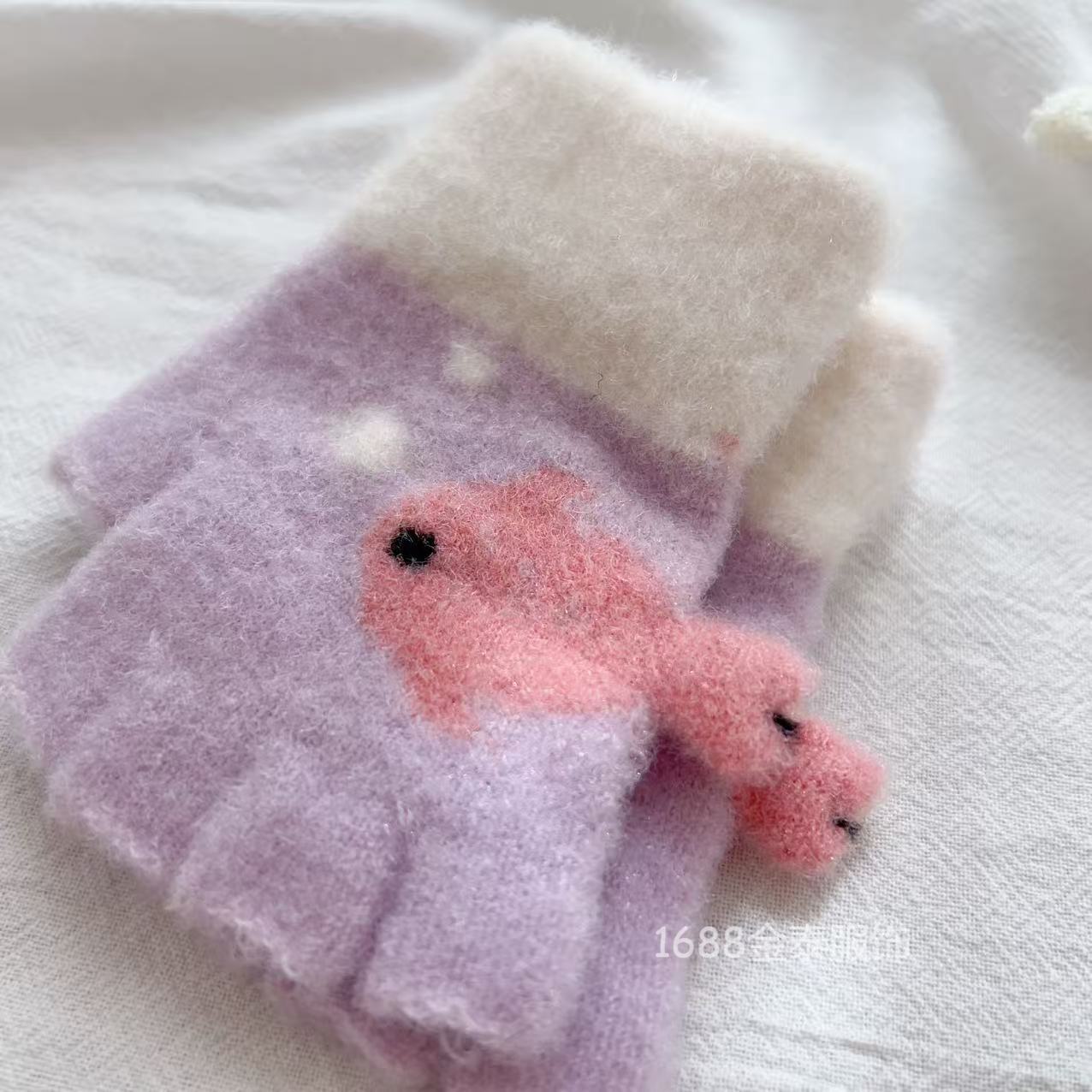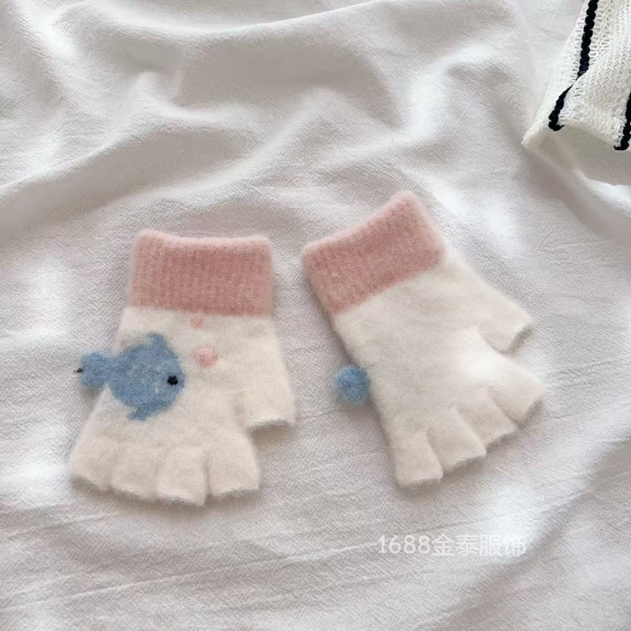 2.-6岁可爱小鱼手套冬季保暖宝宝半指卡通男童分指针织拼色手套批