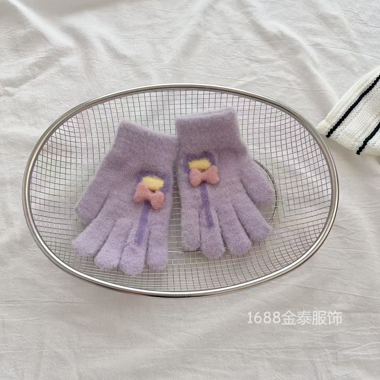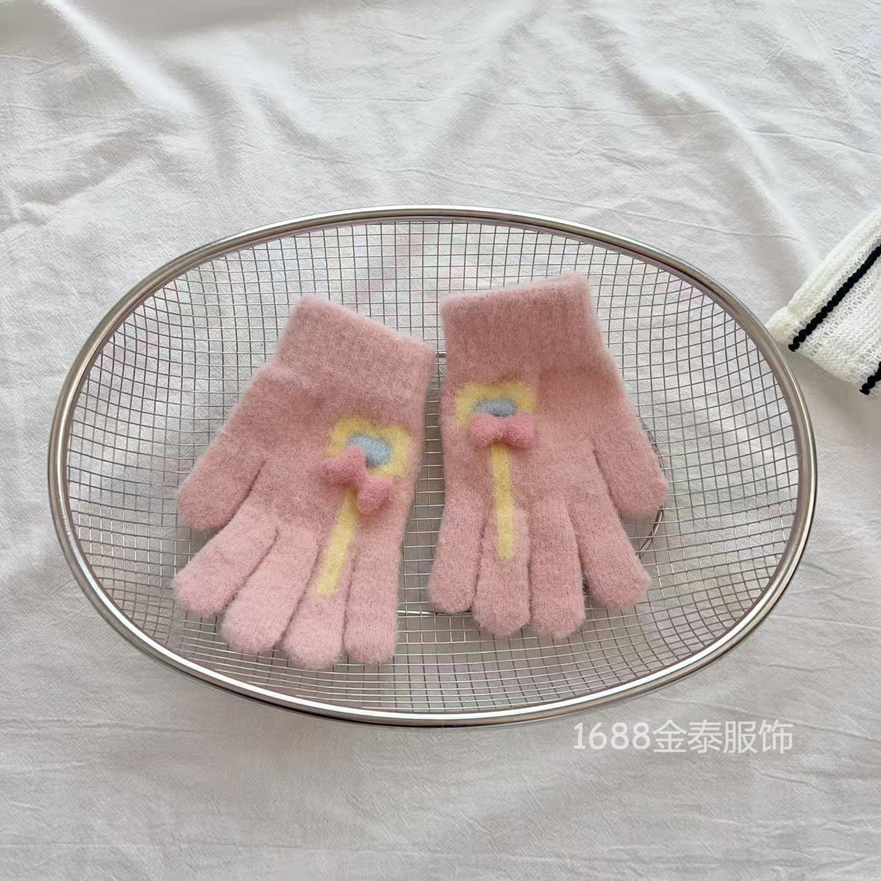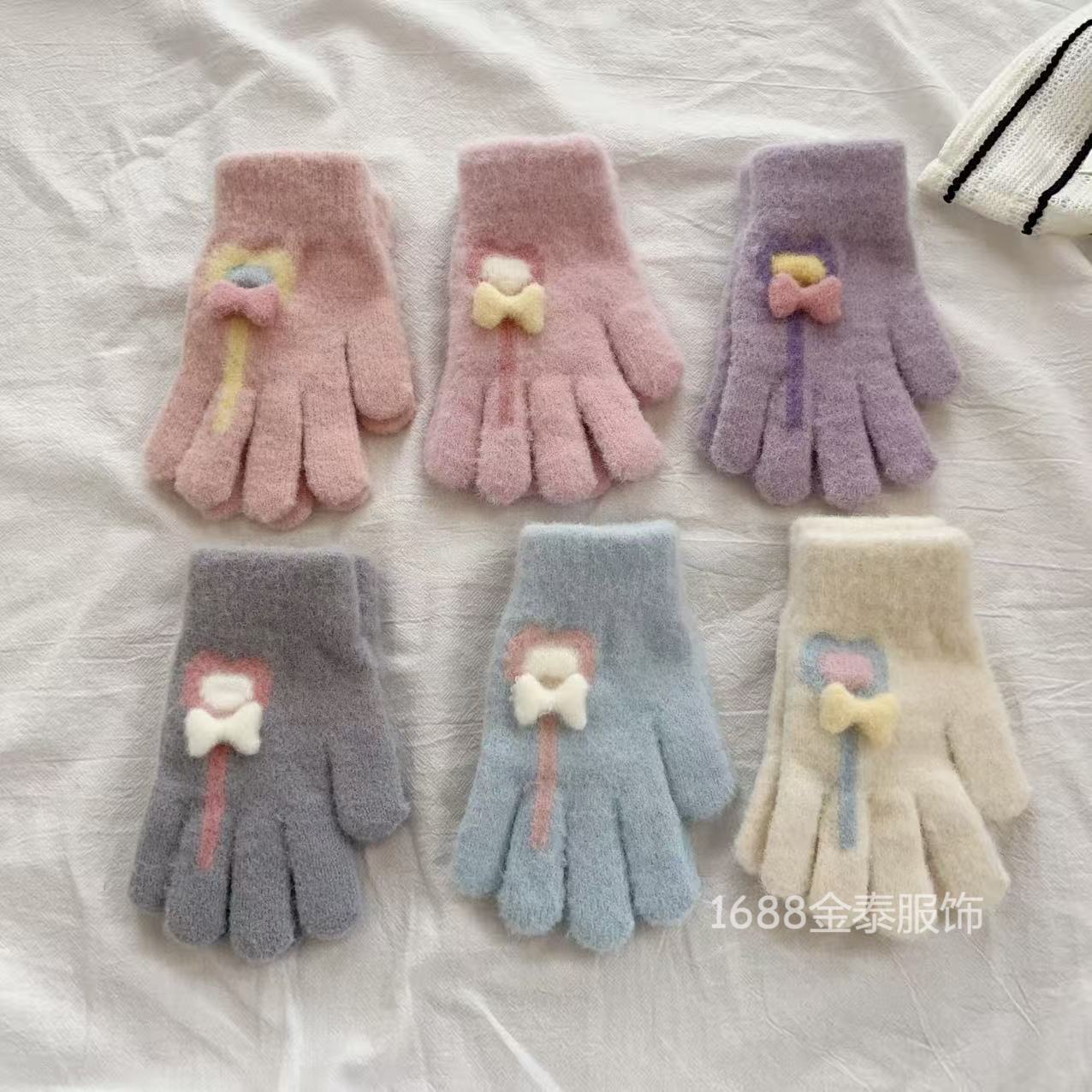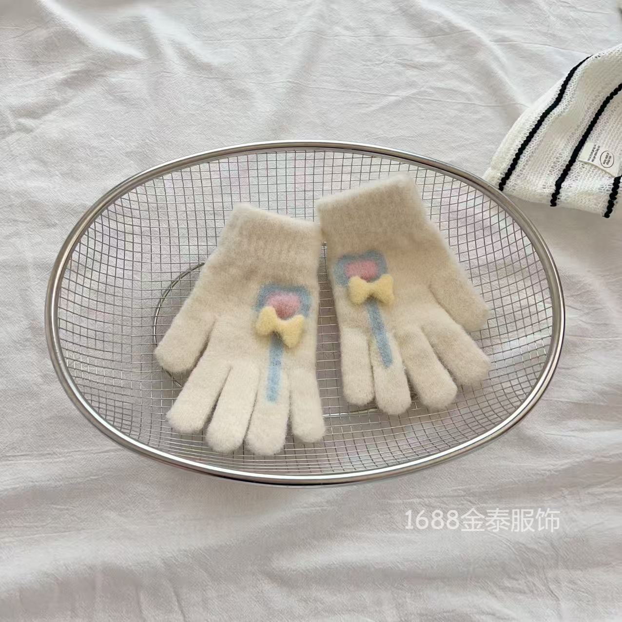 7-12岁儿童手套秋冬季保暖爱心棒棒糖分指五指手套女童加绒加厚批