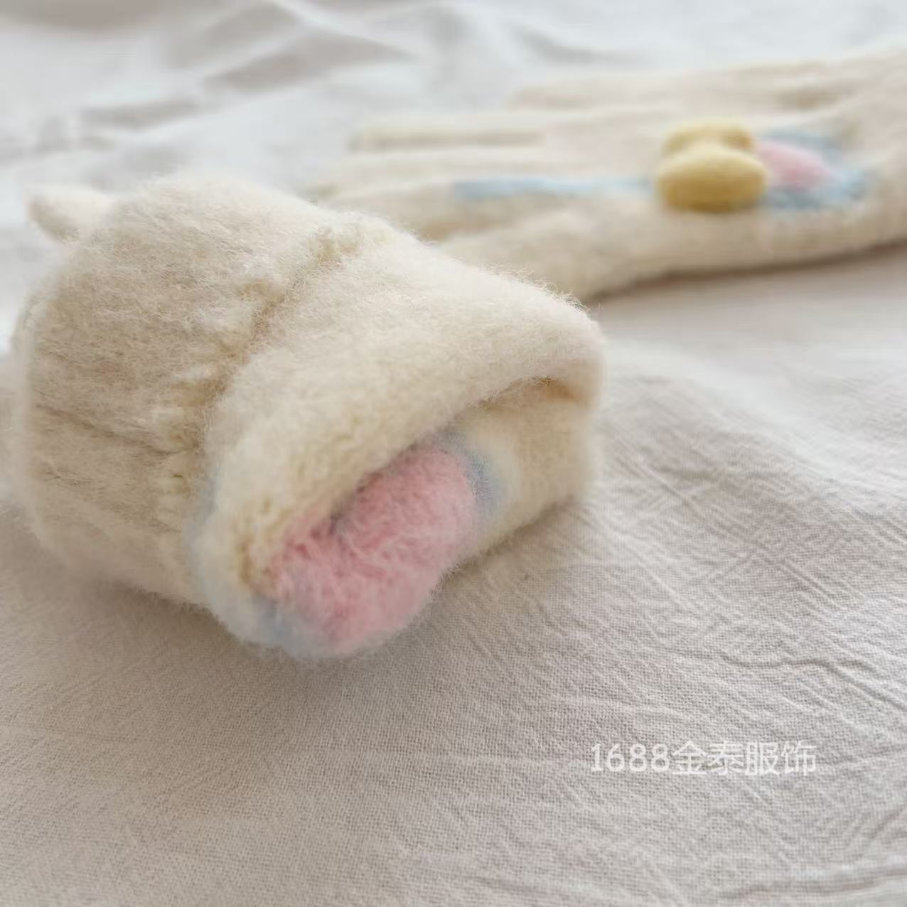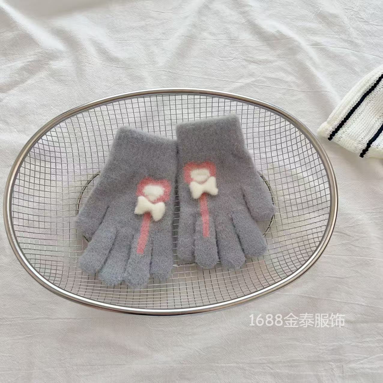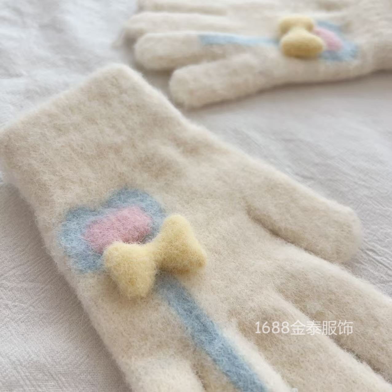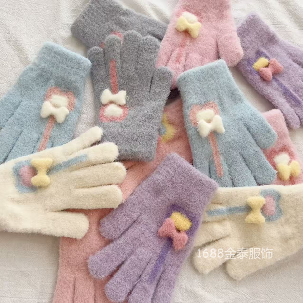 7-12岁儿童手套秋冬季保暖爱心棒棒糖分指五指手套女童加绒加厚批