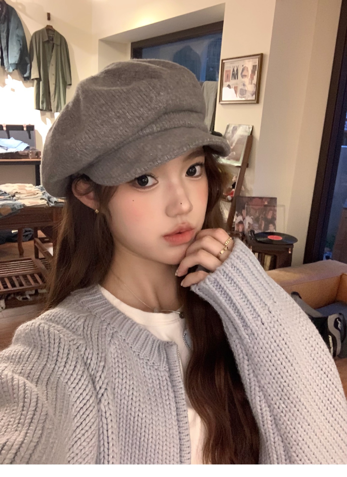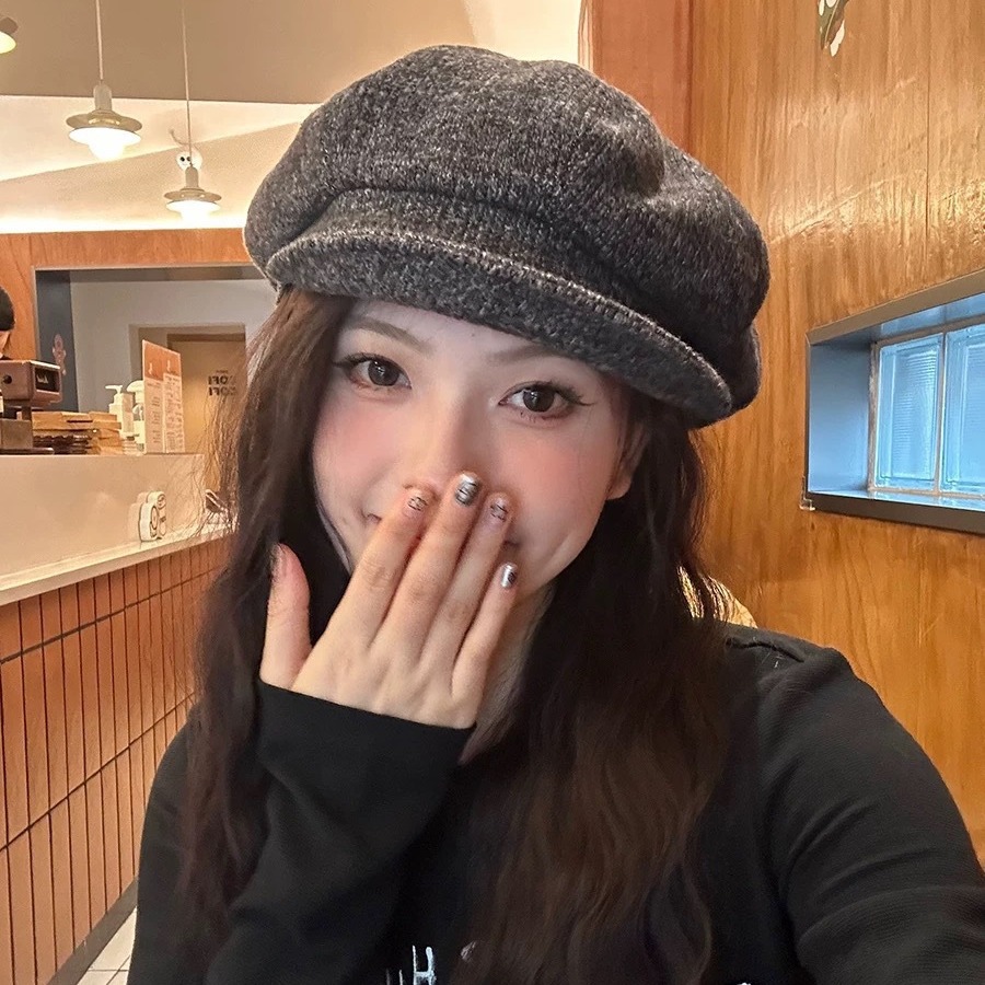 八角贝雷帽秋冬新款文艺复古纯色韩系ins显脸小秋冬氛围感百搭潮