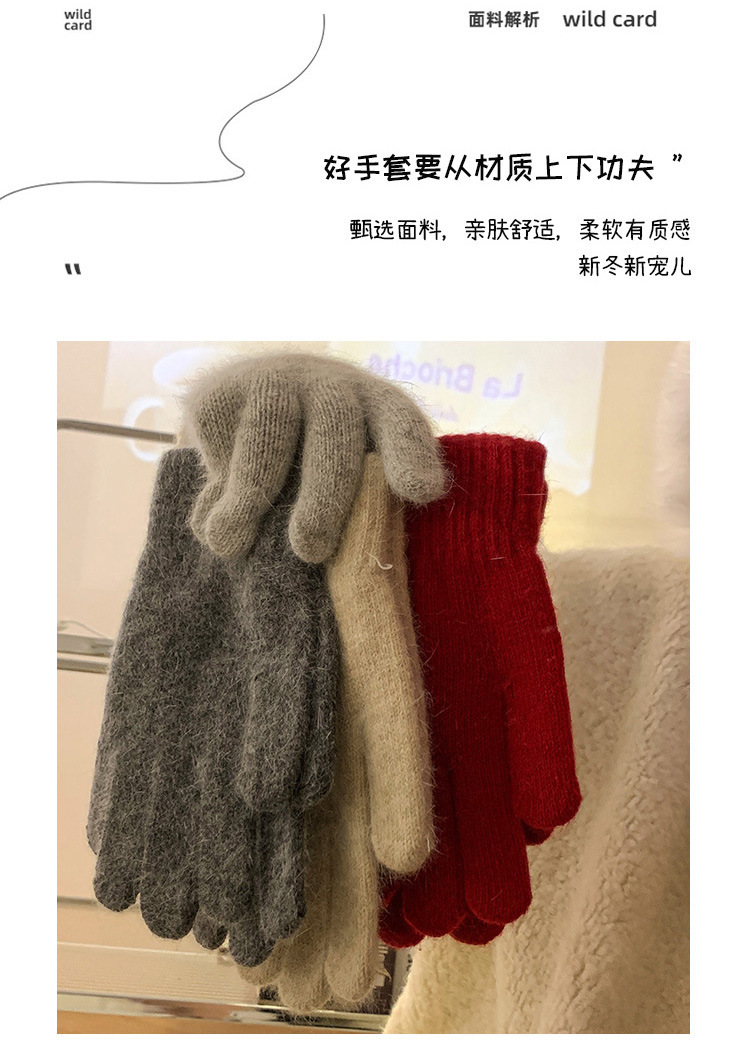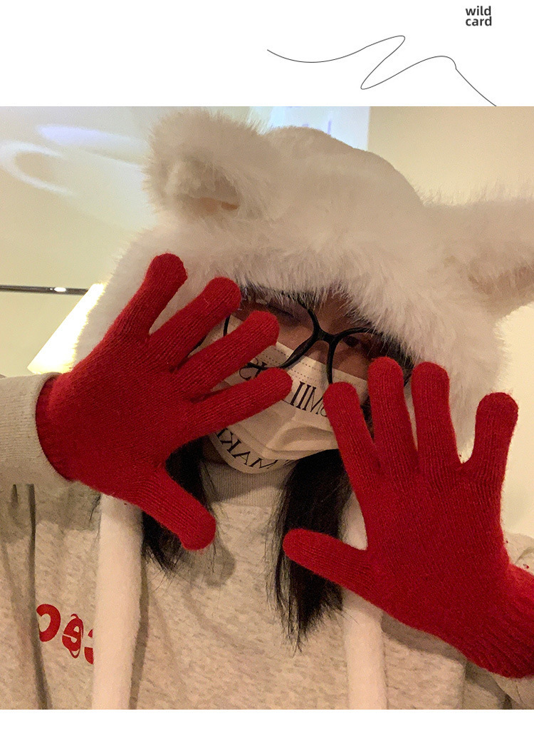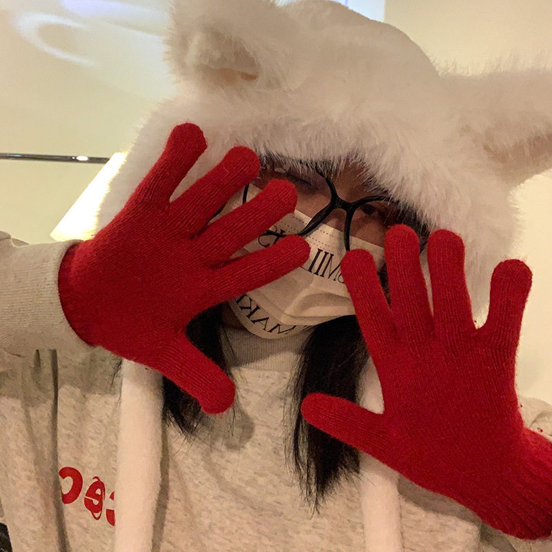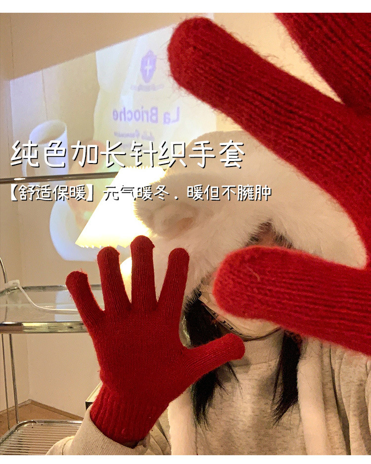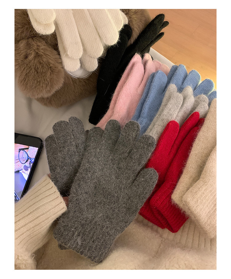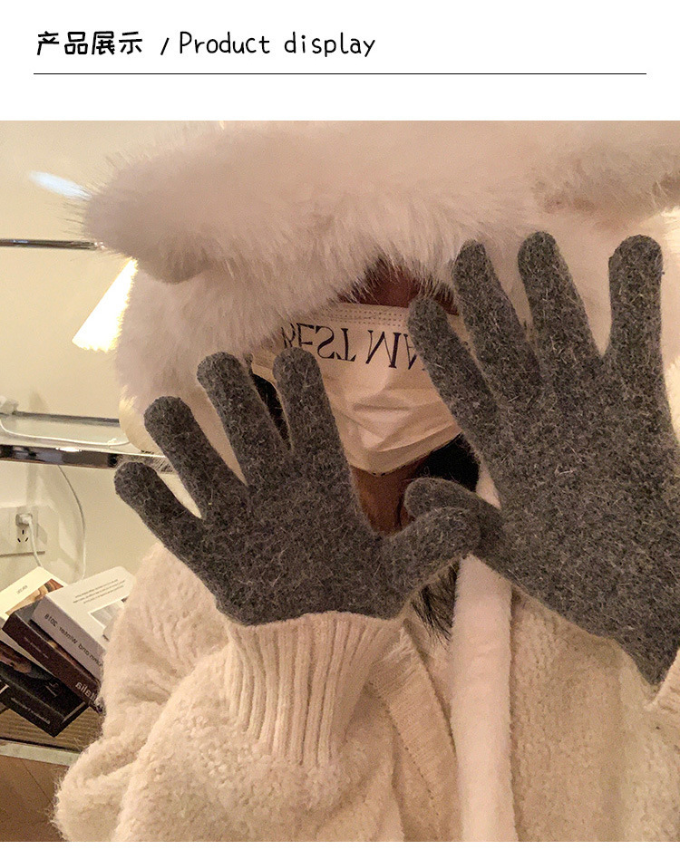 纯色针织手套女冬季防风骑车保暖防寒护手五指分指学生骑行手套韩