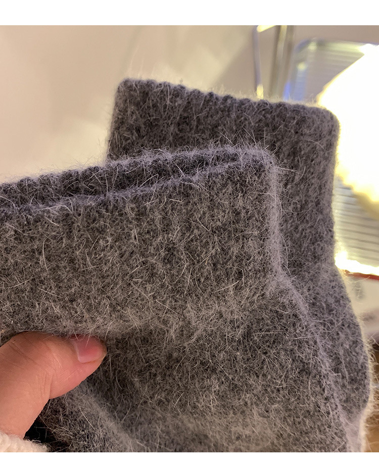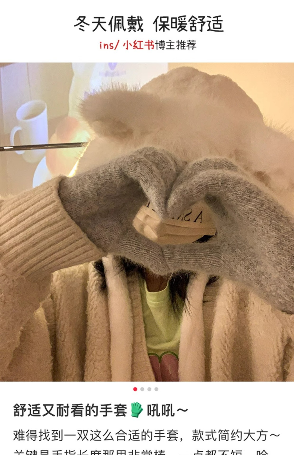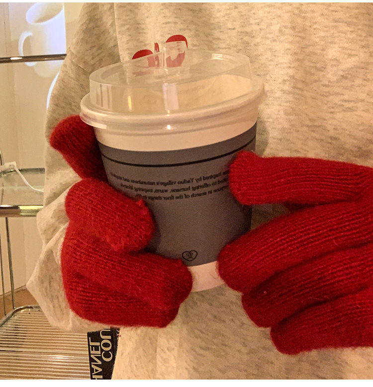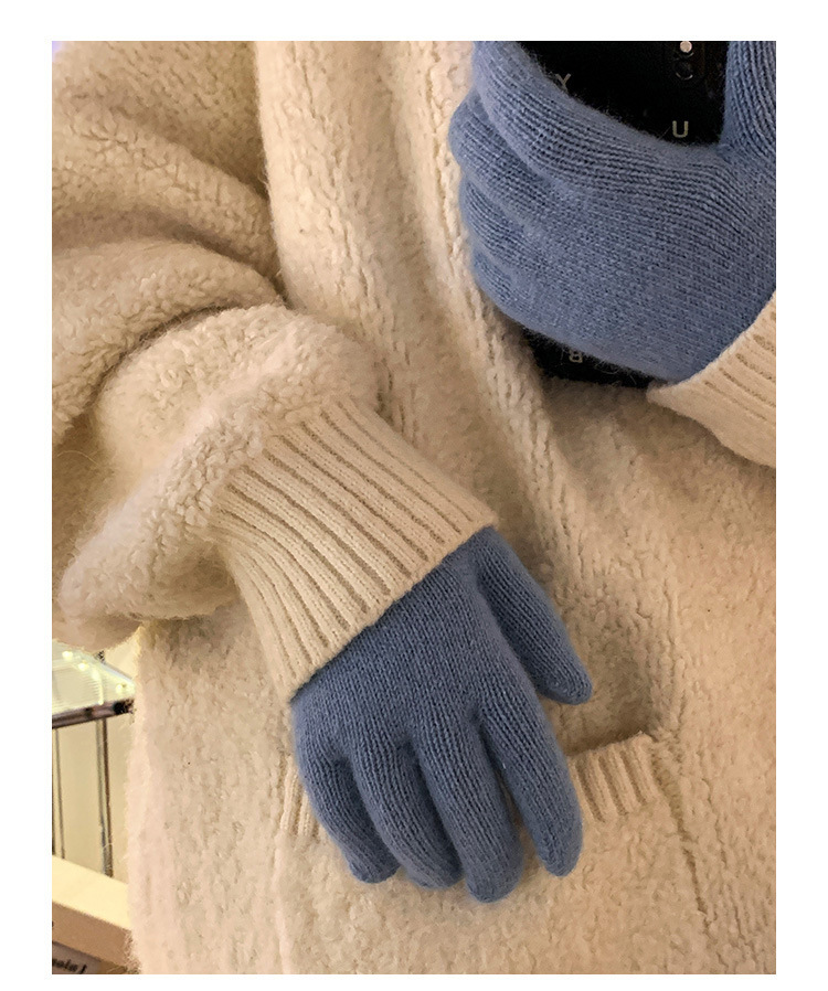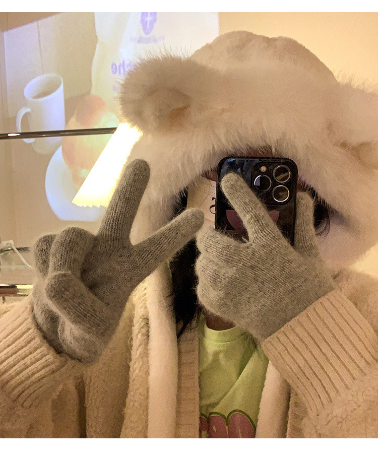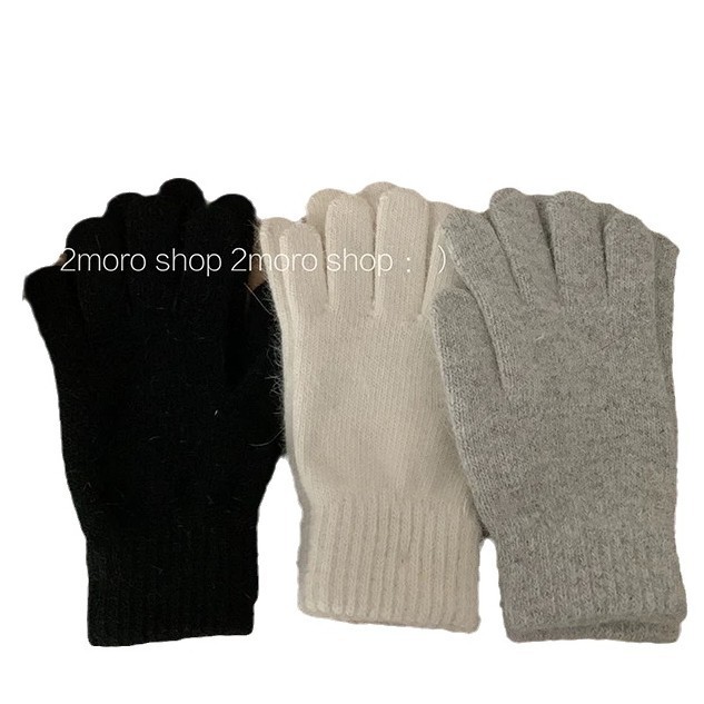纯色针织手套女冬季防风骑车保暖防寒护手五指分指学生骑行手套韩