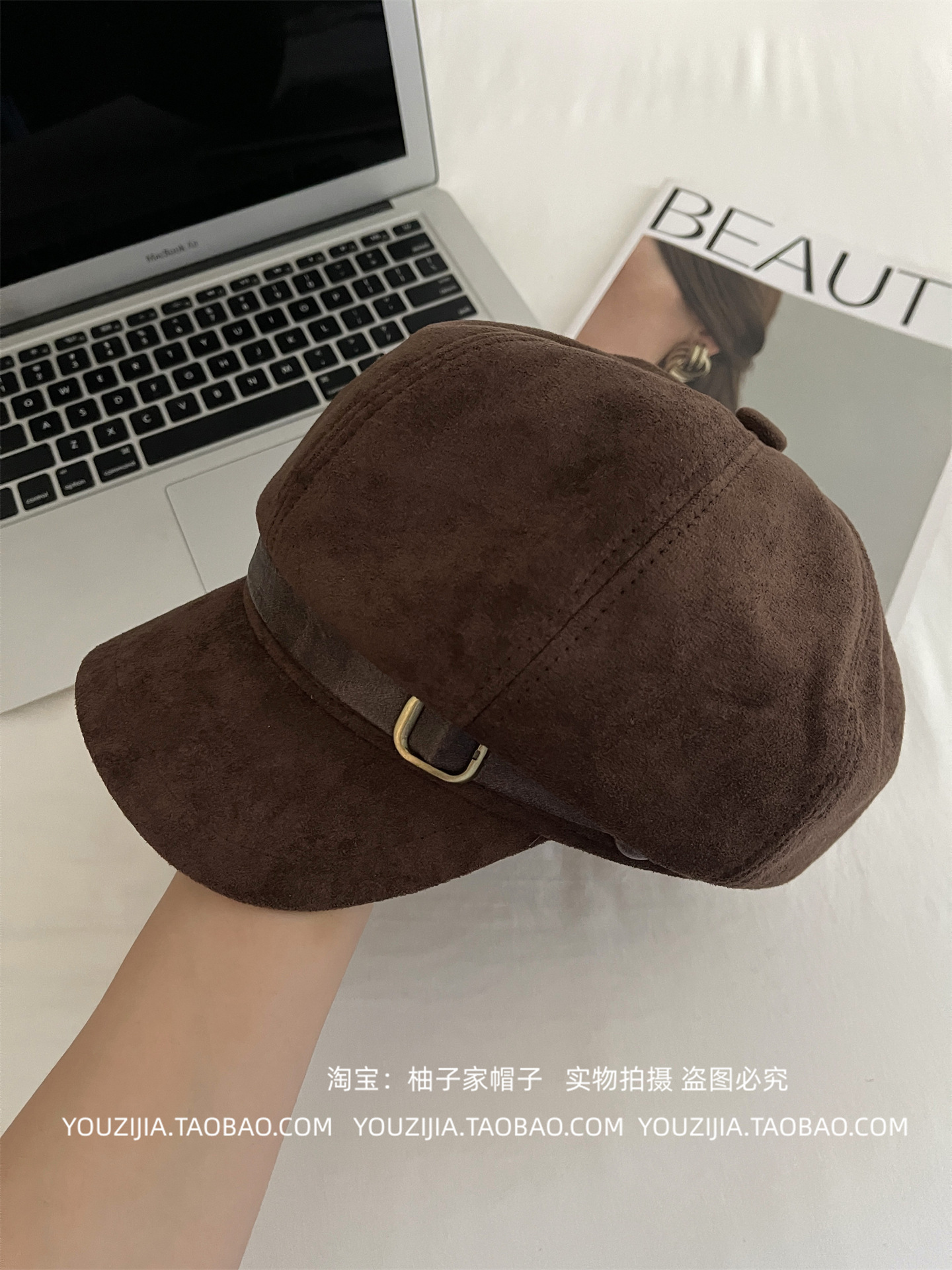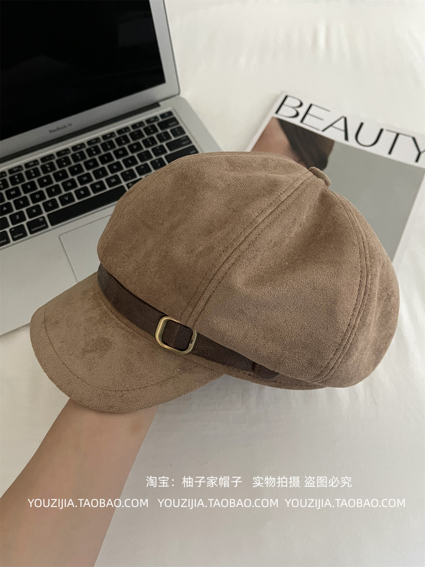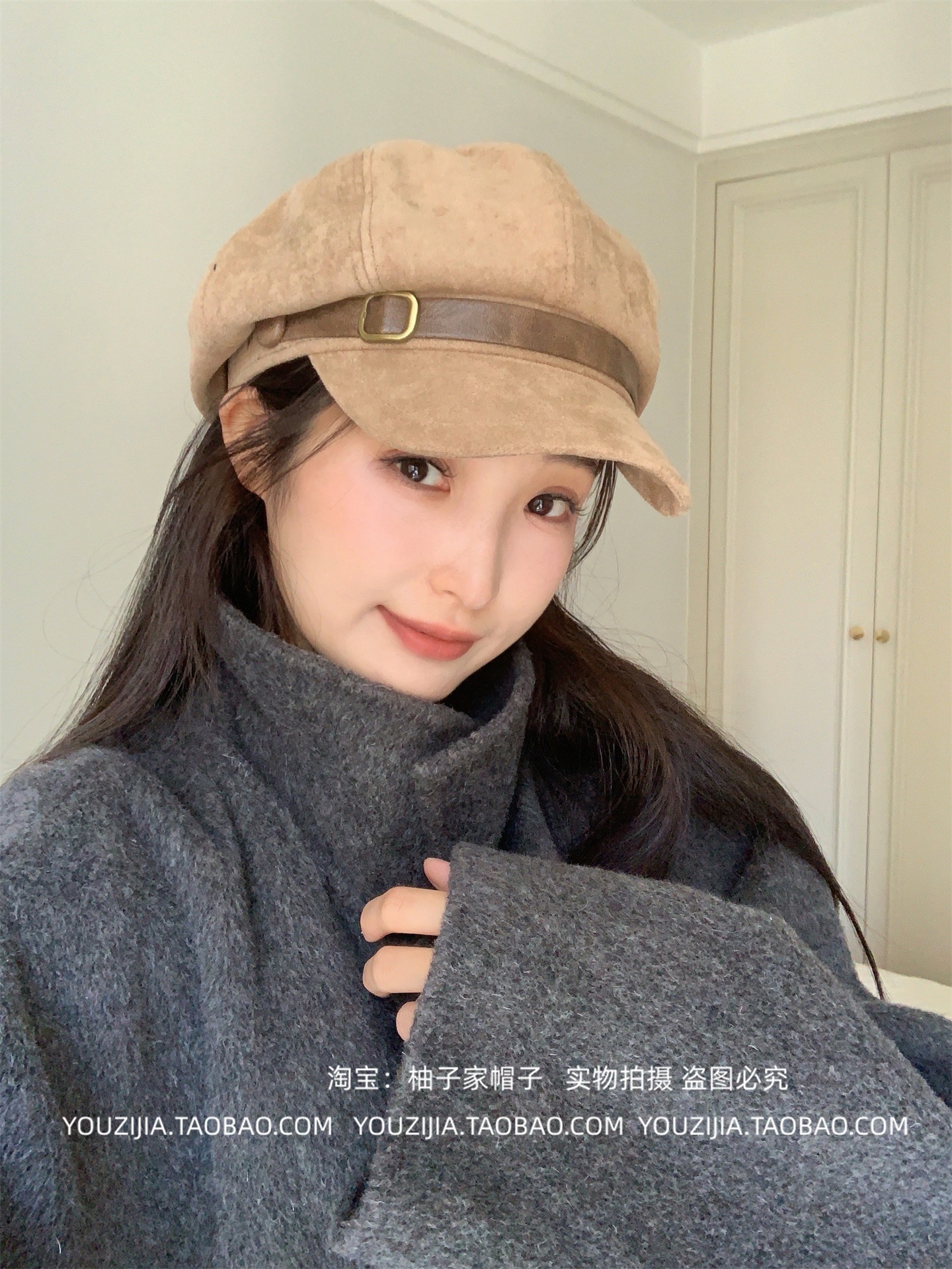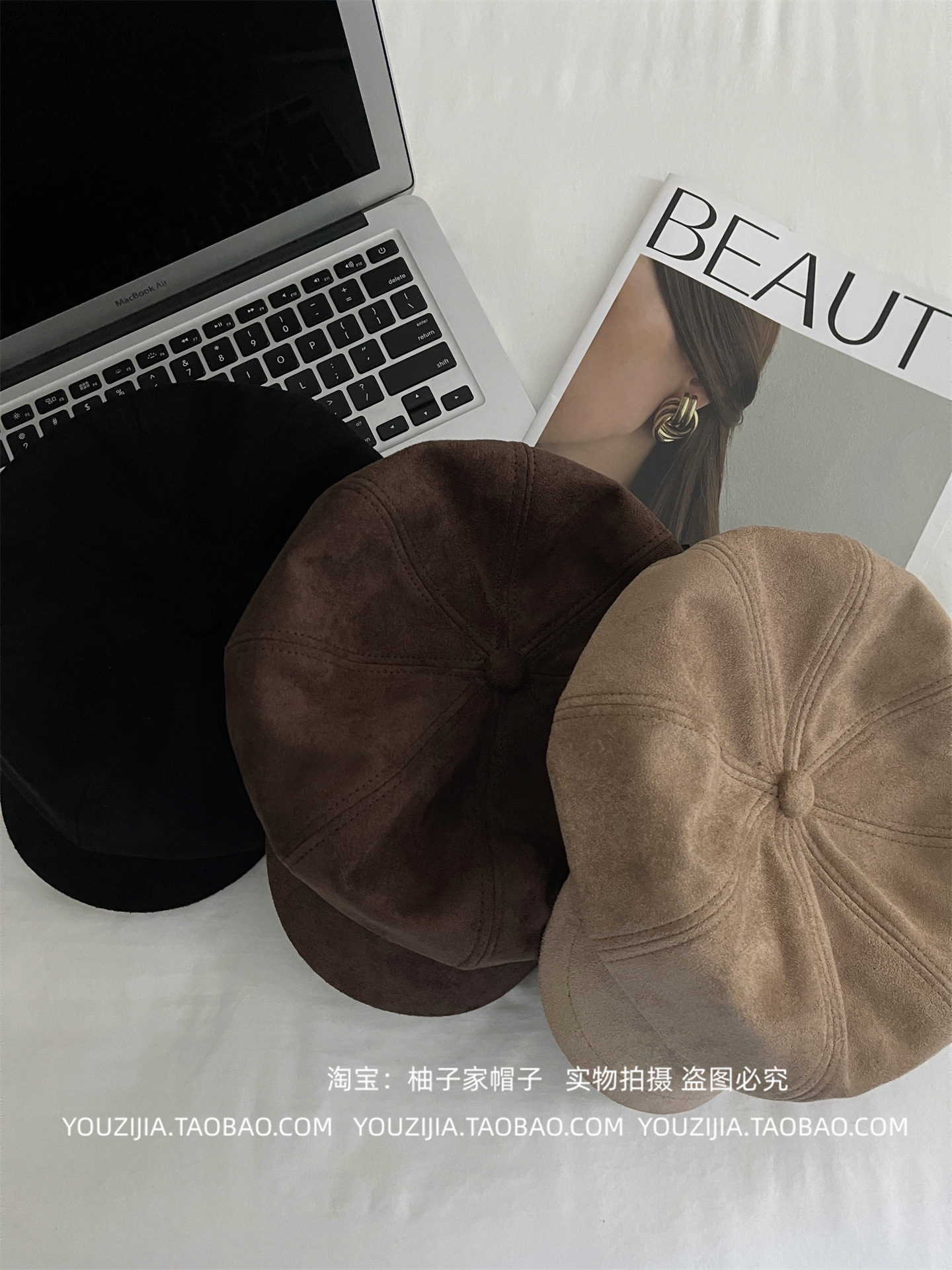 麂皮绒复古贝雷帽女2025秋冬新款韩系做旧潮气质时尚显脸小八角帽