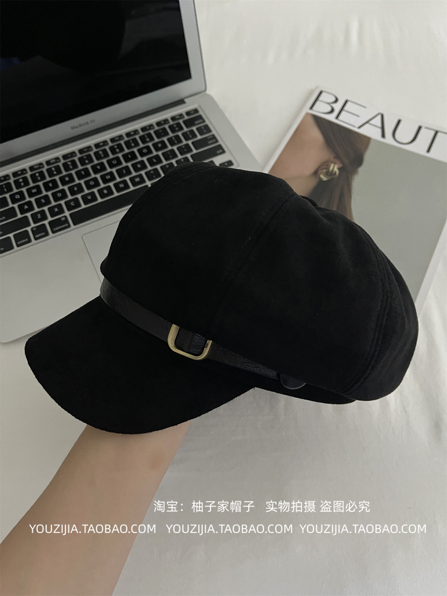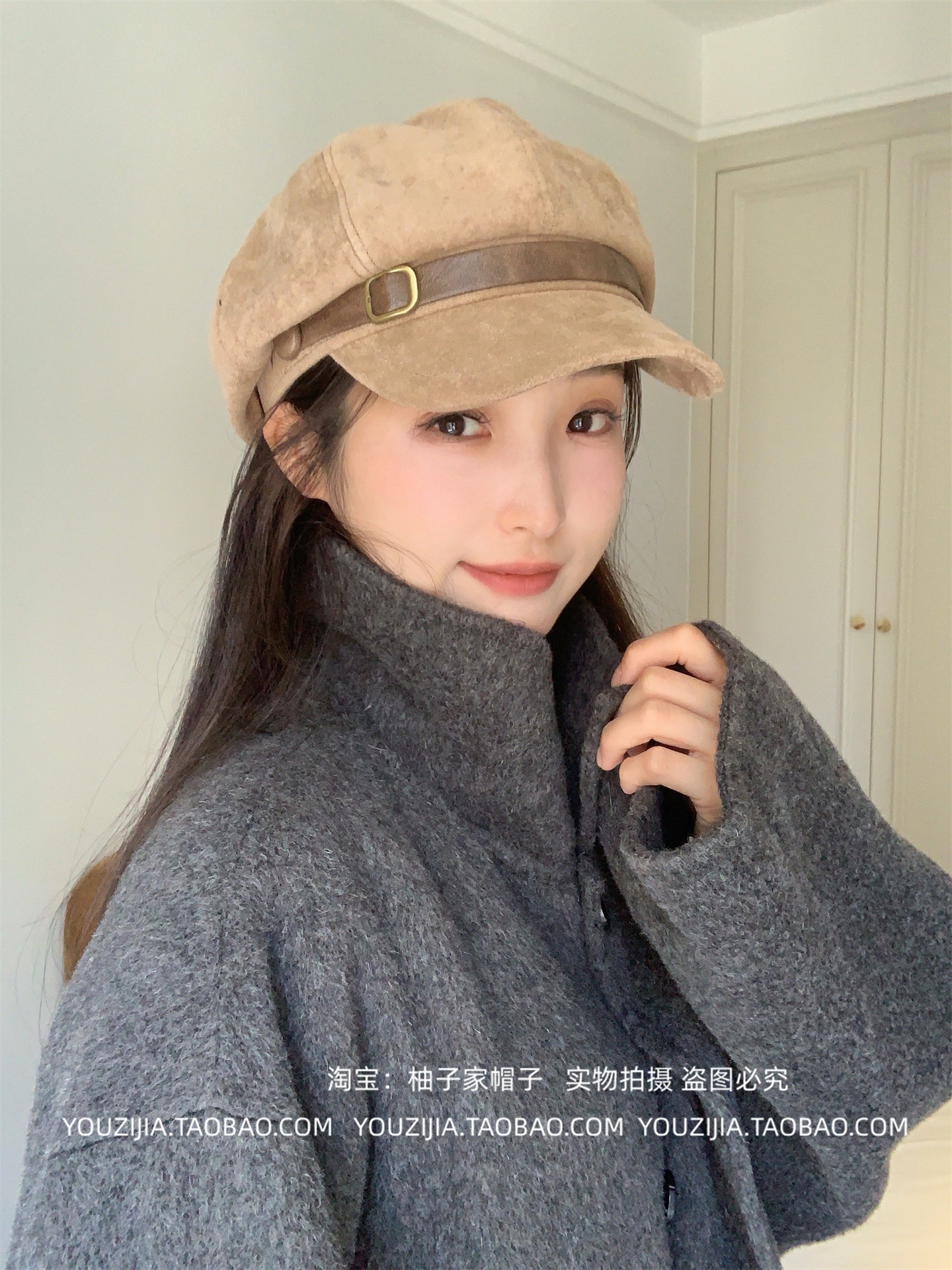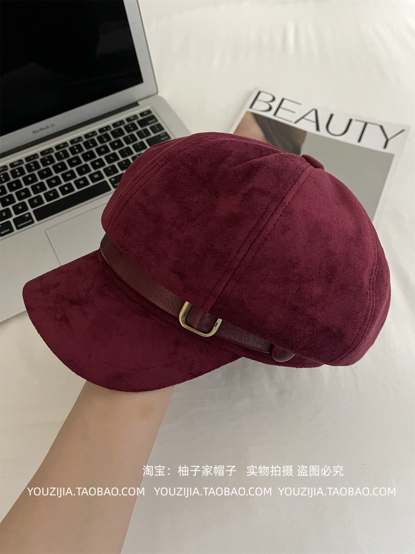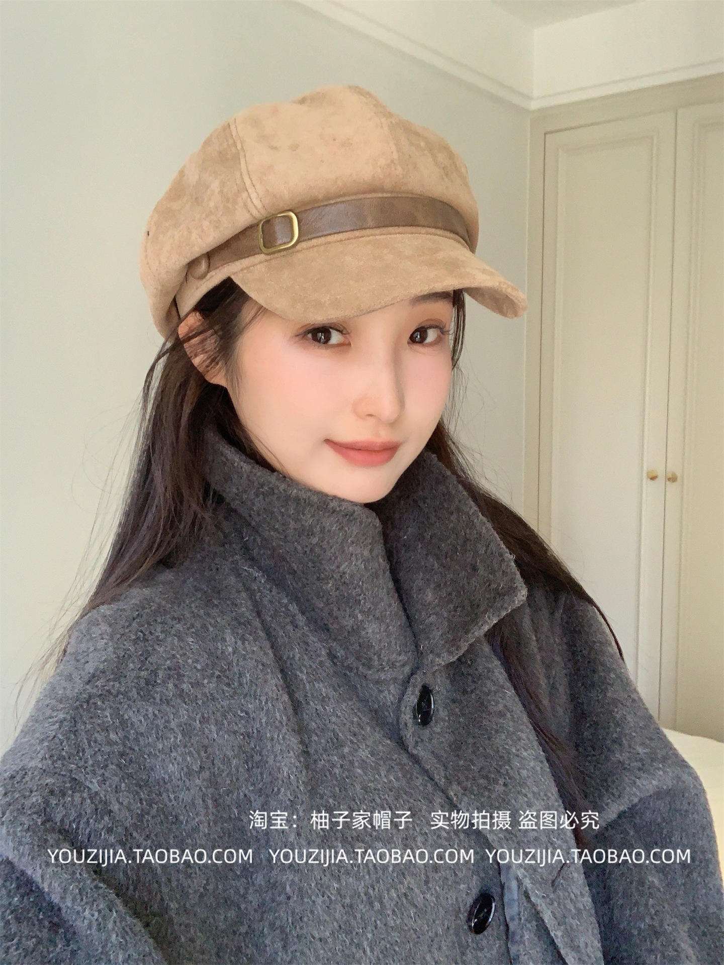 麂皮绒复古贝雷帽女2025秋冬新款韩系做旧潮气质时尚显脸小八角帽