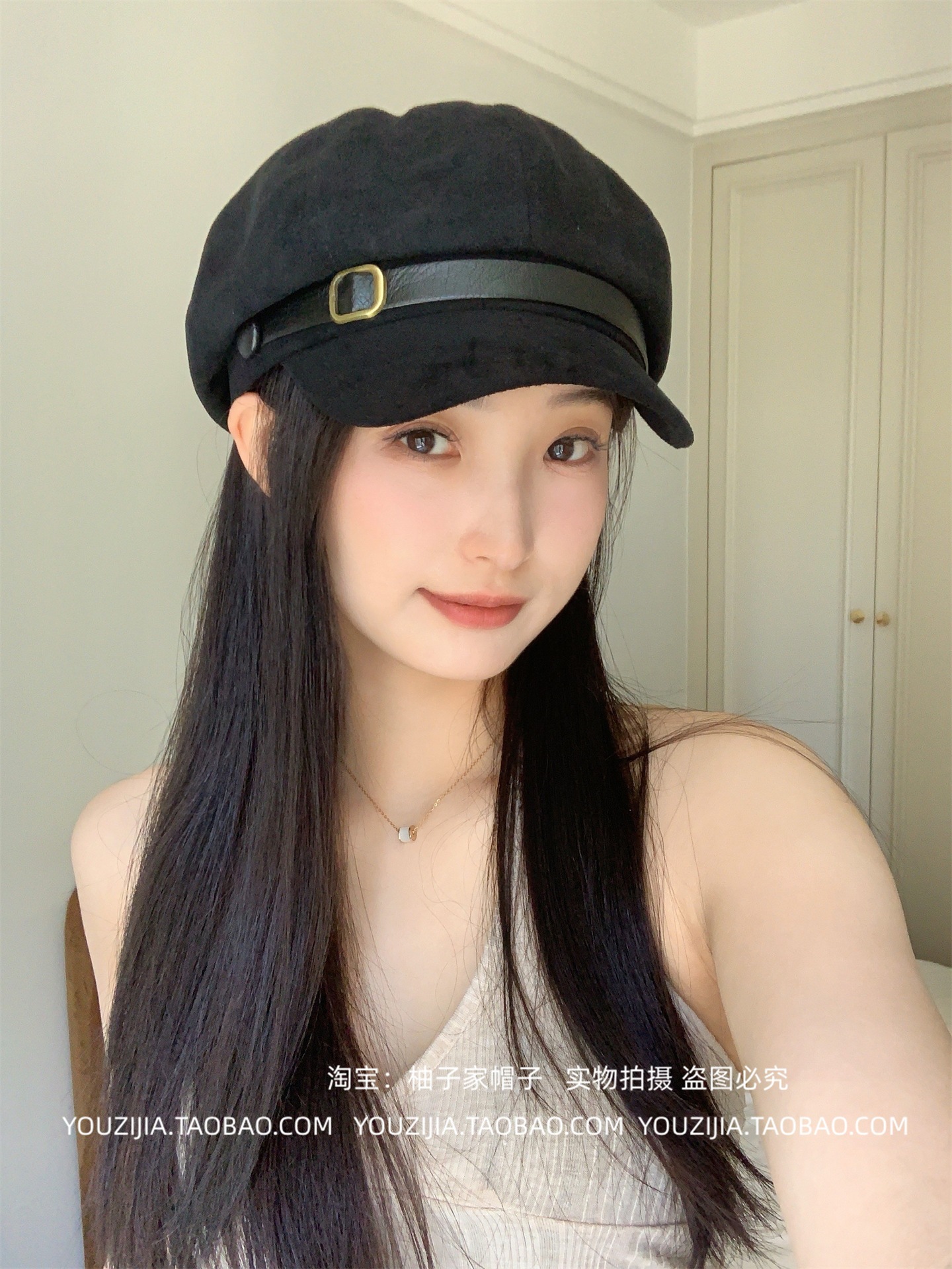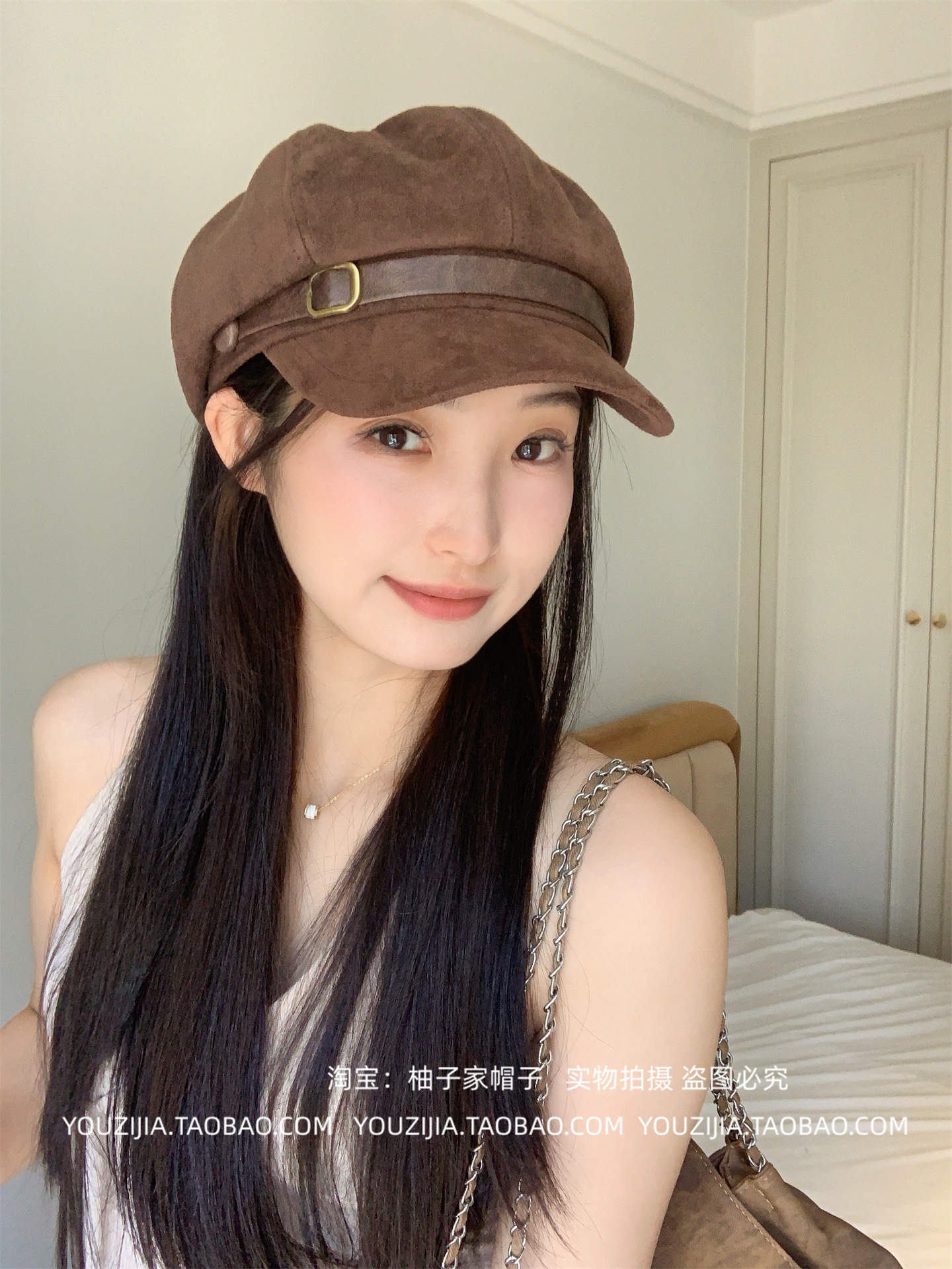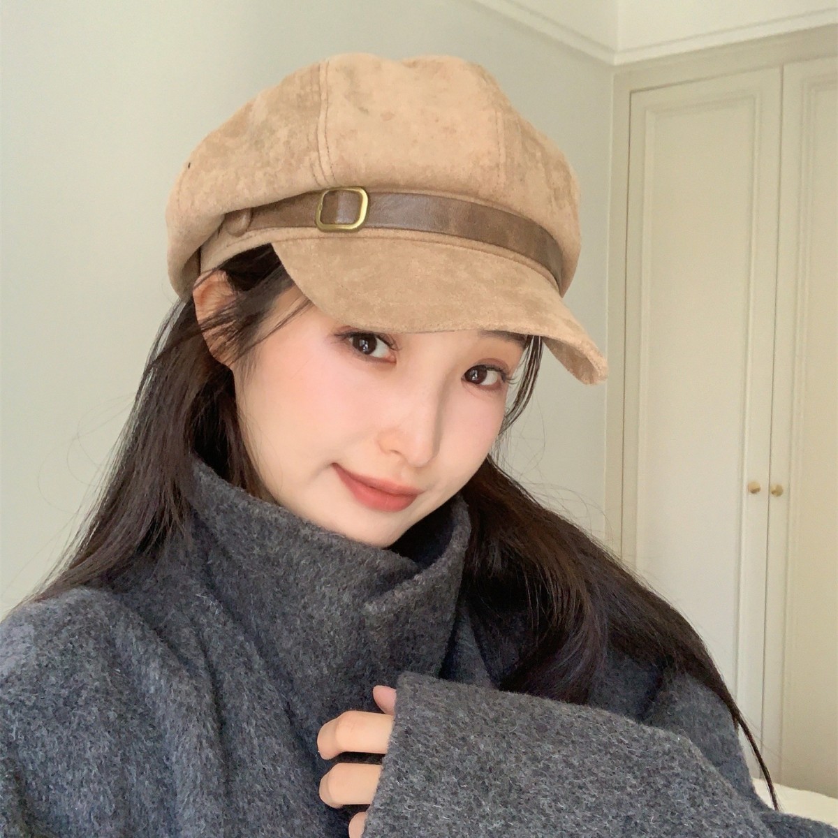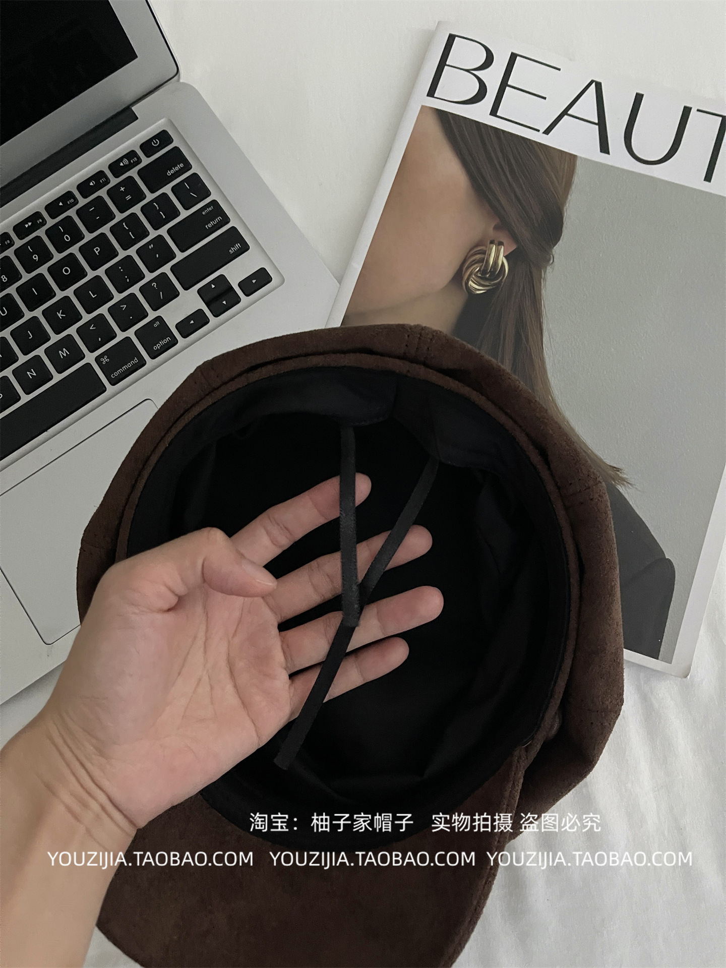 麂皮绒复古贝雷帽女2025秋冬新款韩系做旧潮气质时尚显脸小八角帽