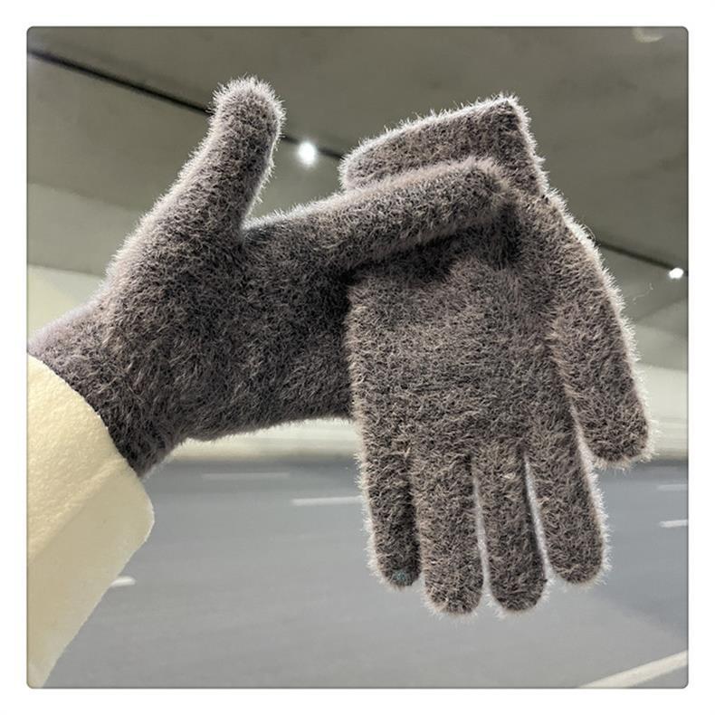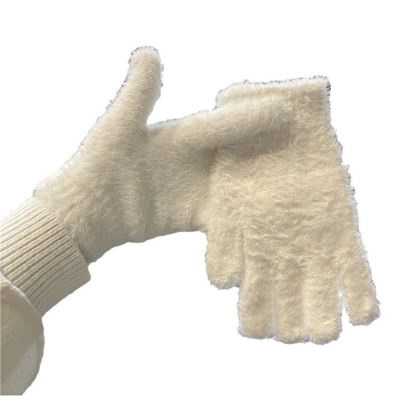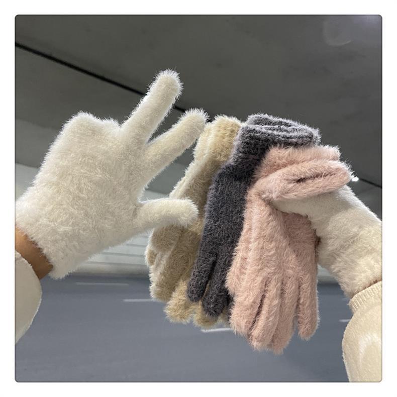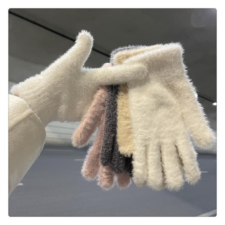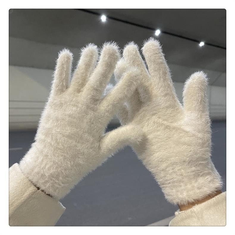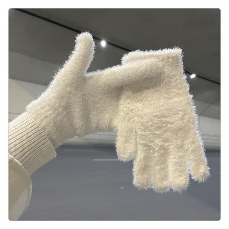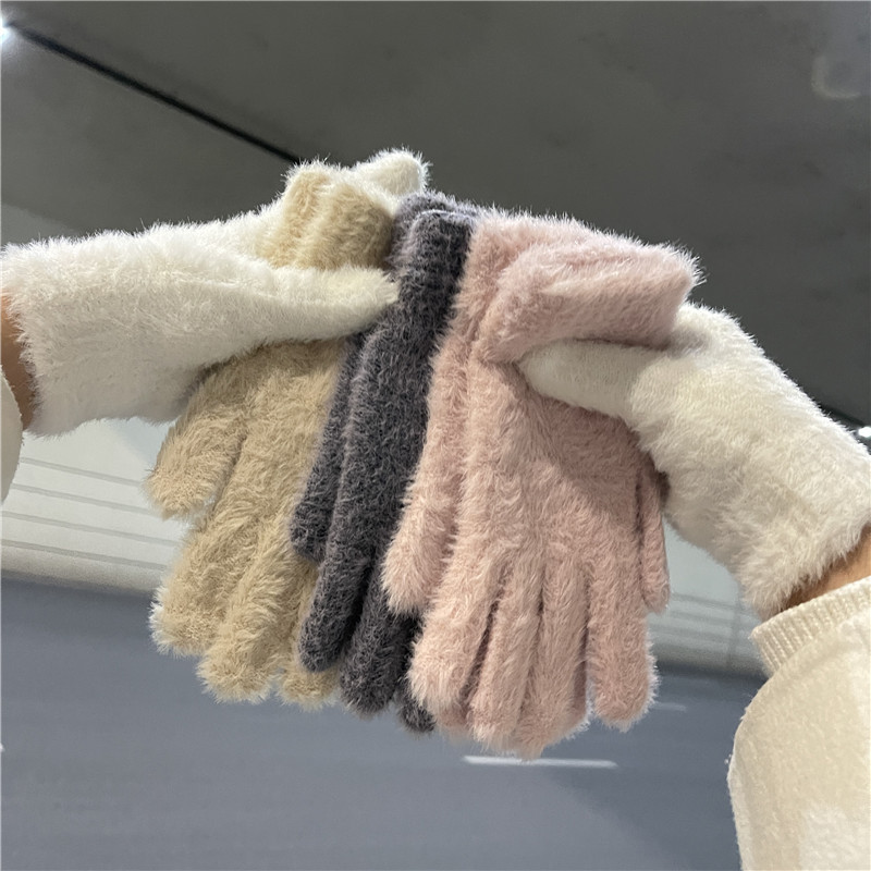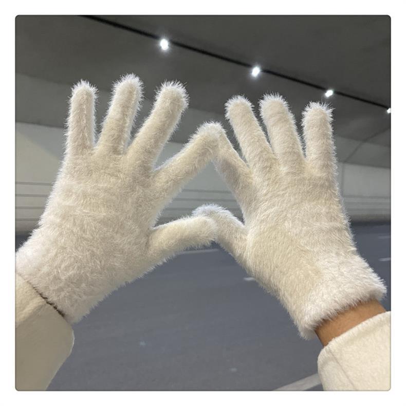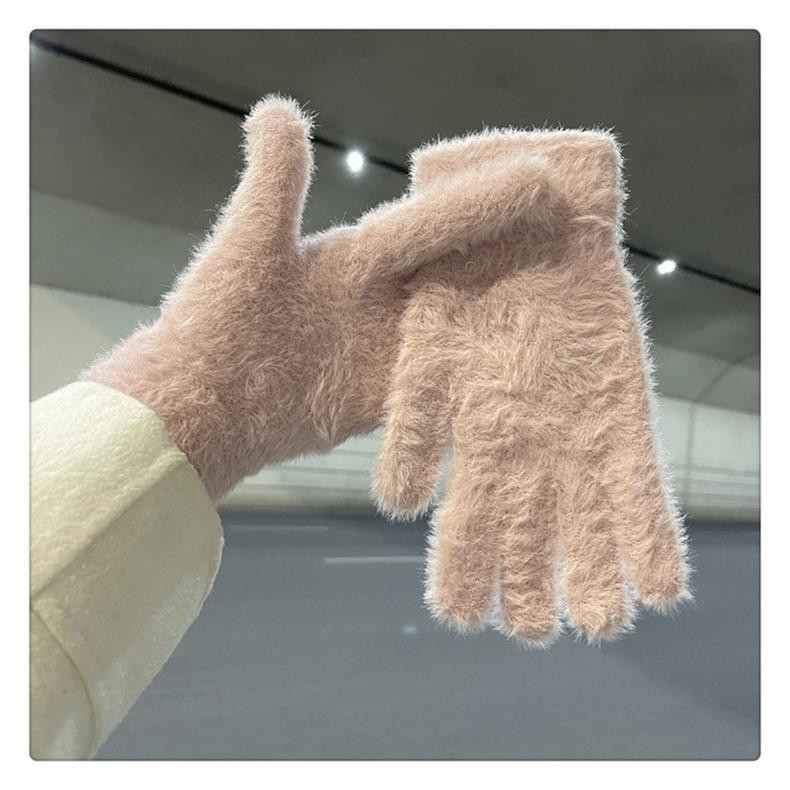 骑车仿兔毛毛绒ins风手套女新款秋冬季加绒保暖可爱分指防寒学生