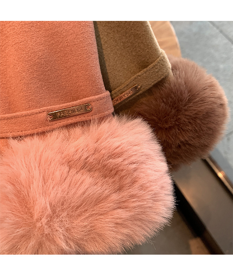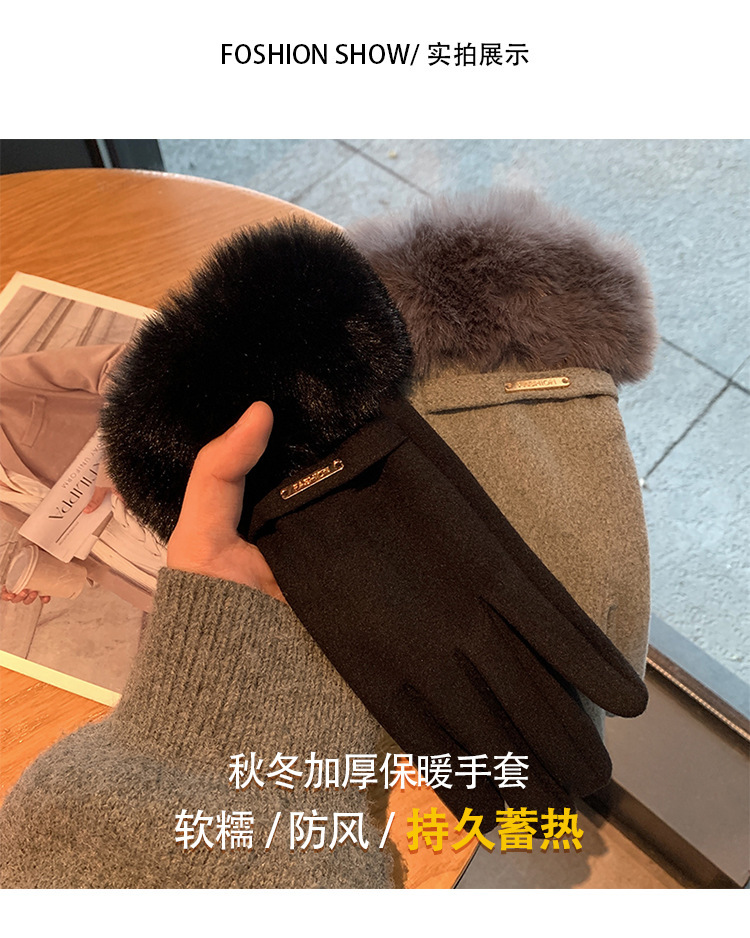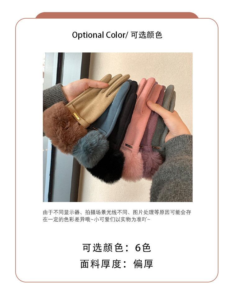 可触屏保暖手套冬季女士加绒加厚可爱防风毛绒棉手套骑行开车防寒