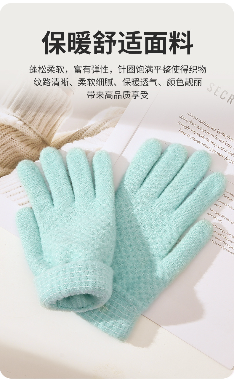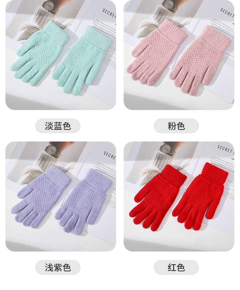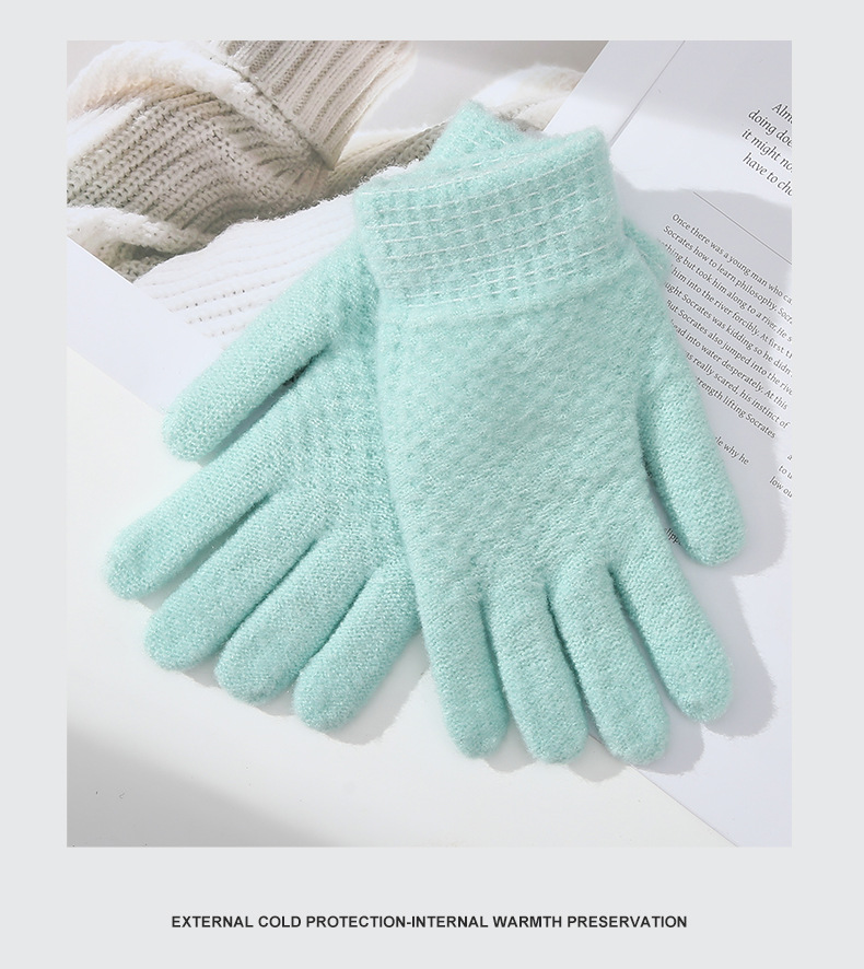 【厂家直销】糖果色纯色保暖手套女马海毛针织毛线手套骑车骑行