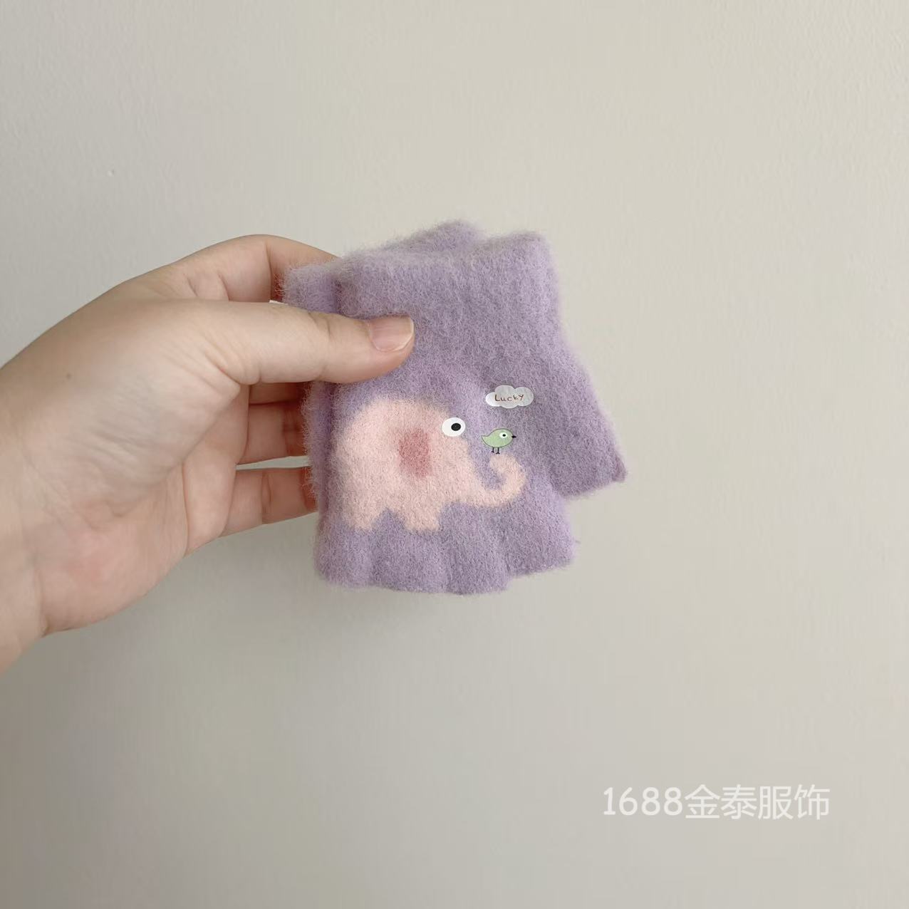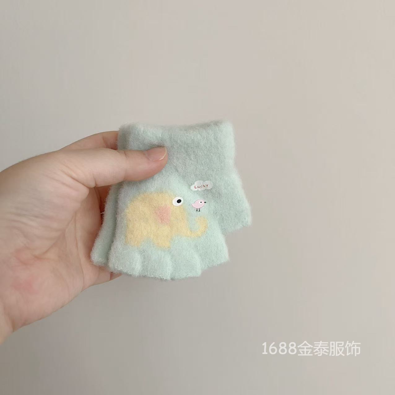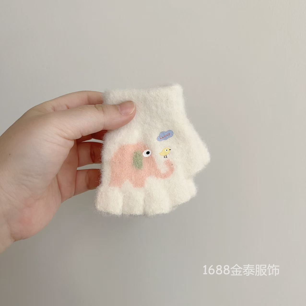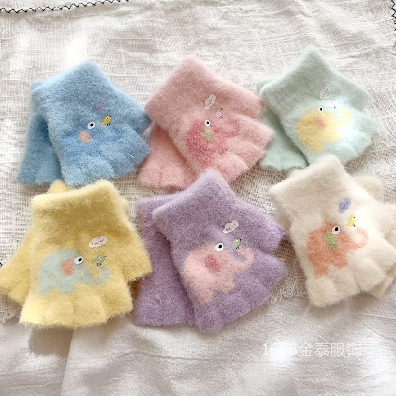 0-3岁 宝宝卡通小象半指手套25年新款秋冬幼儿爬行露指可爱针织批