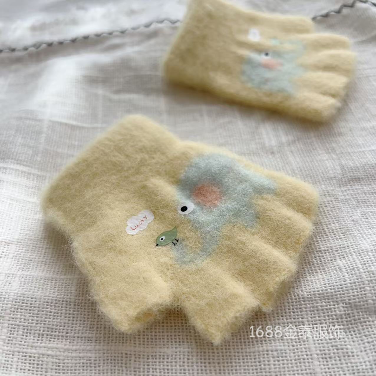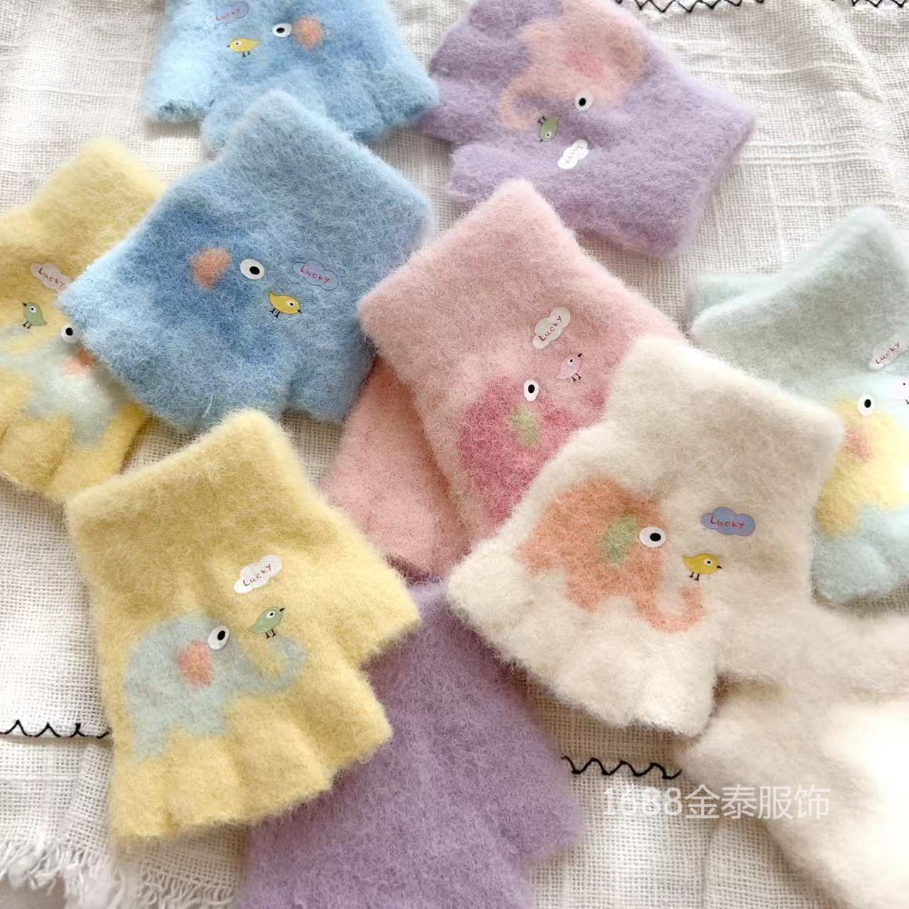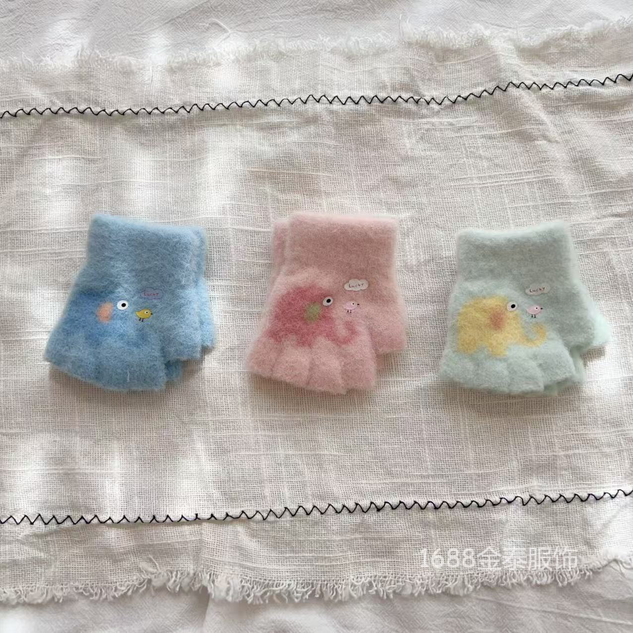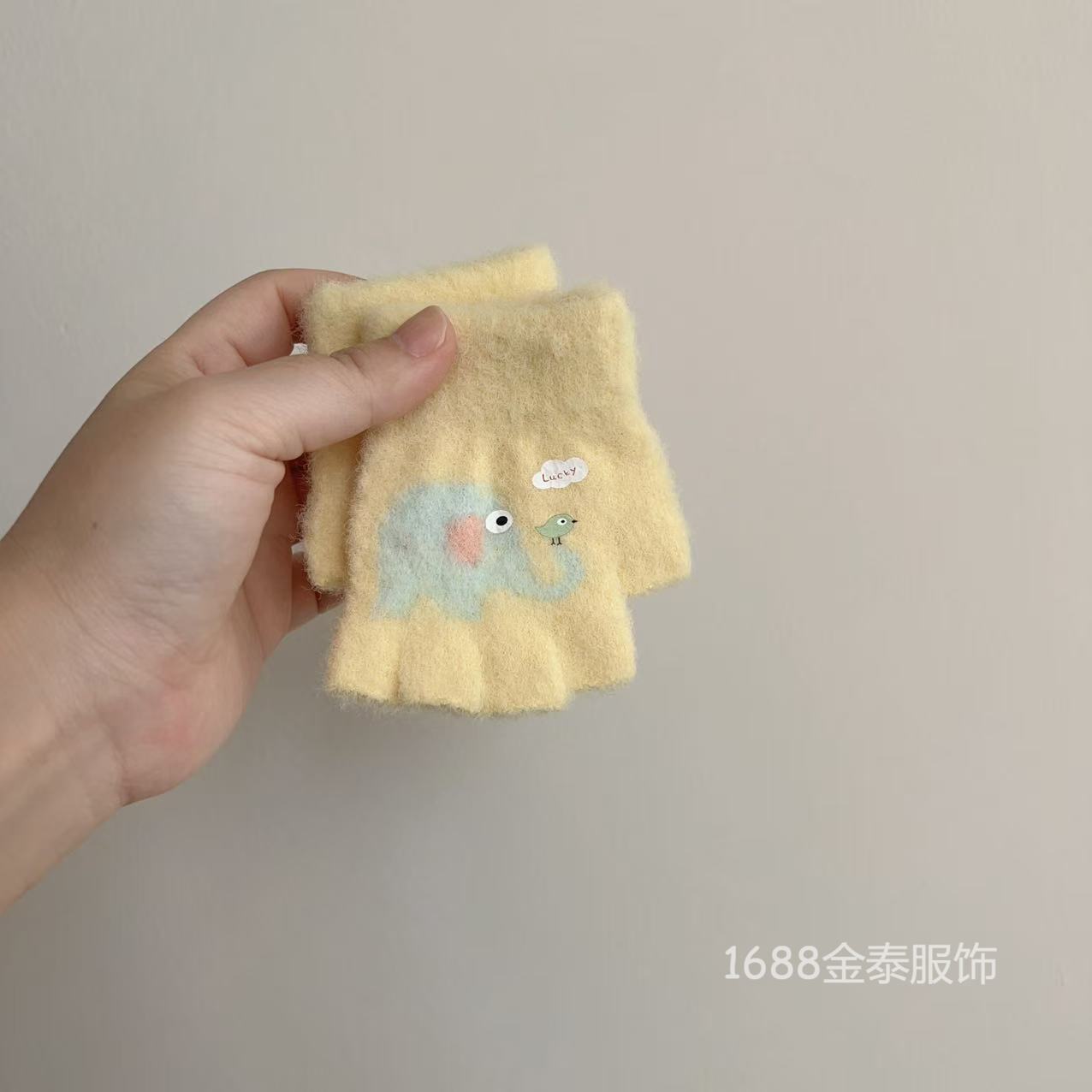 0-3岁 宝宝卡通小象半指手套25年新款秋冬幼儿爬行露指可爱针织批