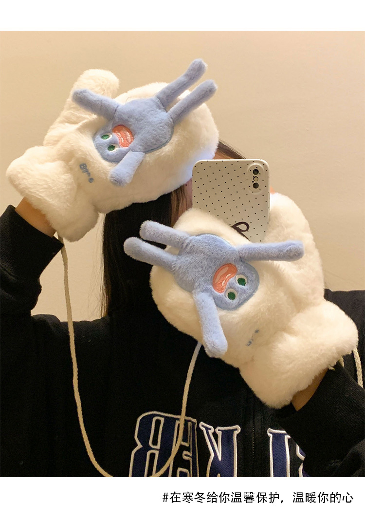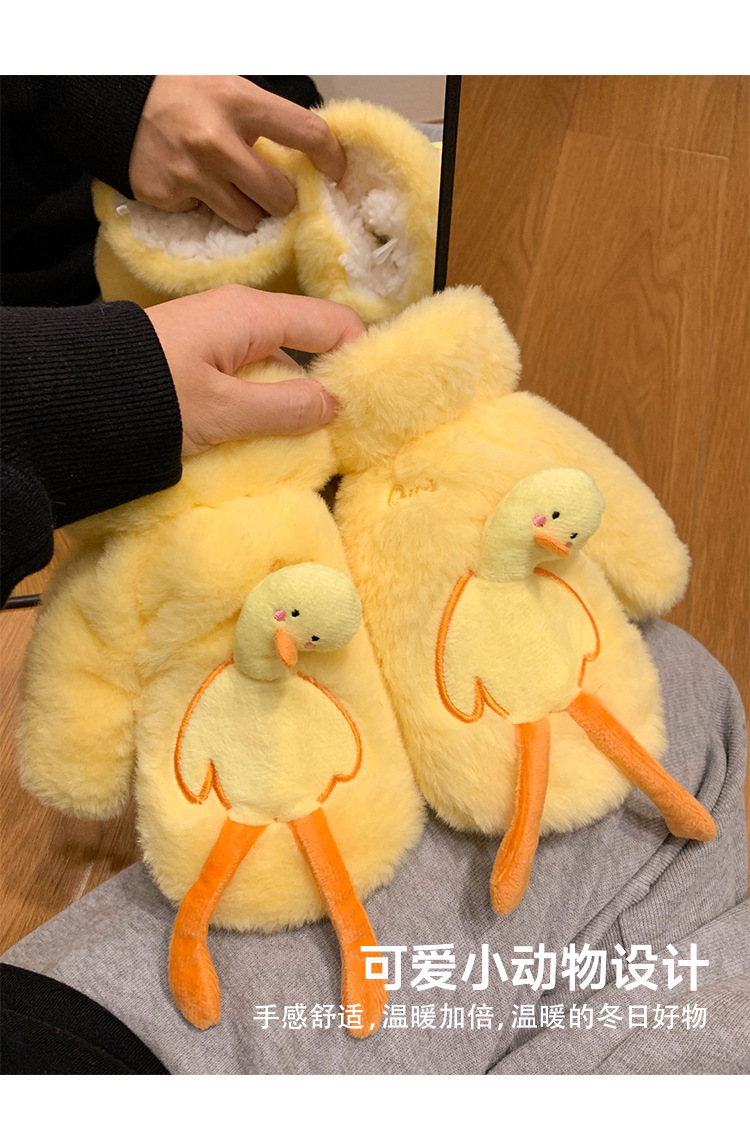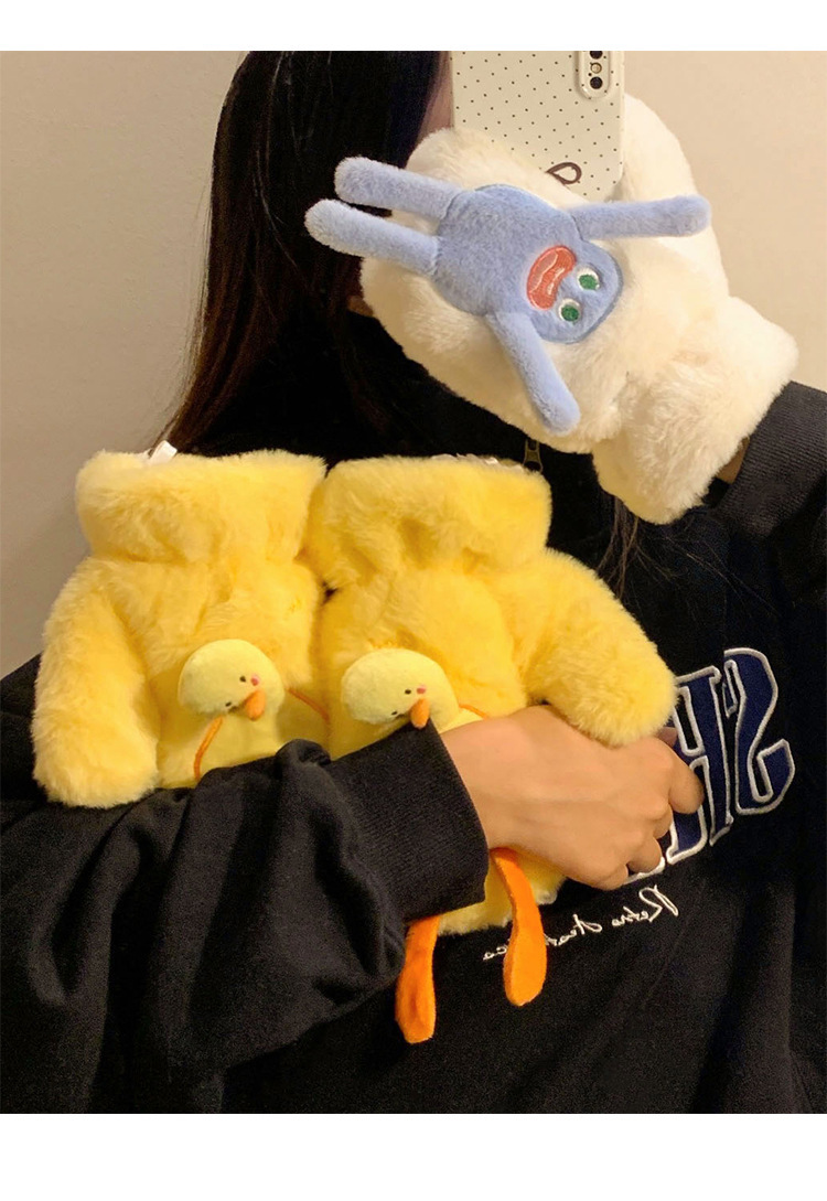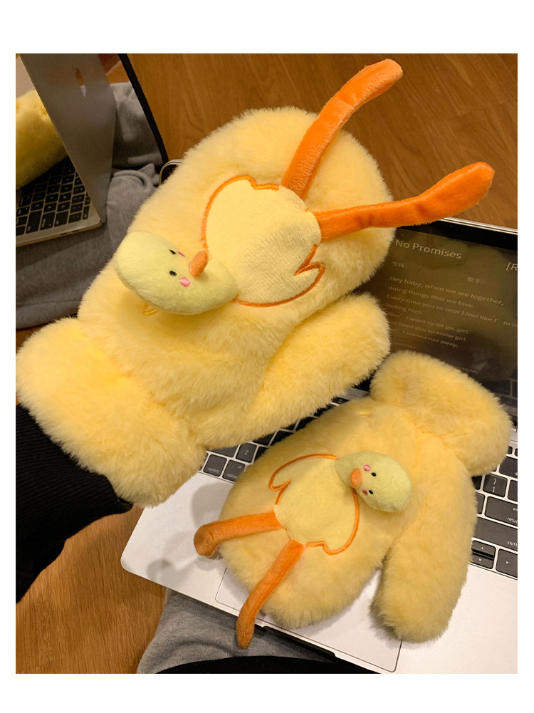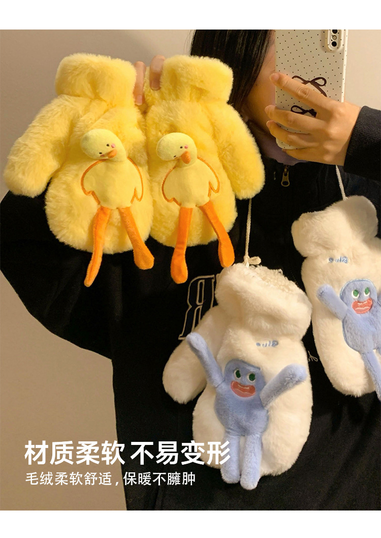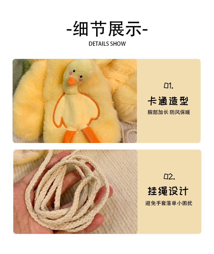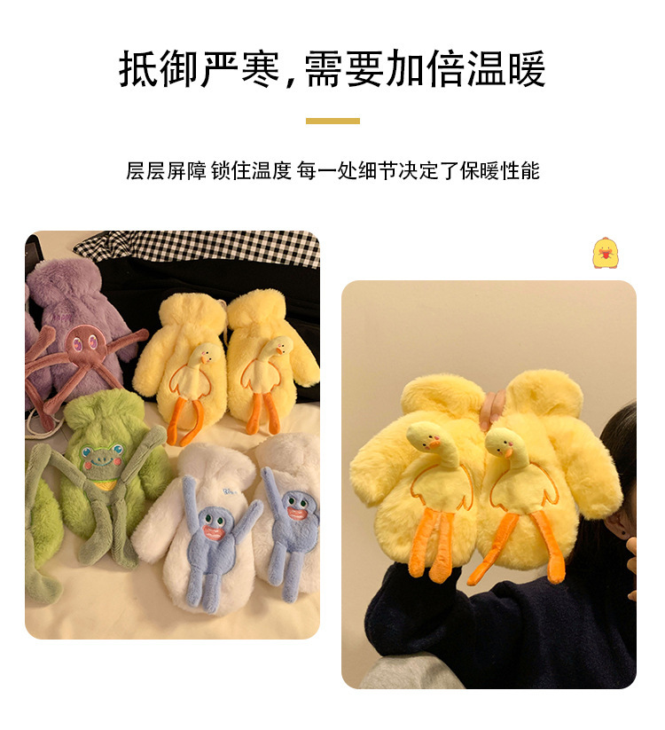 搞怪小黄鸭毛绒手套女冬季可爱加绒保暖挂脖骑车防寒学生全包连指