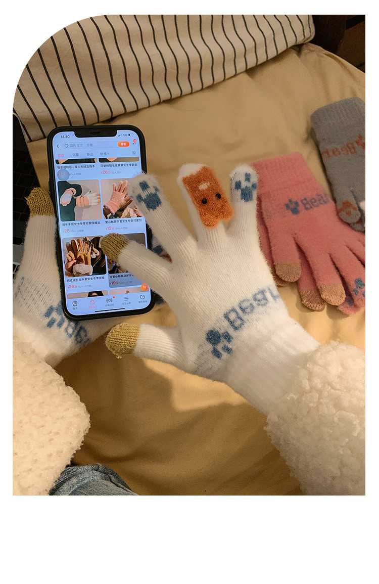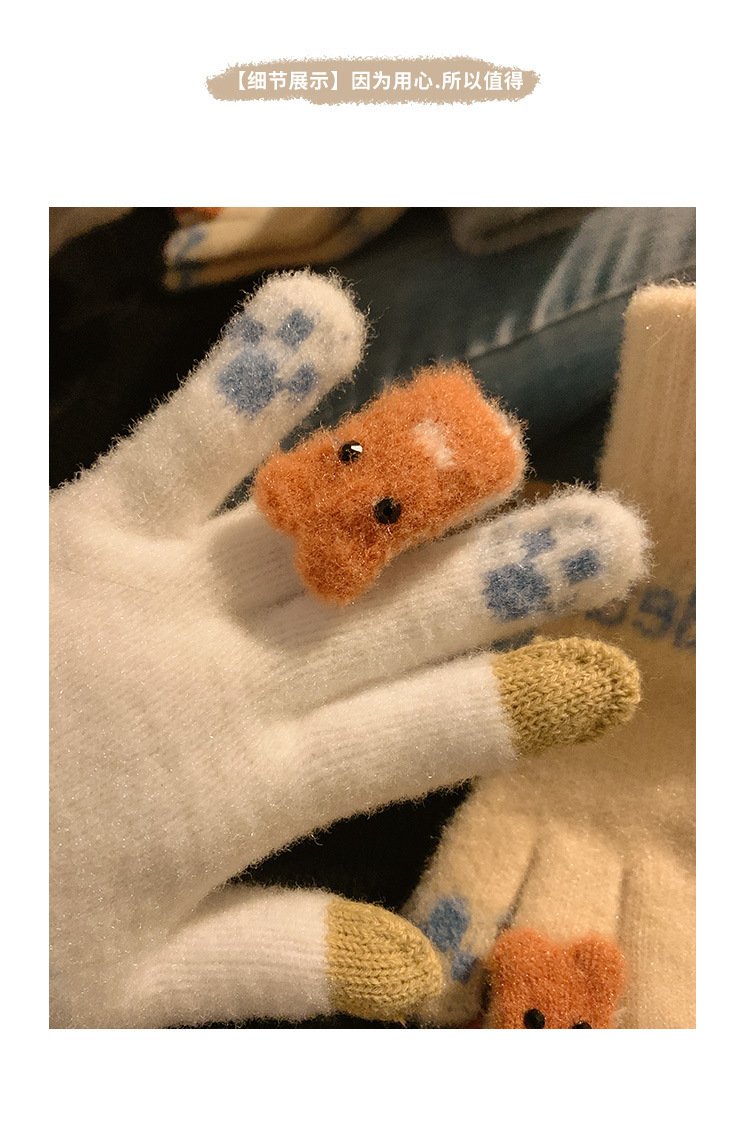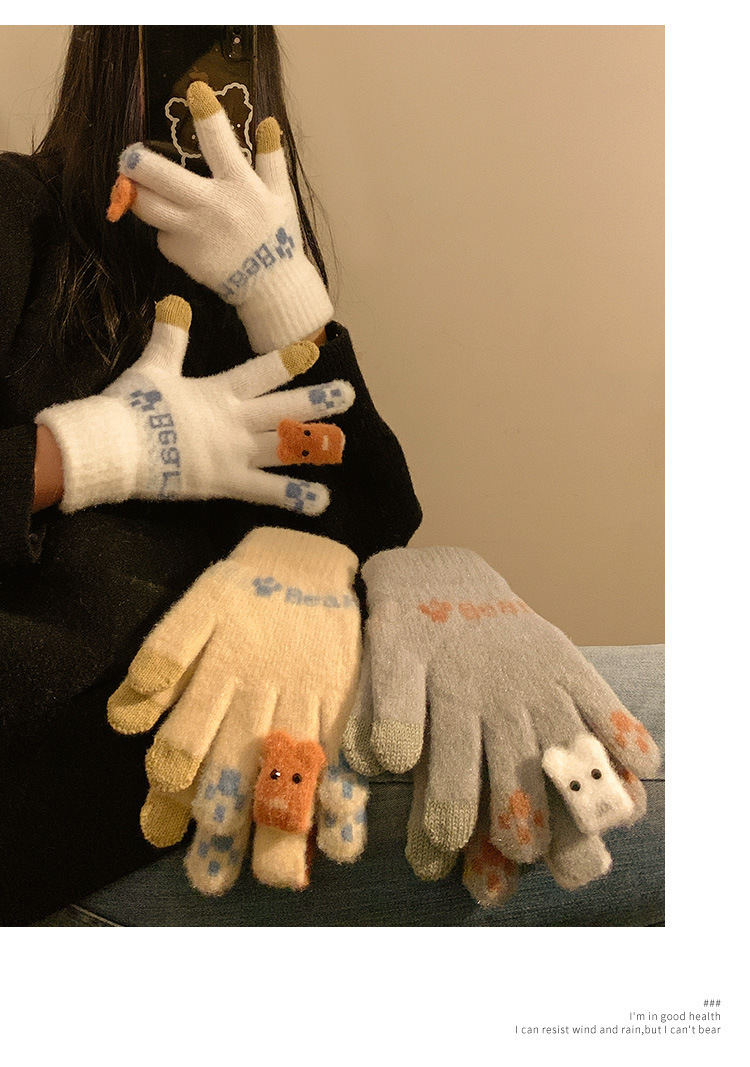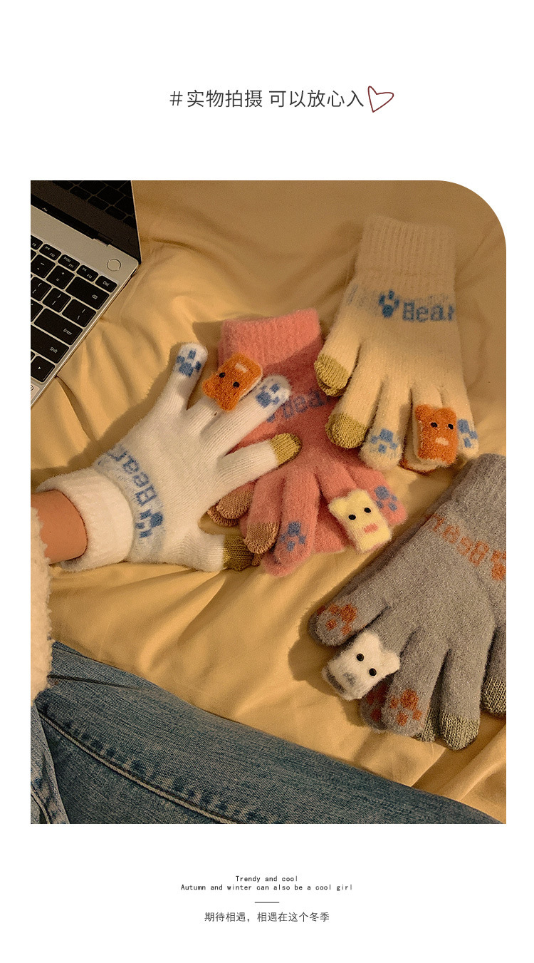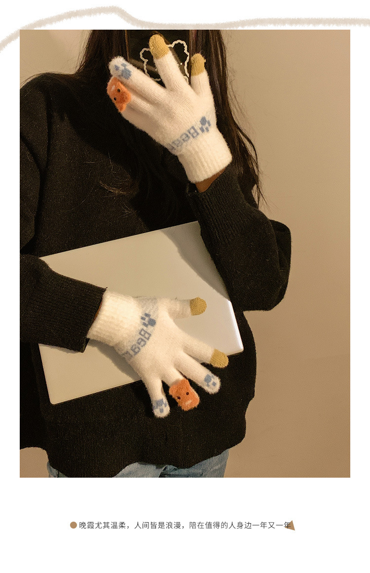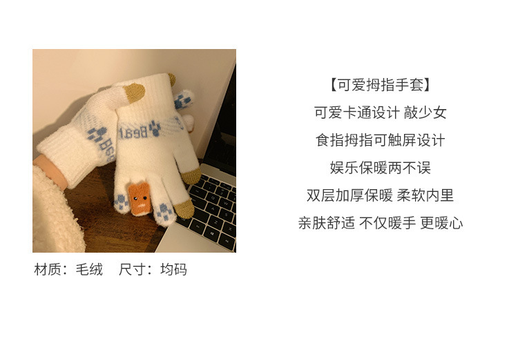 可爱触屏针织保暖手套女士冬季加绒加厚学生骑车冬天新款防寒防风