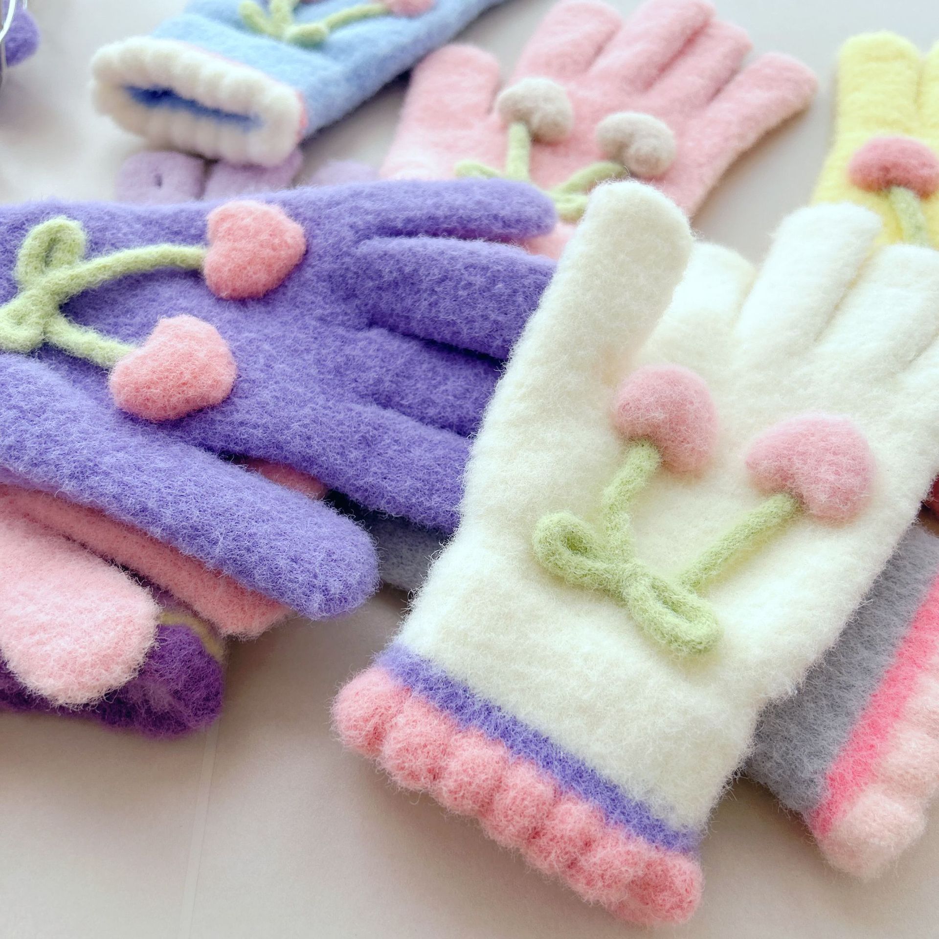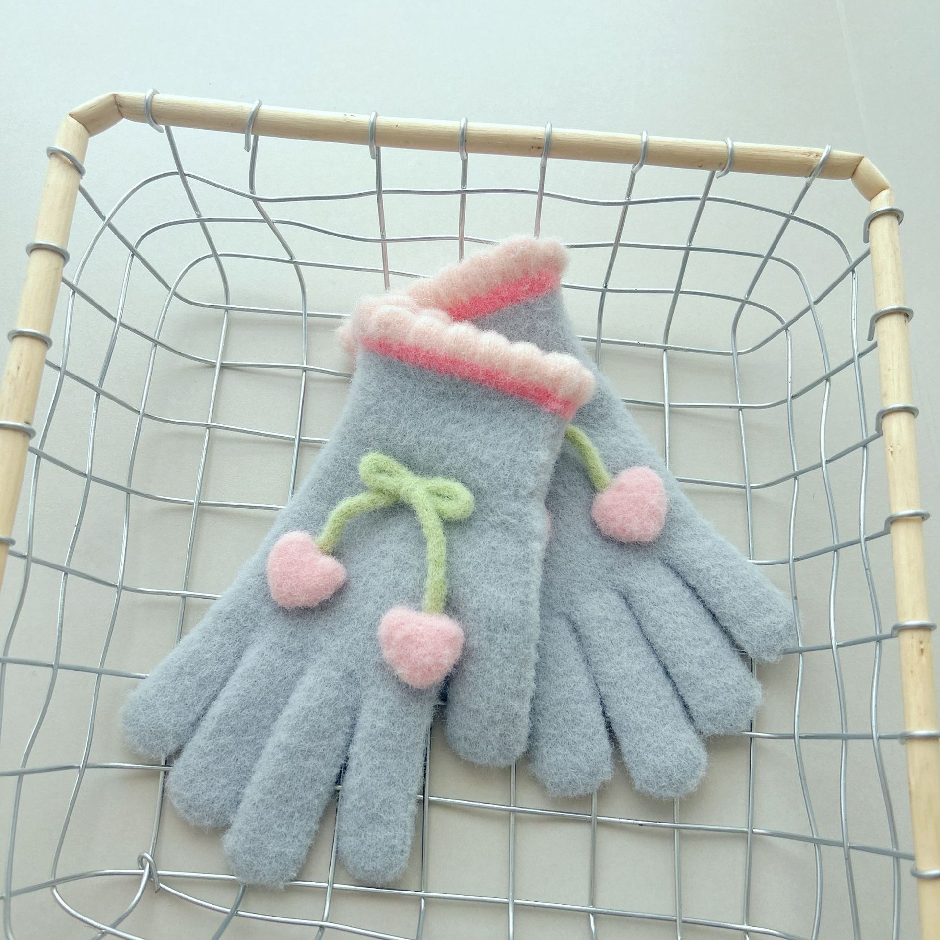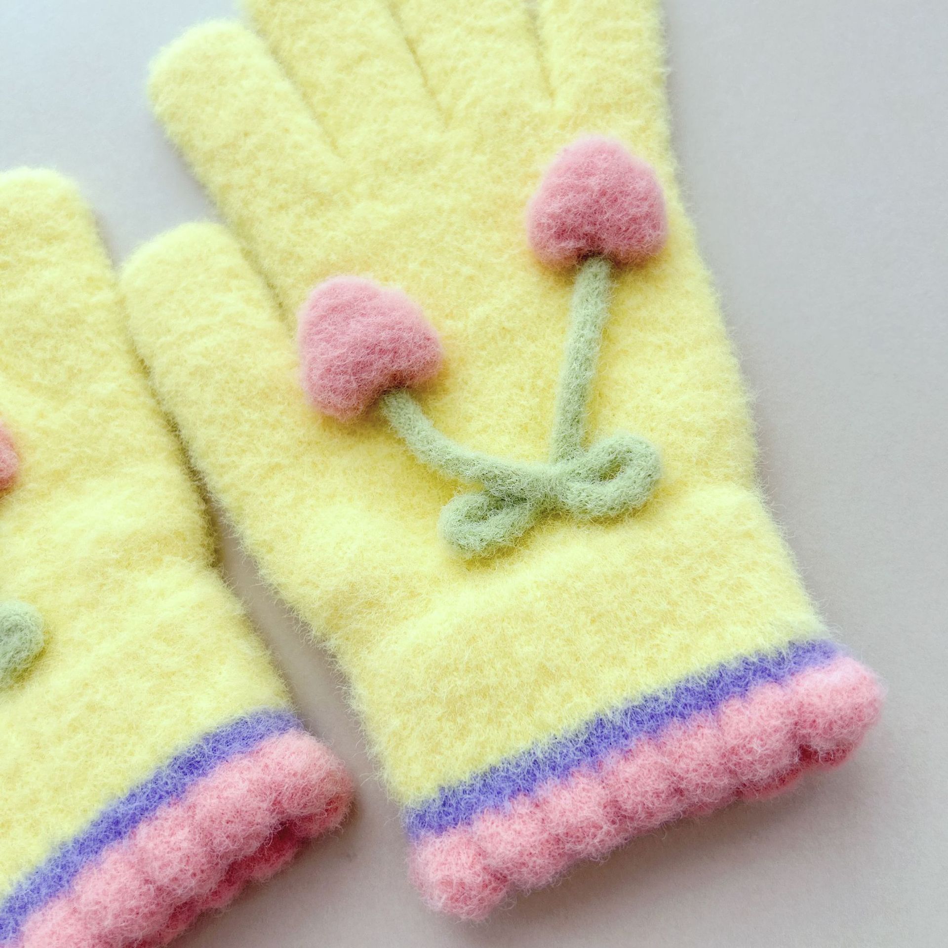 秋冬可爱手套女百搭加厚防寒针织骑行保暖冬季全指学生可触屏手套