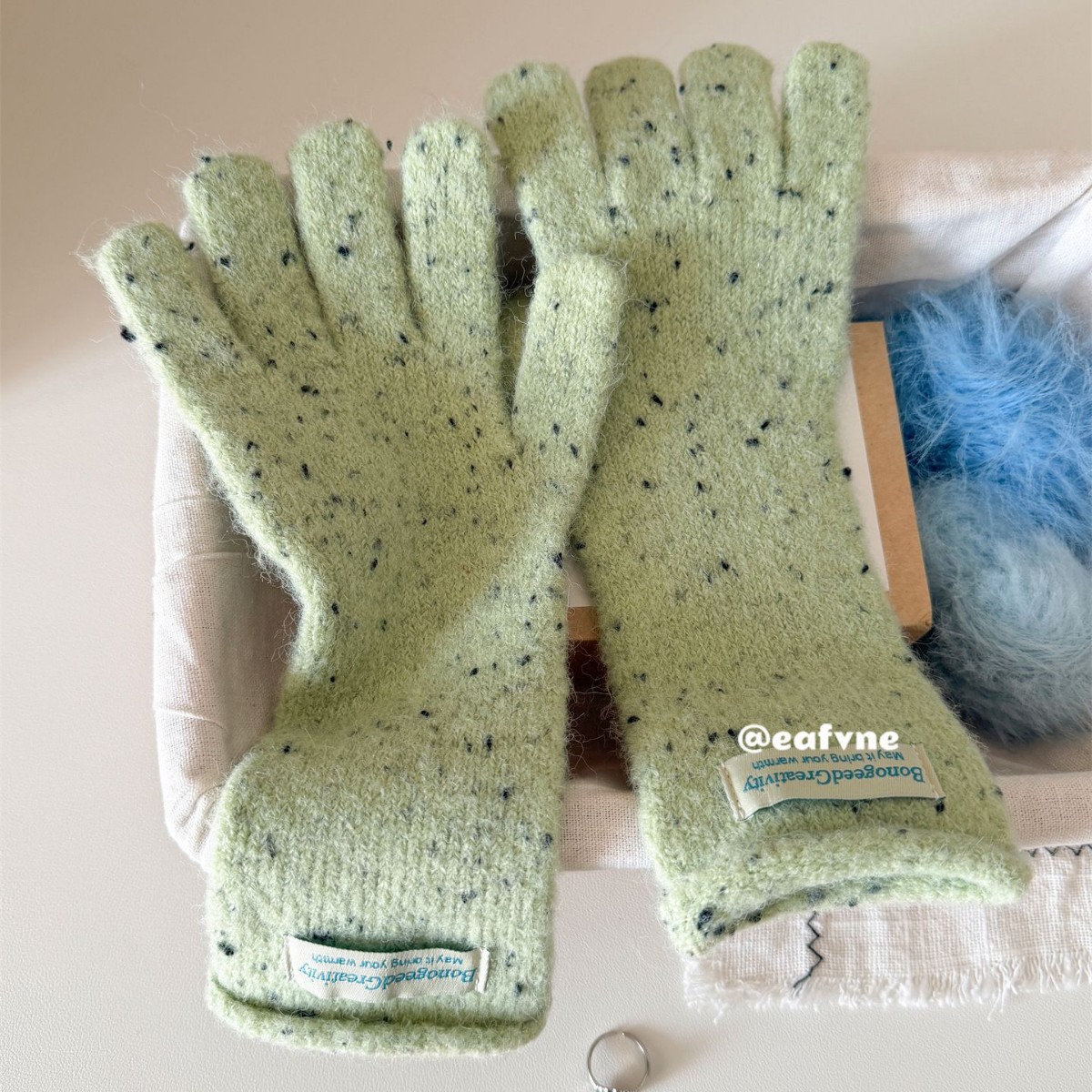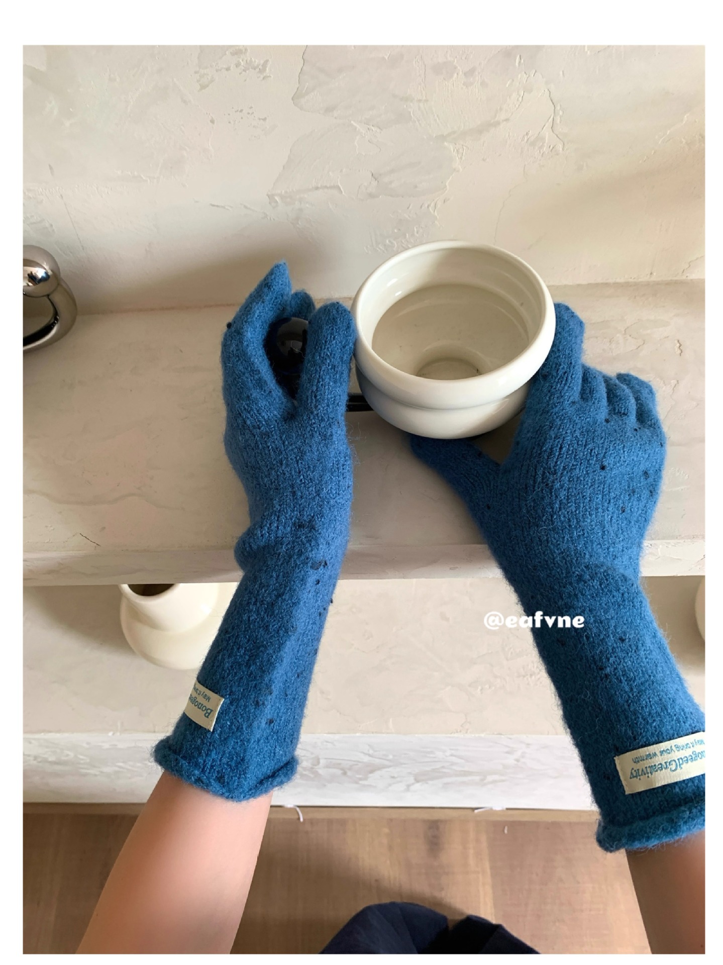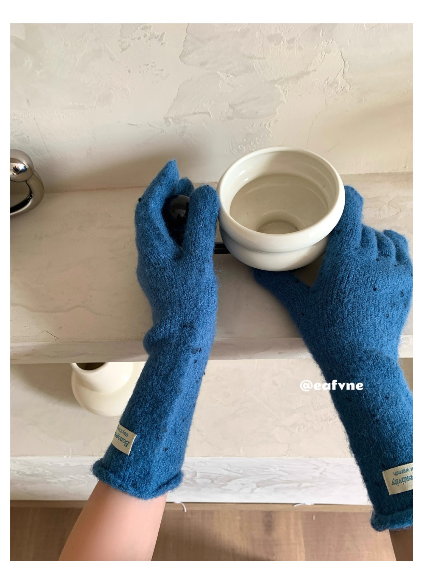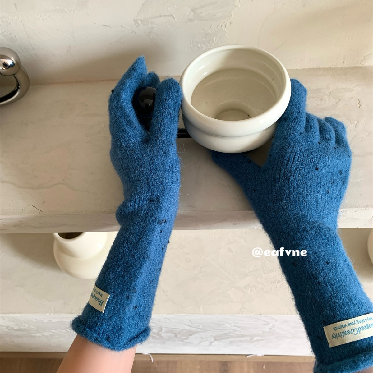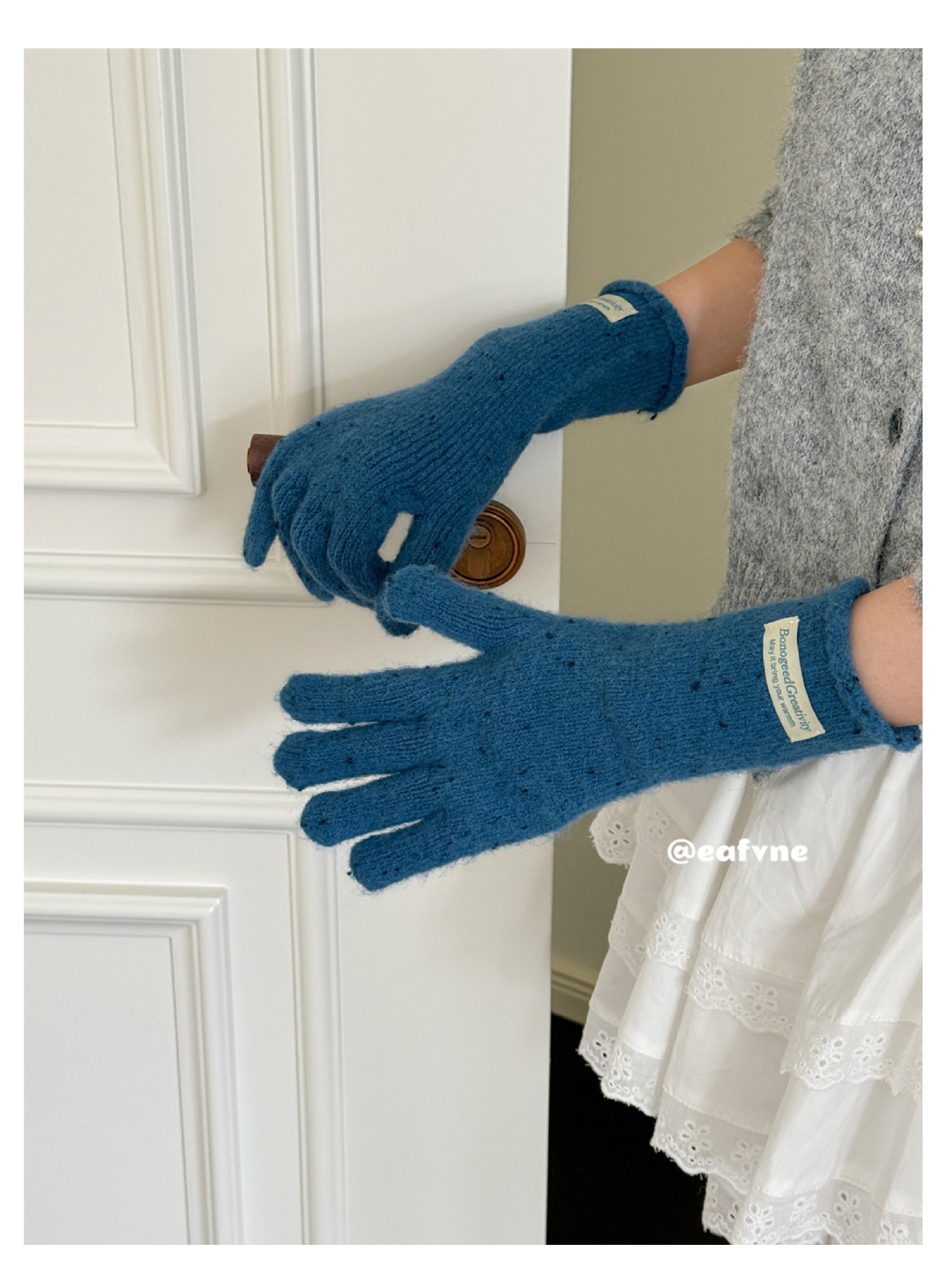 韩国订单东大门羊毛彩点手套女冬季加厚保暖纯色针织手套可触屏百
